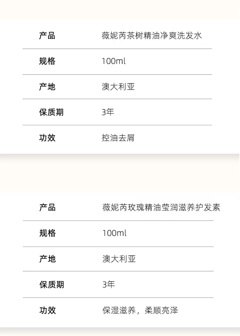 【中欧班列精选】澳大利亚薇妮芮迷迭香精油强韧洗发水 & 玫瑰精油莹润滋养护发素 原装进口洗发护发两件套 100ml/瓶