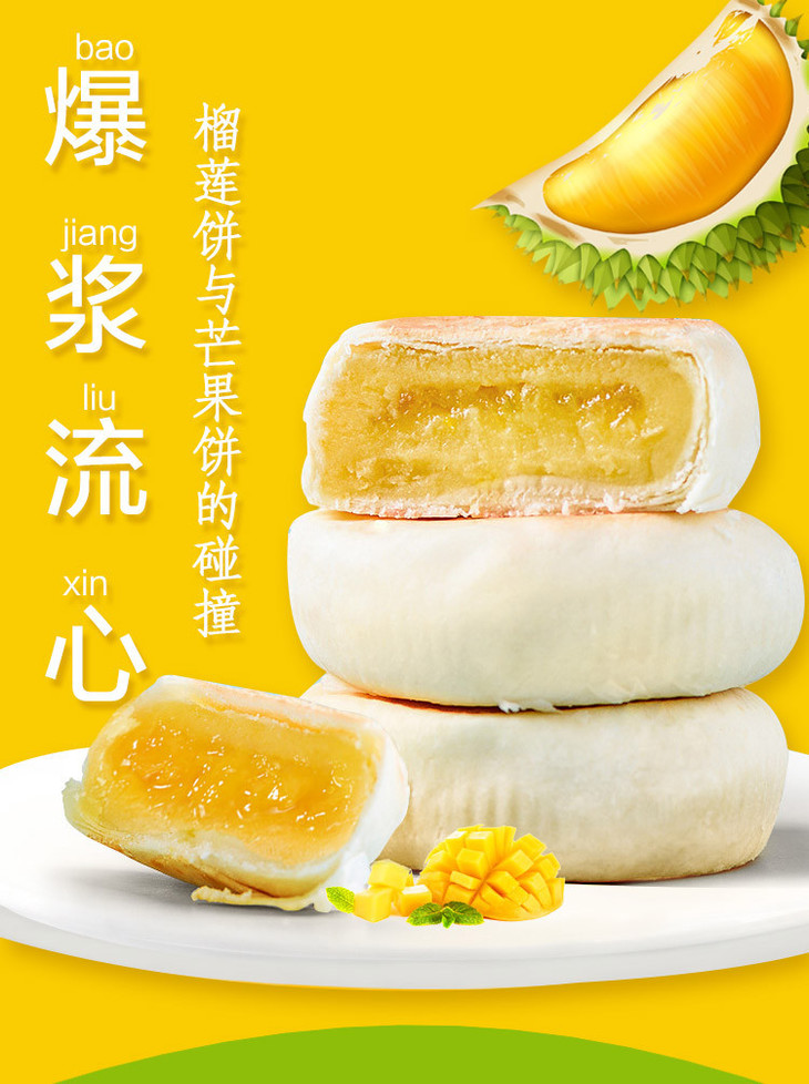 味滋源爆浆流心榴莲饼芒果饼 软糯香甜 一口爆浆 皮酥脆嫩 肉质满满 500g/箱