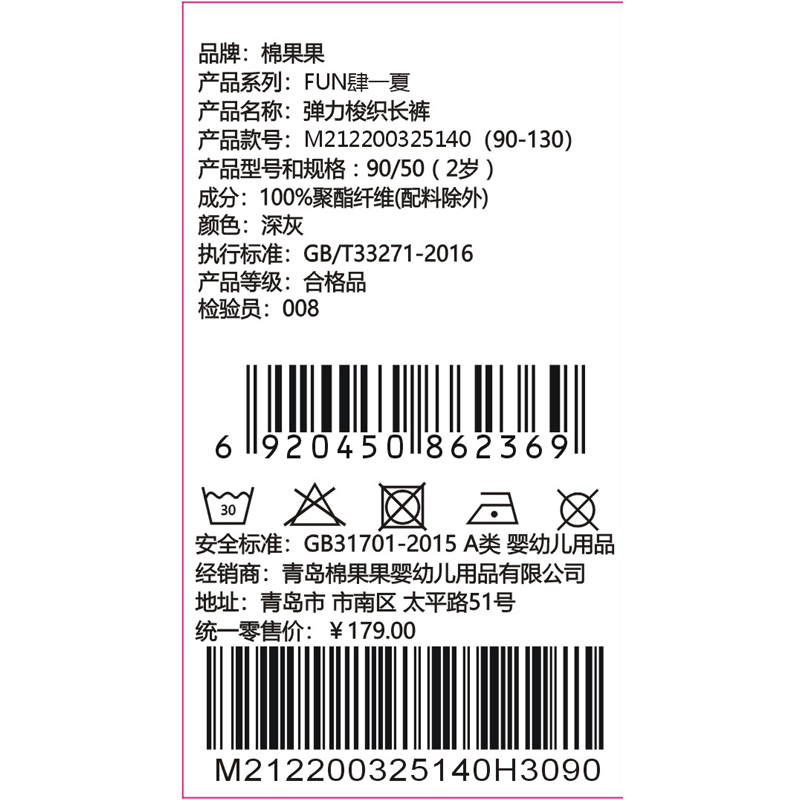 | 裤长 | 51 | 56.5 | 62.5 | 68.5 | 75 |