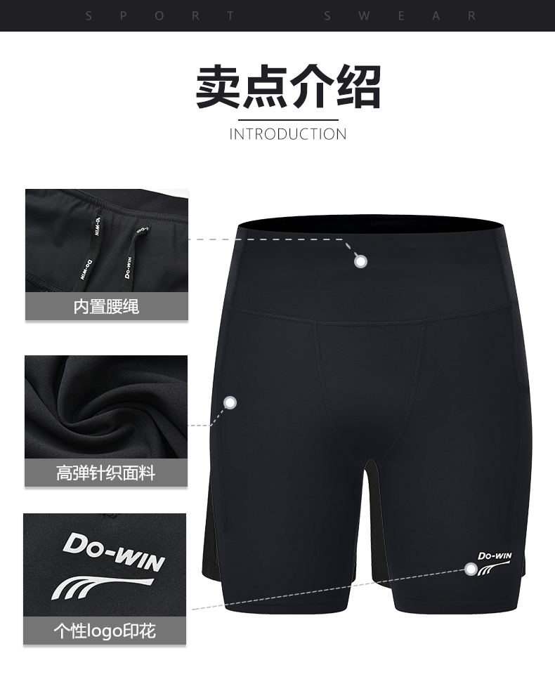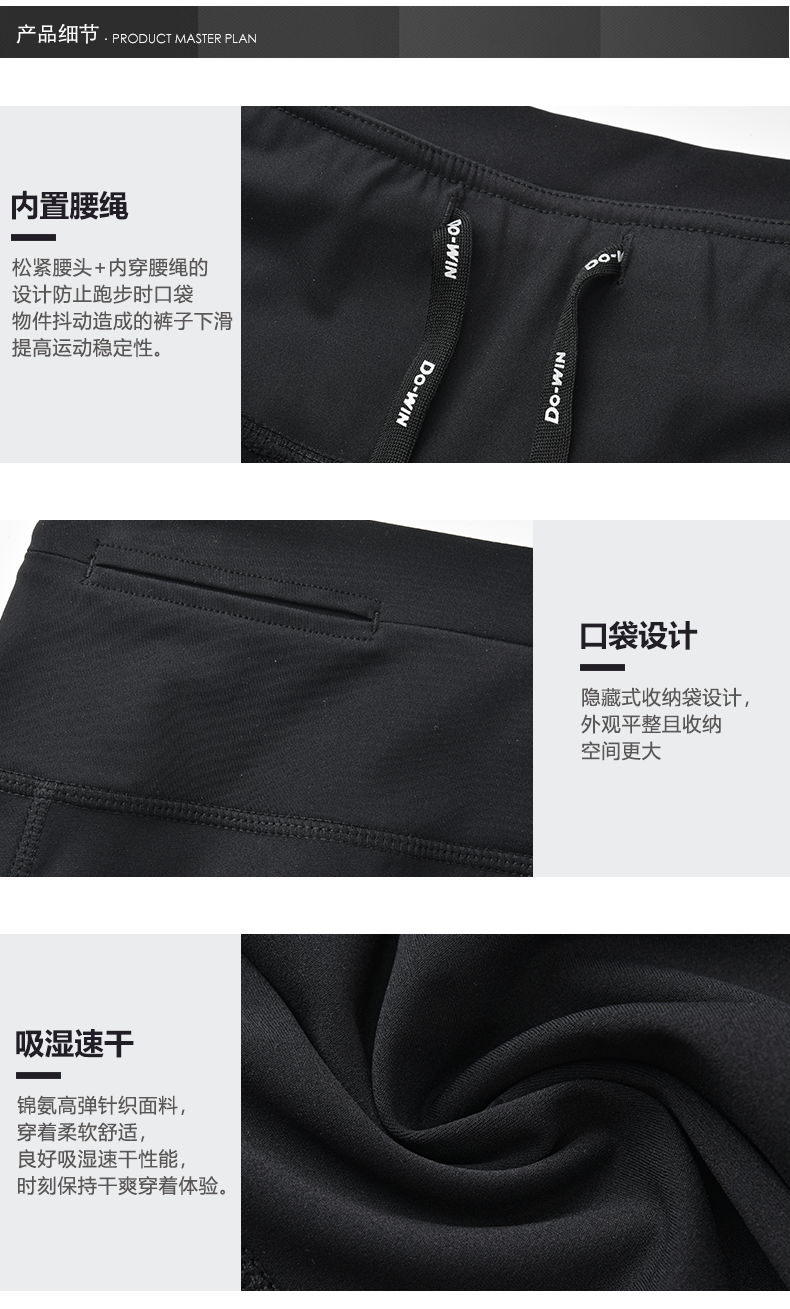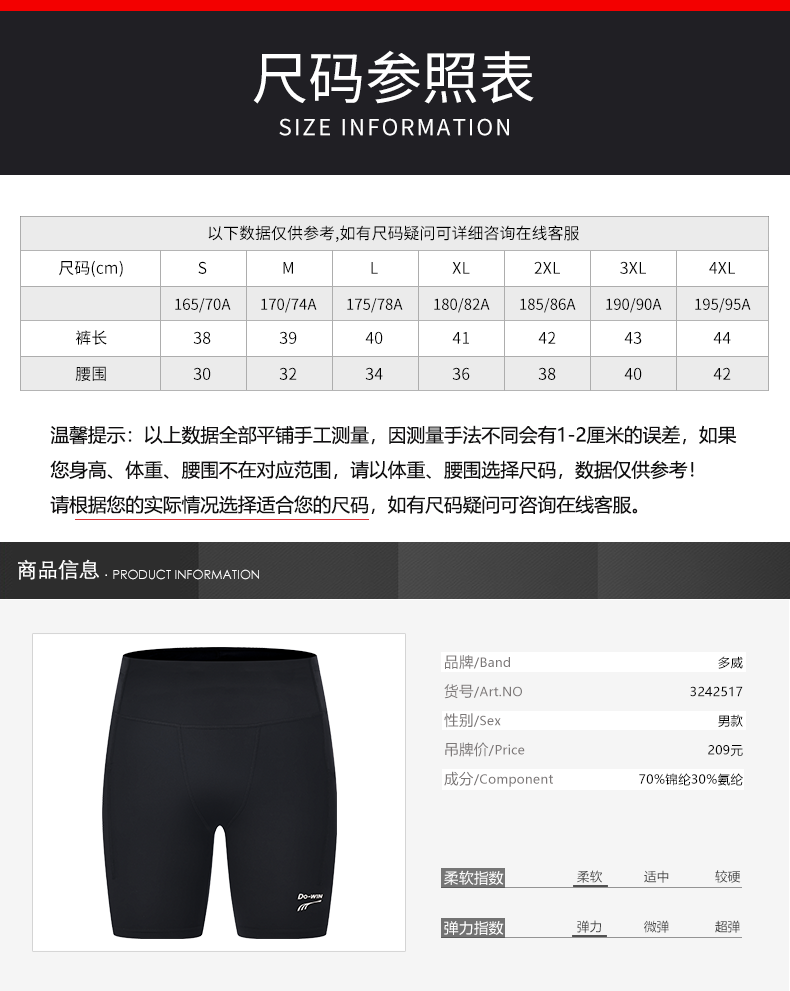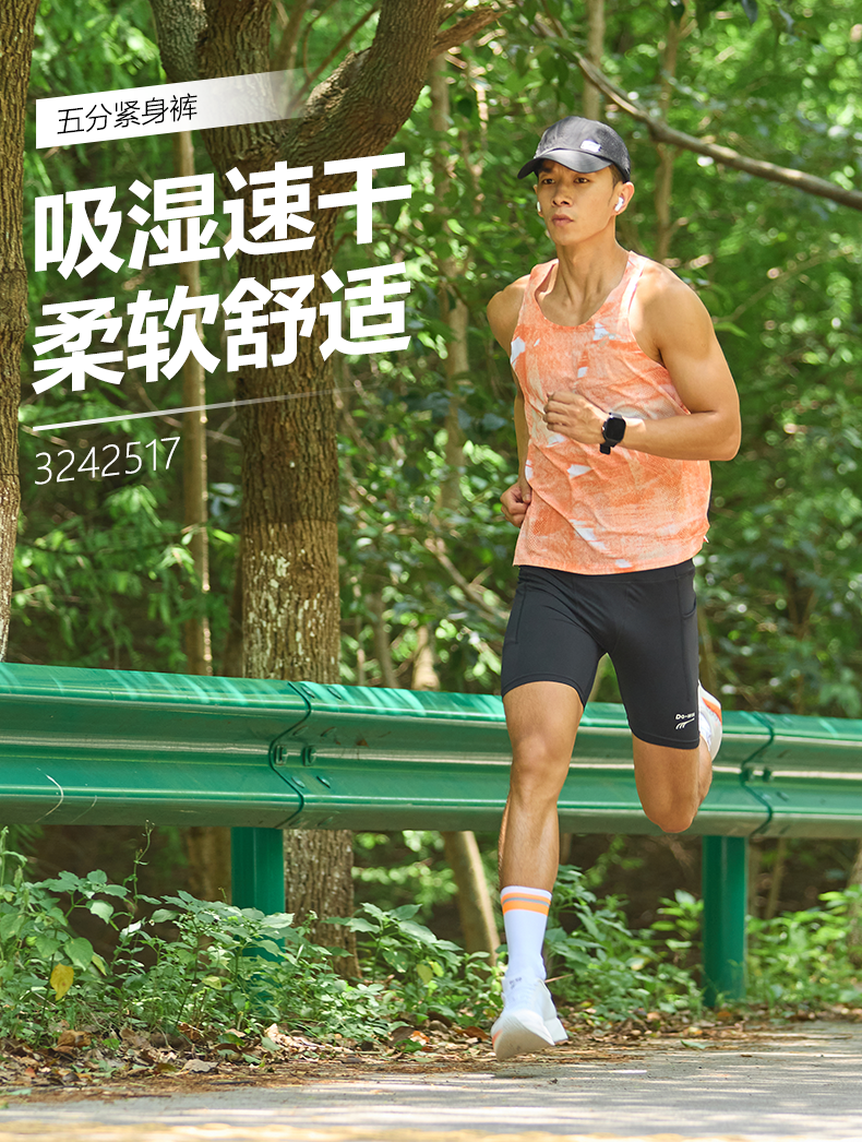 多威紧身裤男新款速干弹力五分短裤柔软运动短裤3242517