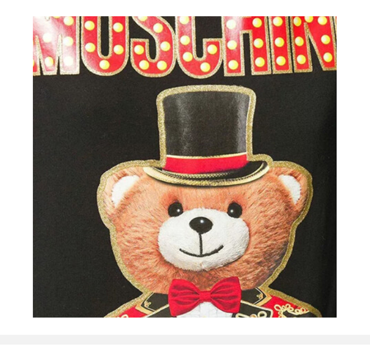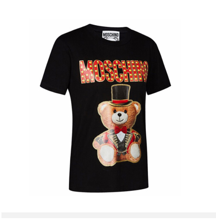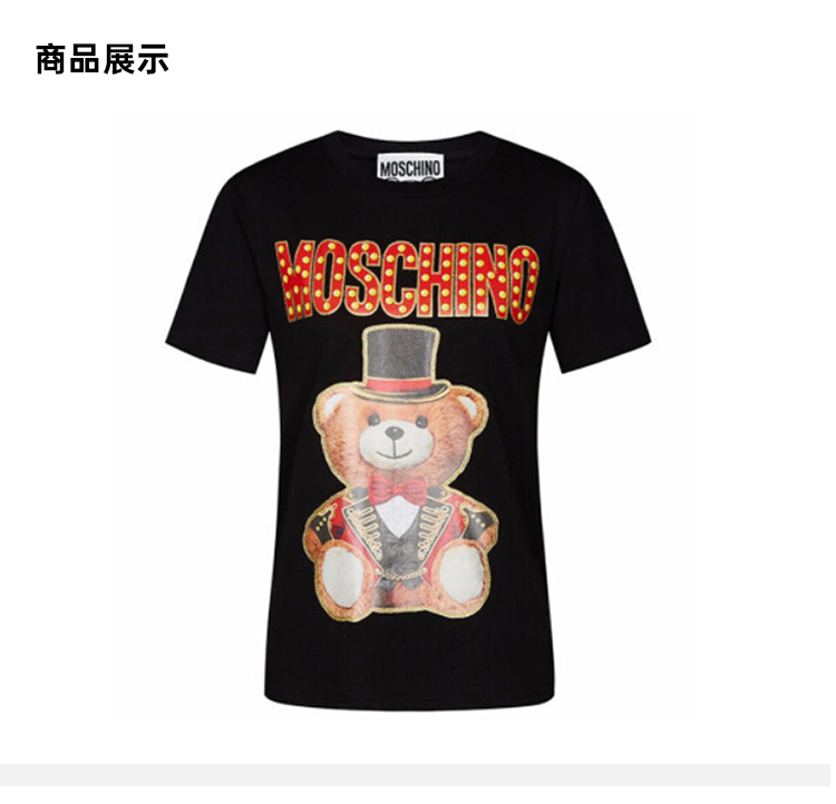 MOSCHINO 莫斯奇诺 圣诞熊 字母图案 女士短袖T恤 黑色 0708 0540 3555
