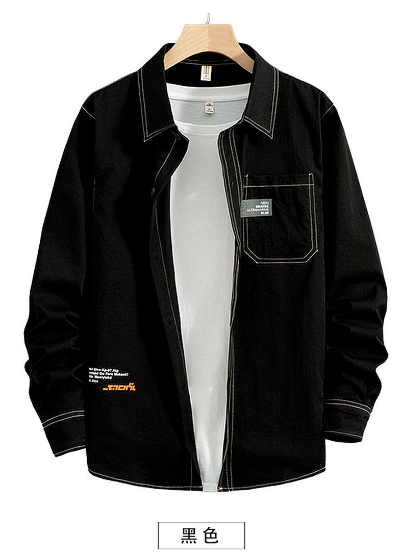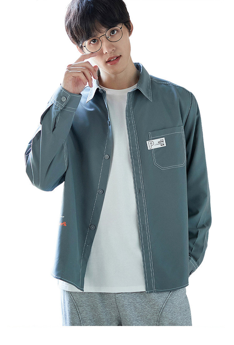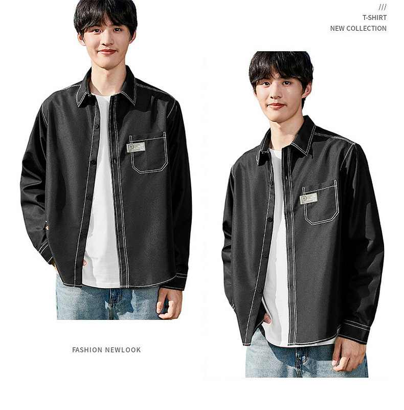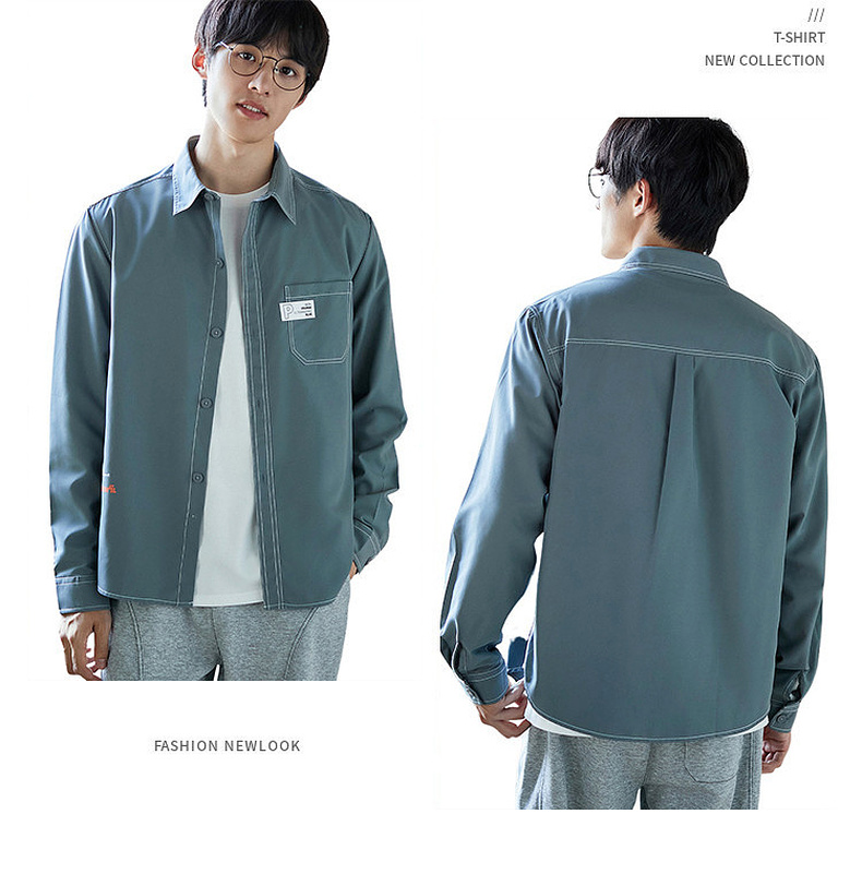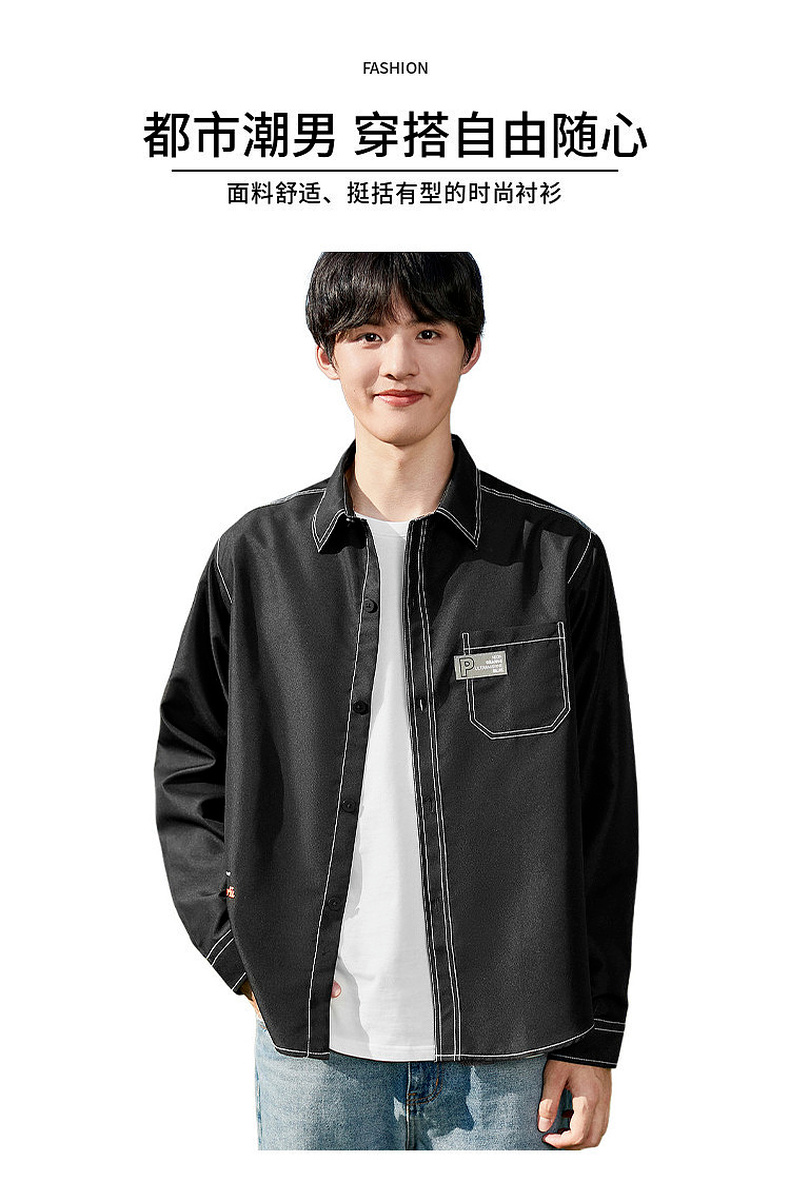 GXG男装2025春季时尚缉明线工艺户外休闲百搭翻领长袖衬衫K&C