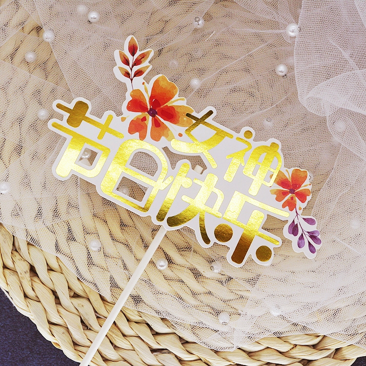 纸质插件 女神节日快乐 花朵金色字 女神节母亲节装饰插件 1支