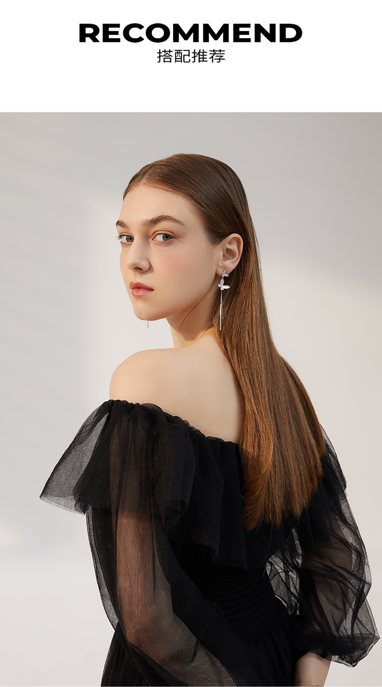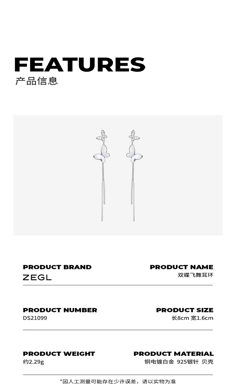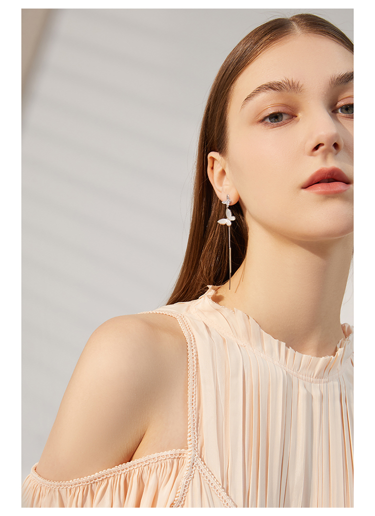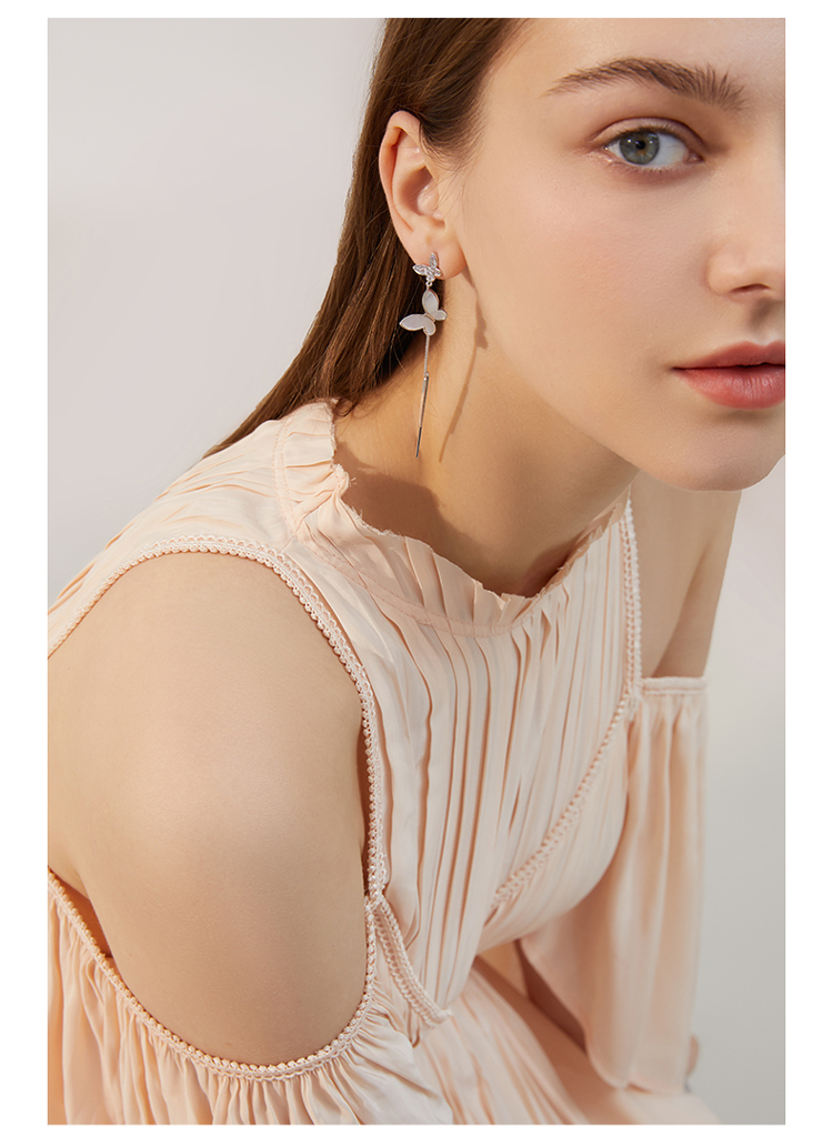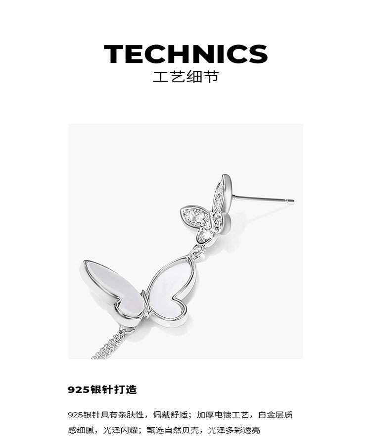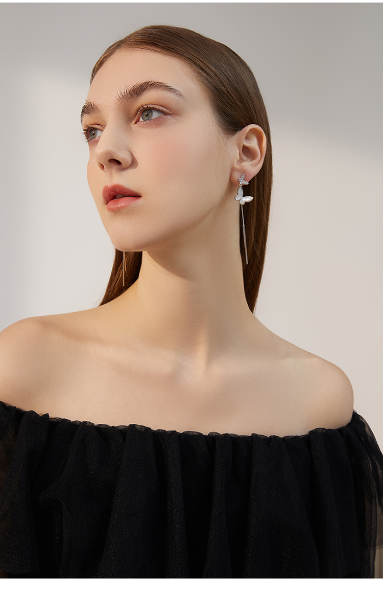 ZEGL蝴蝶流苏耳环女长款小众设计感高级贝壳耳钉925银针秋冬耳饰