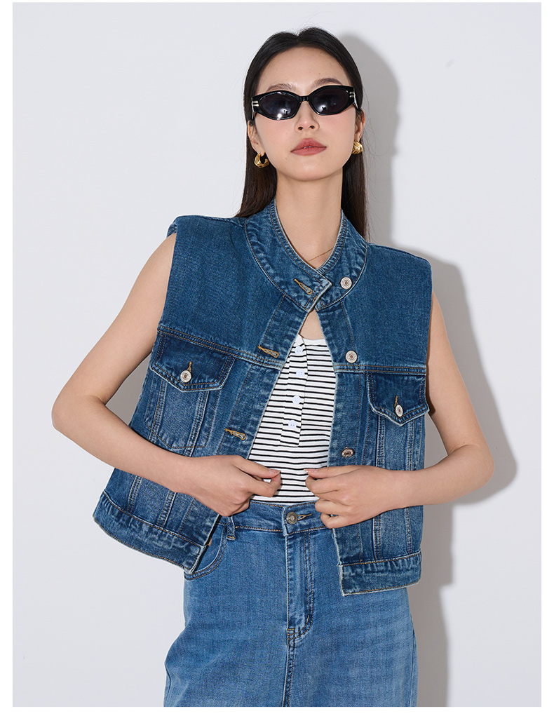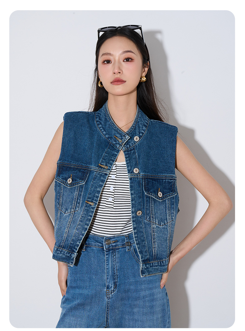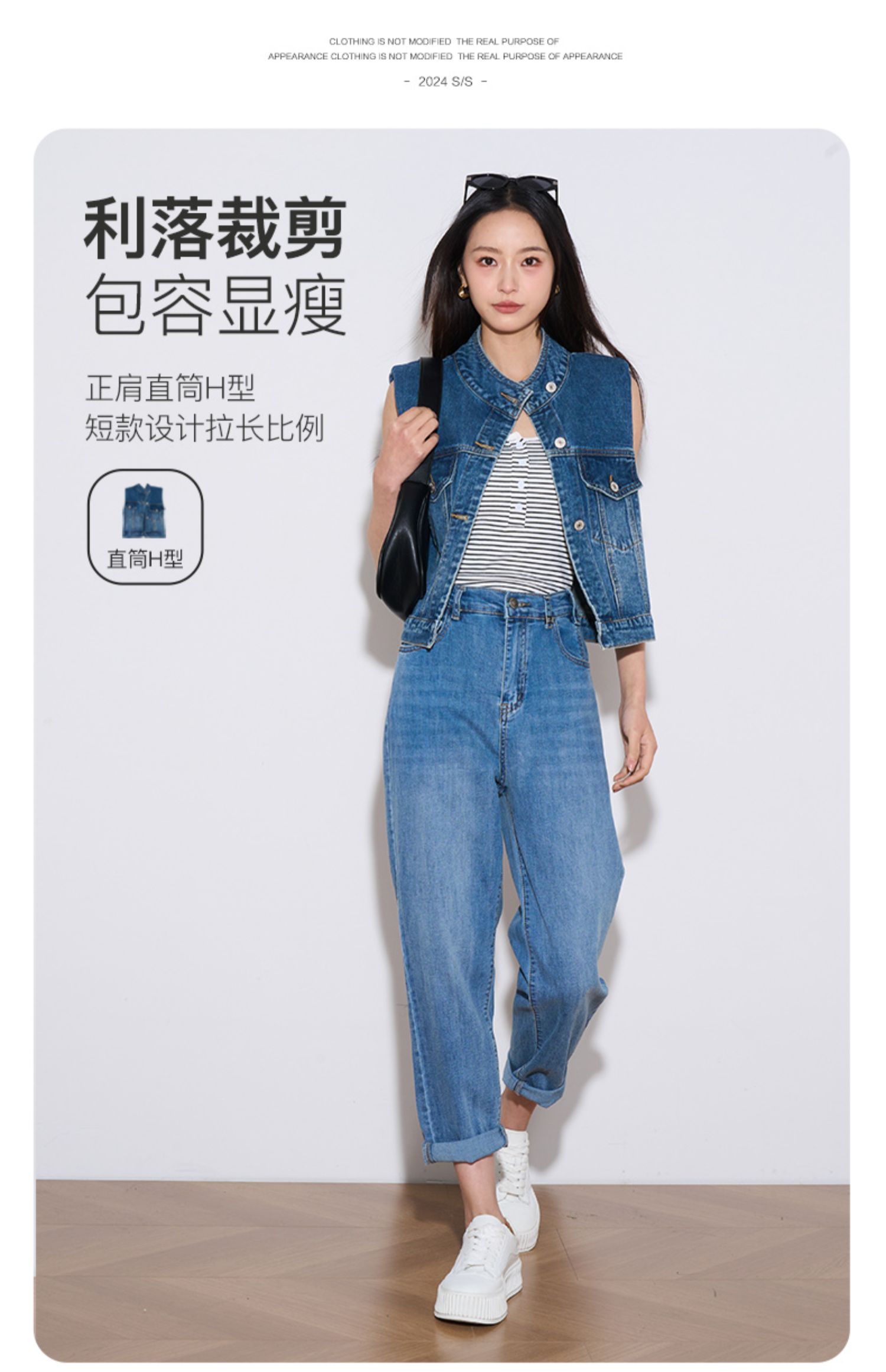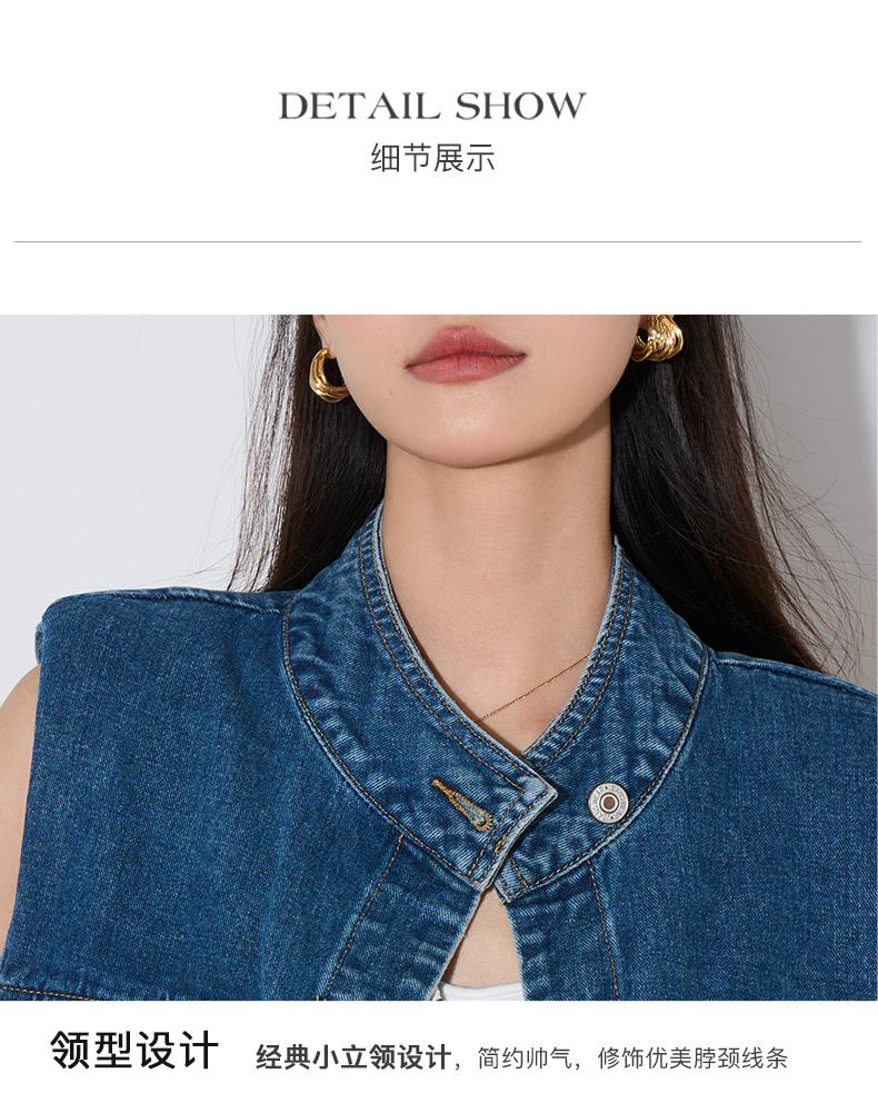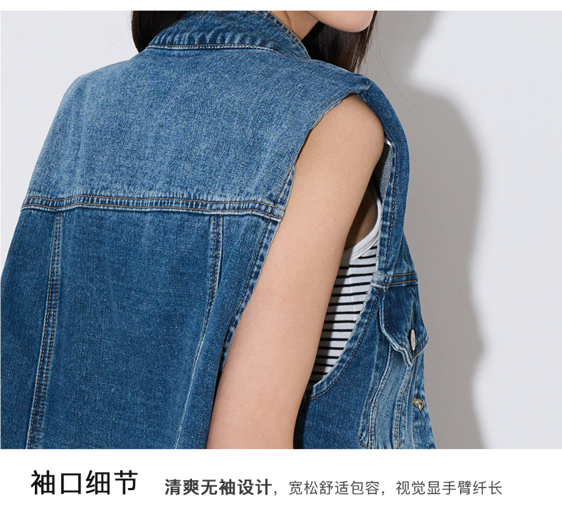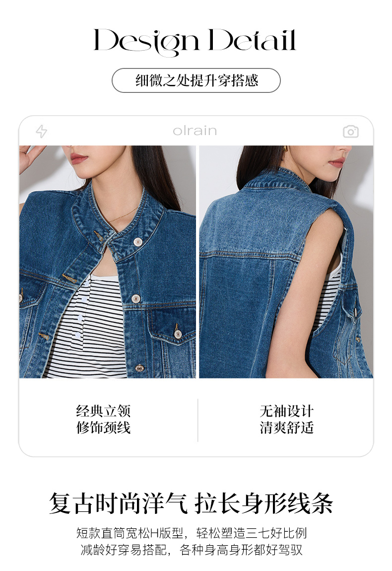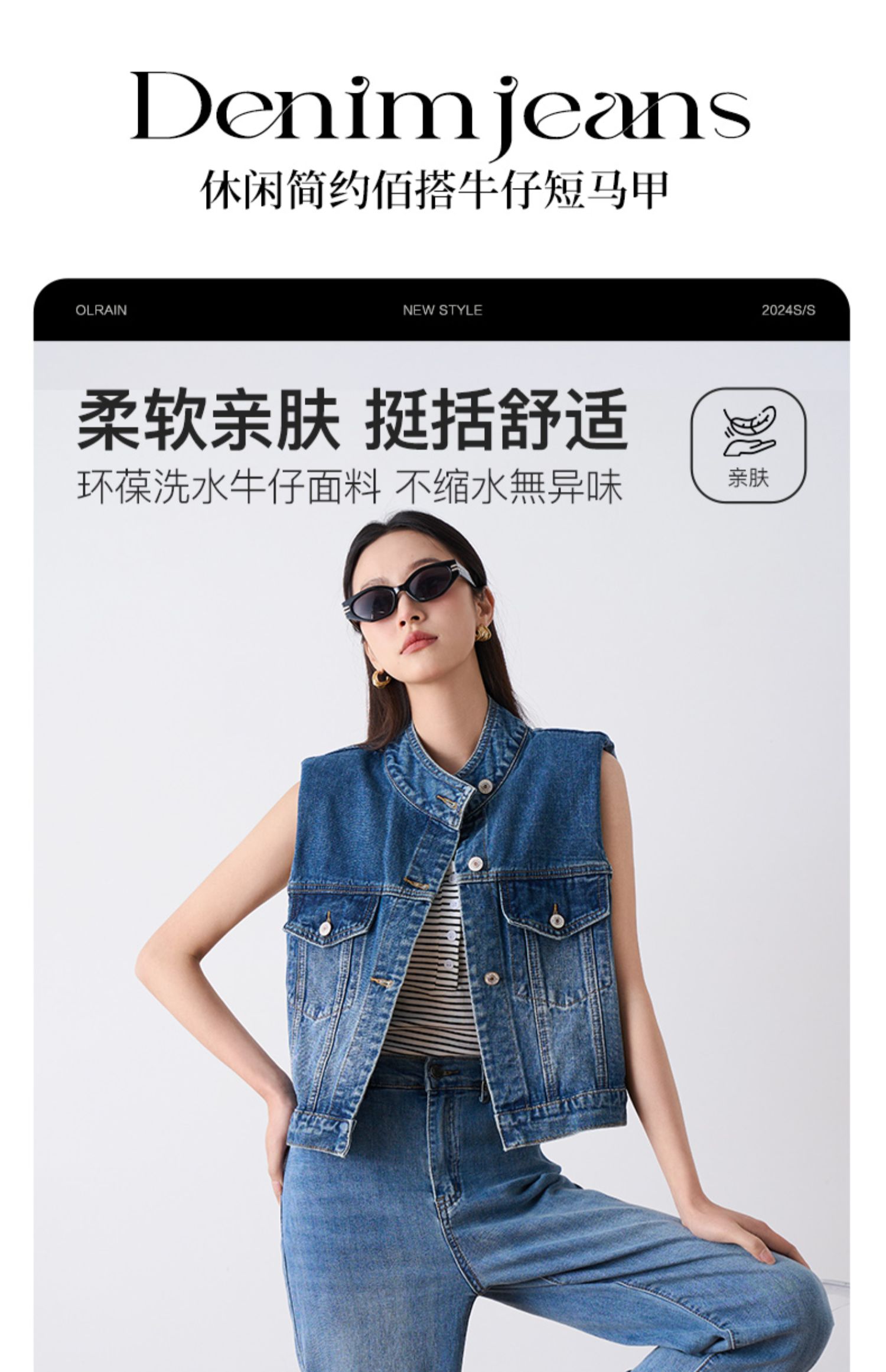 OLrain欧芮儿牛仔蓝短款马甲女夏季2024年新款休闲简约百搭上衣