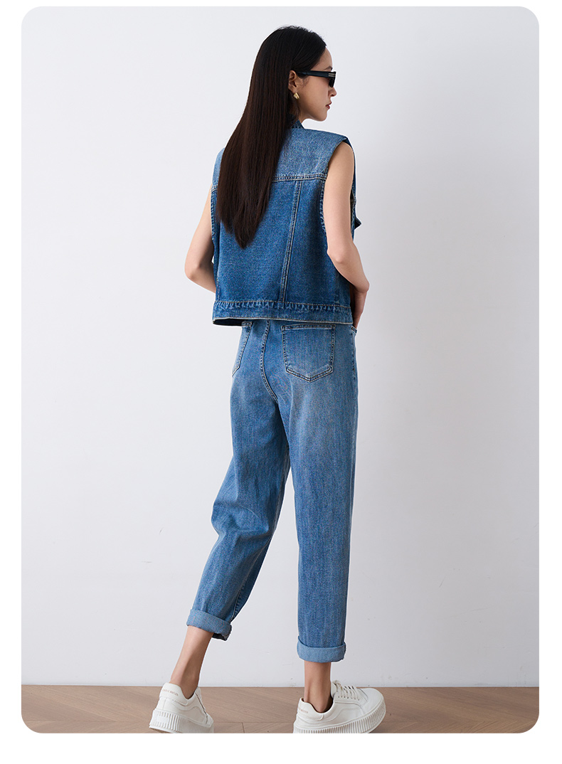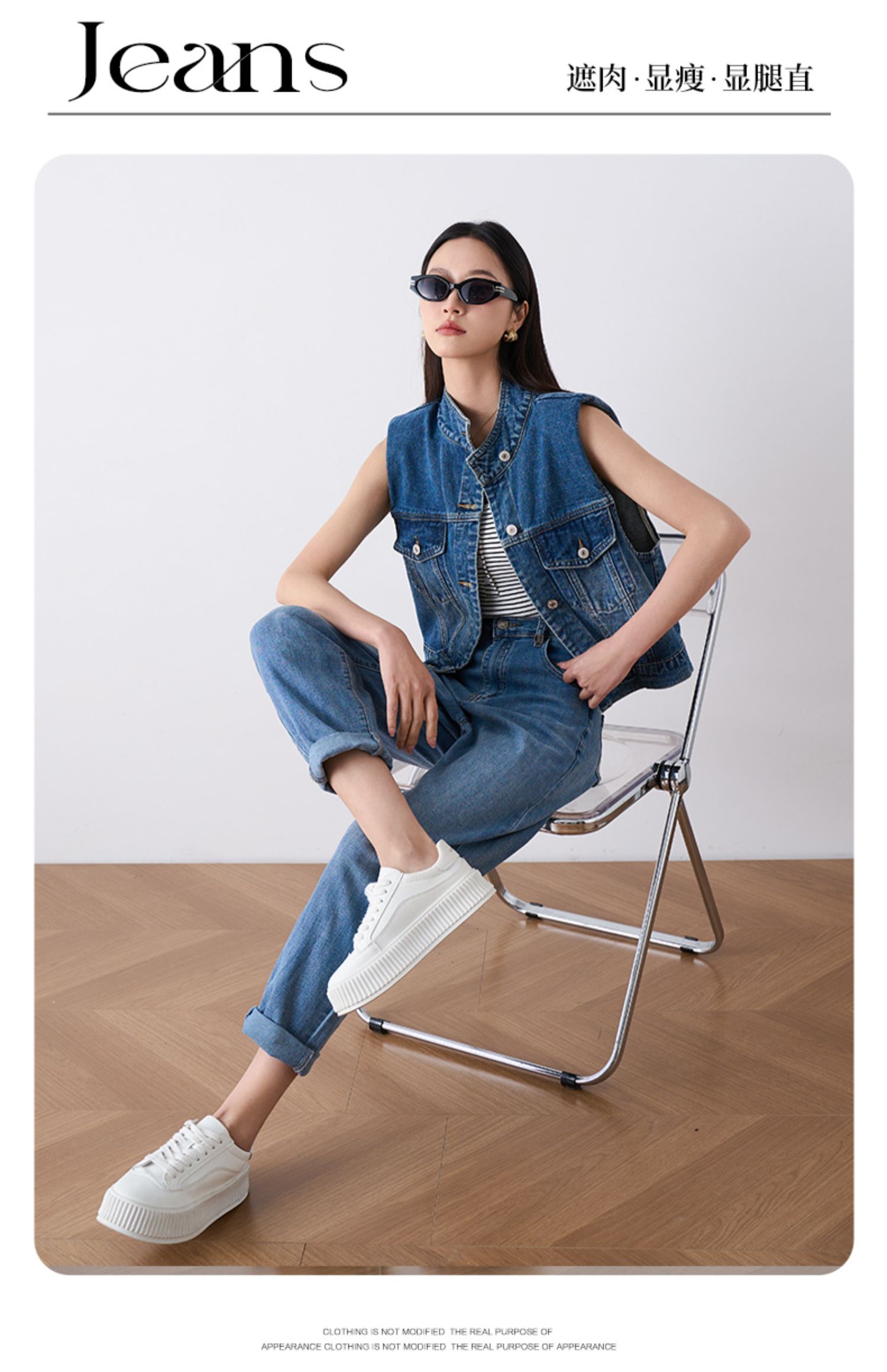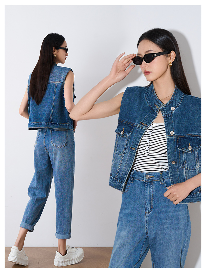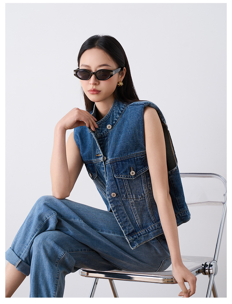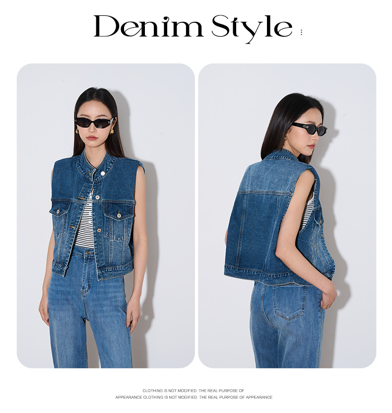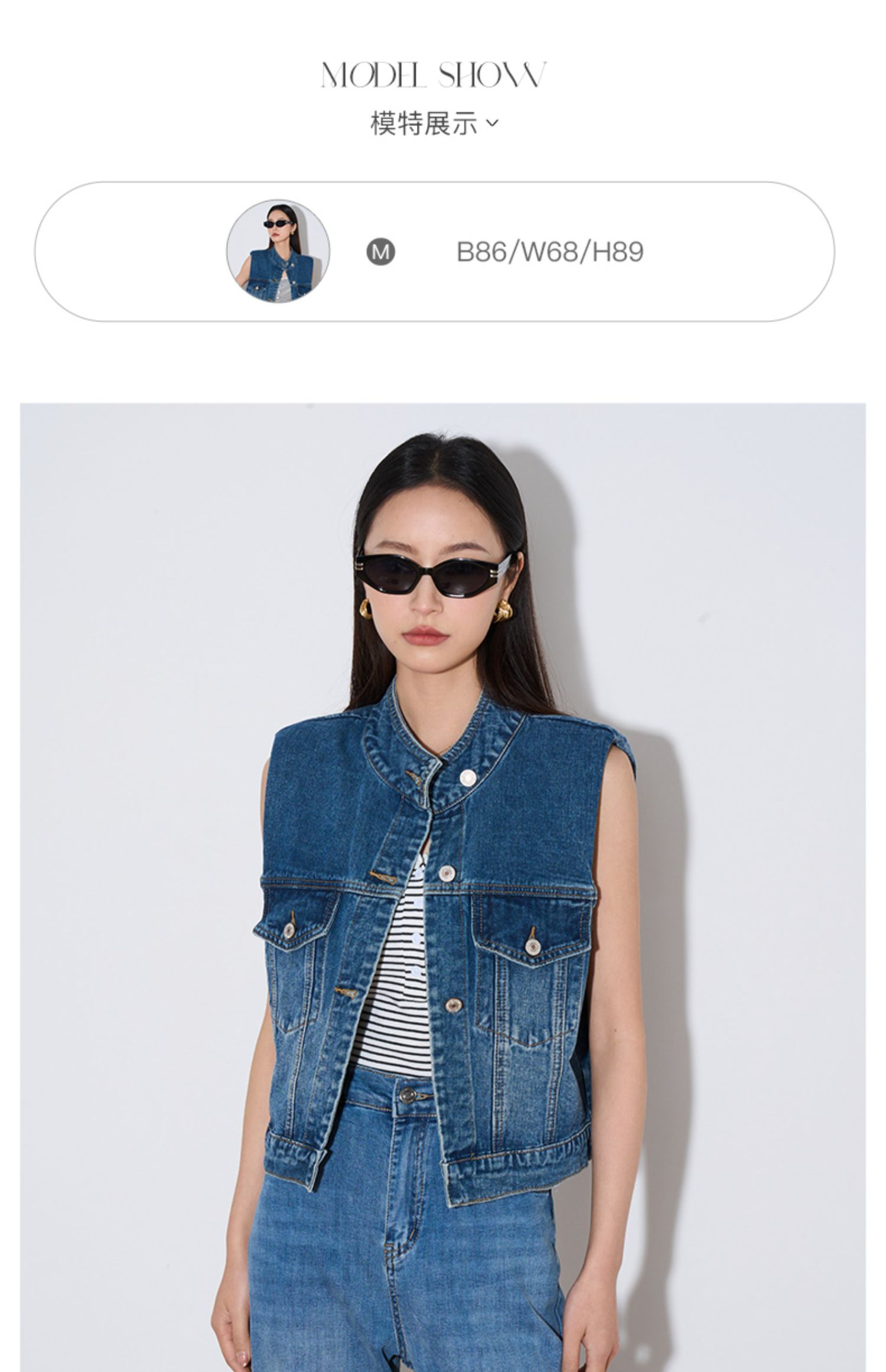 OLrain欧芮儿牛仔蓝短款马甲女夏季2024年新款休闲简约百搭上衣