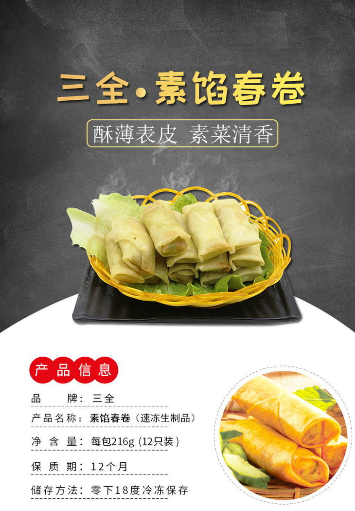 【亚欧超市】三全素馅春卷216g