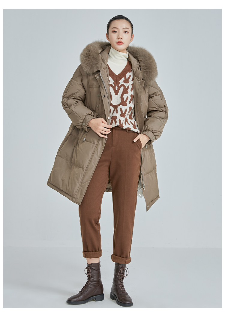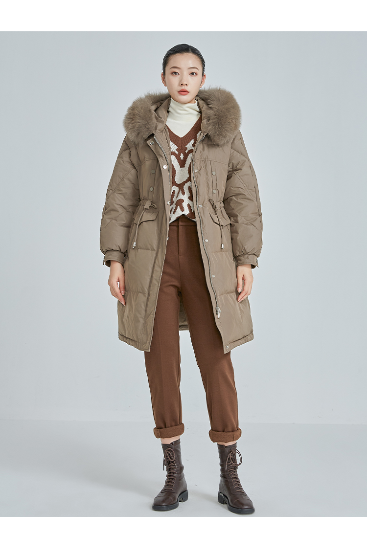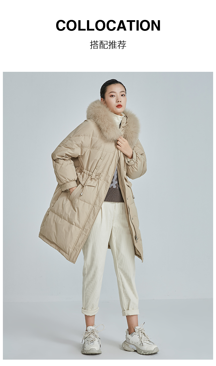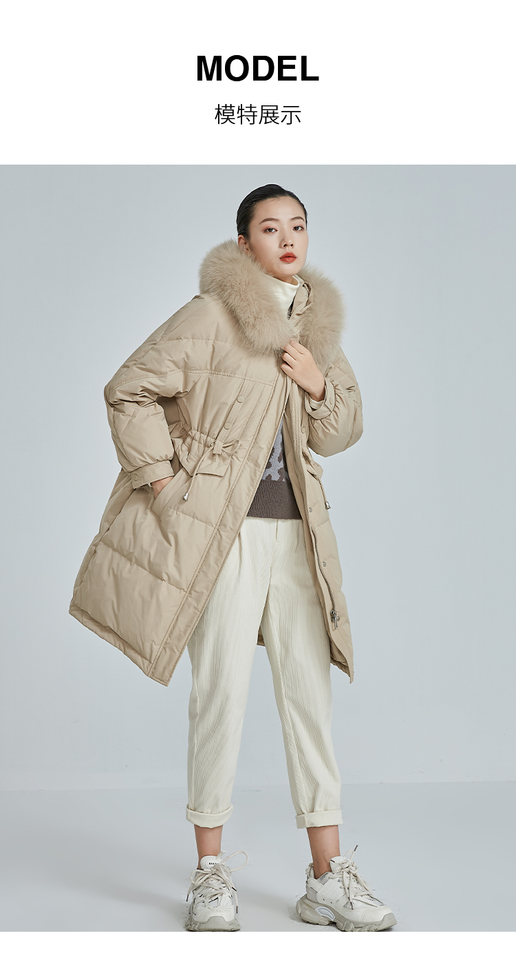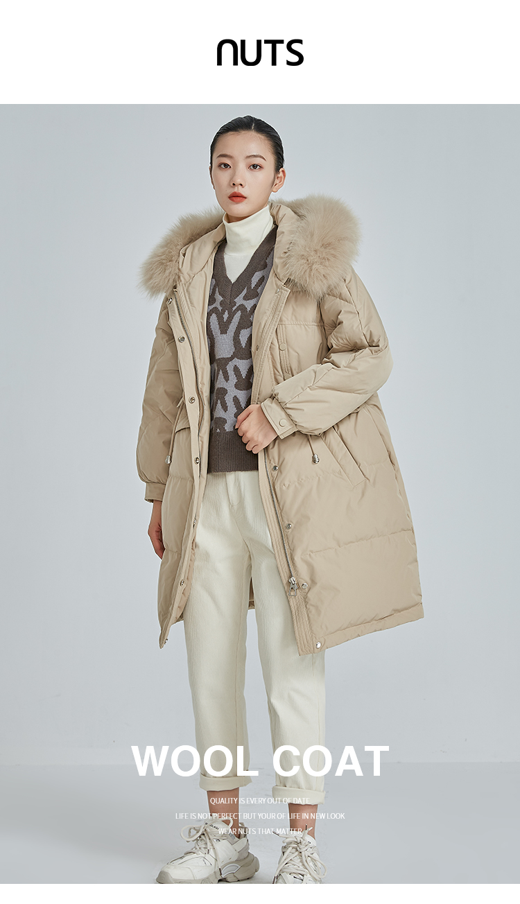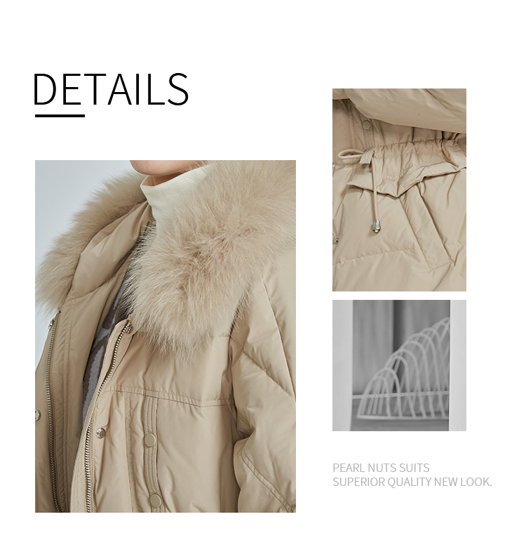 NUTS冬款气质时尚通勤连帽加厚保暖大码鸭绒长羽绒服女241093435