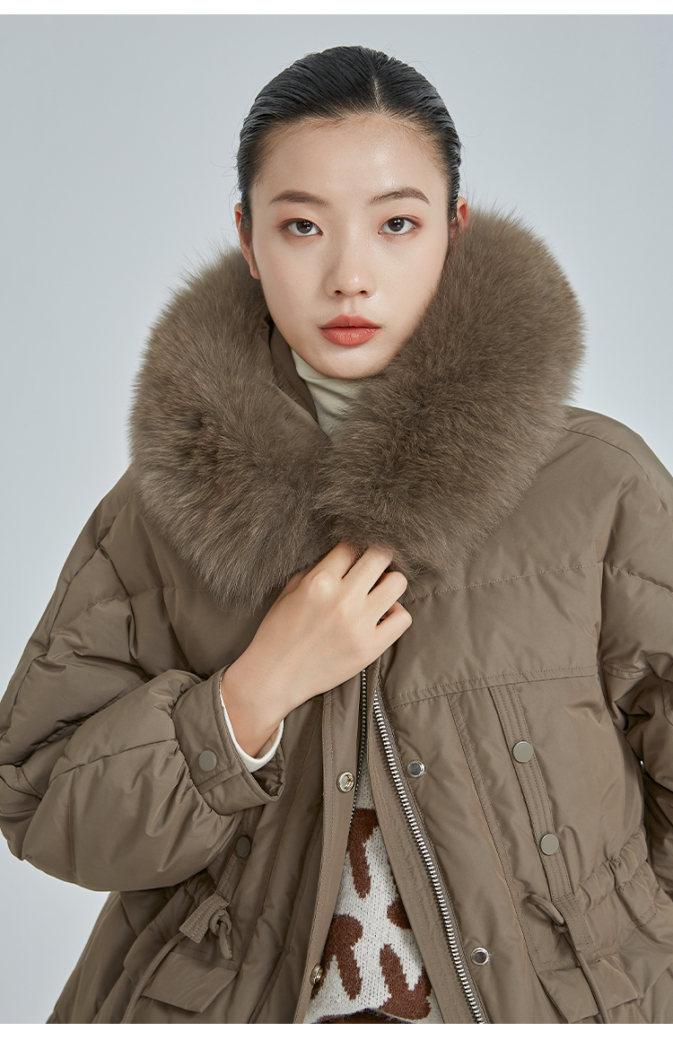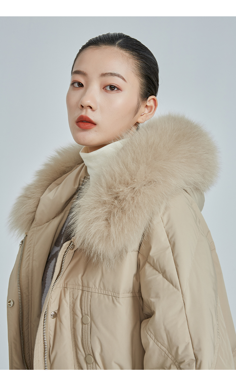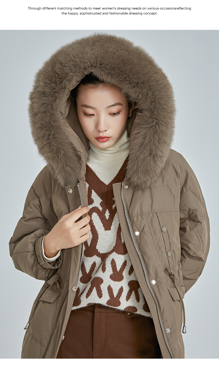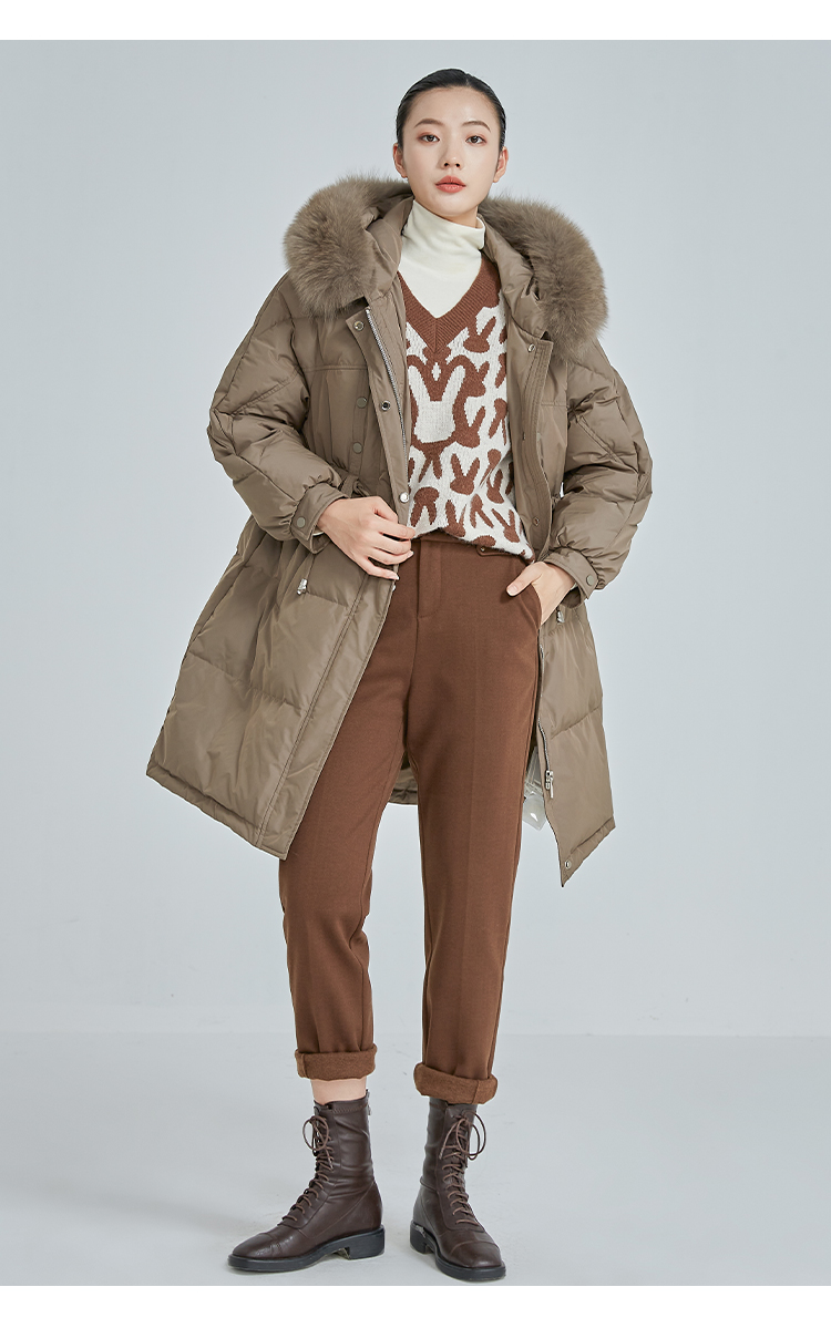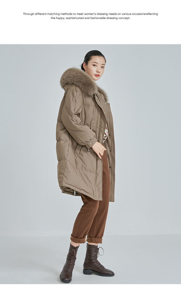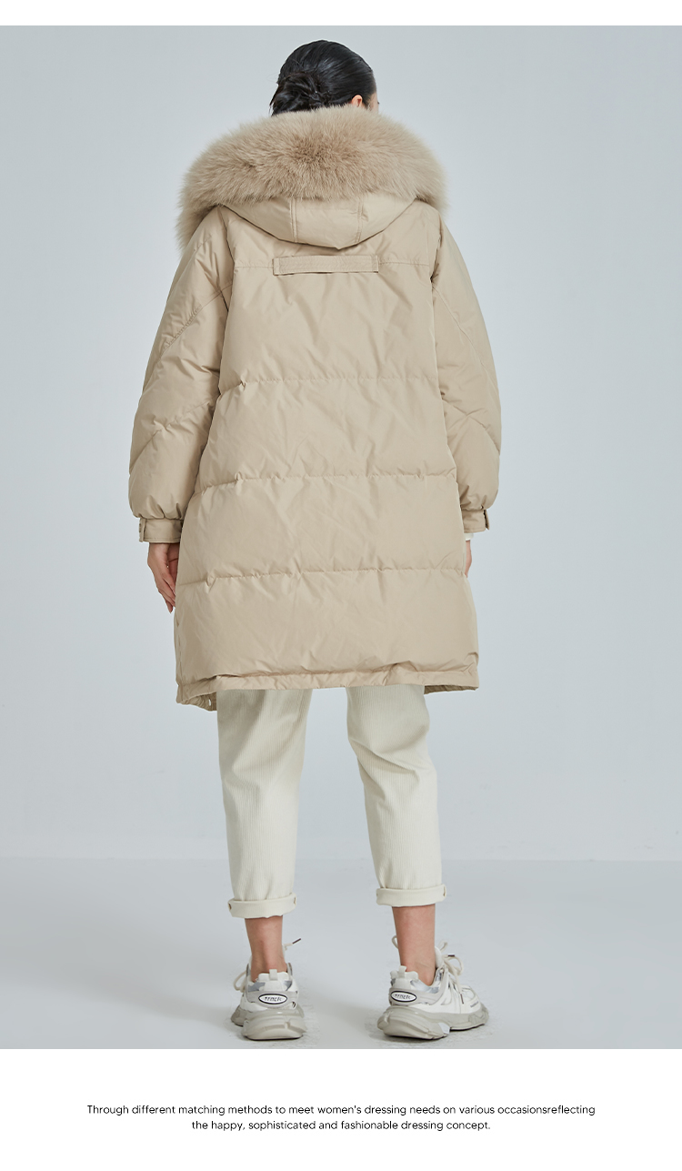NUTS冬款气质时尚通勤连帽加厚保暖大码鸭绒长羽绒服女241093435