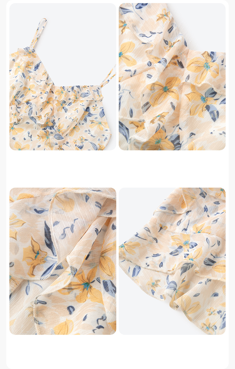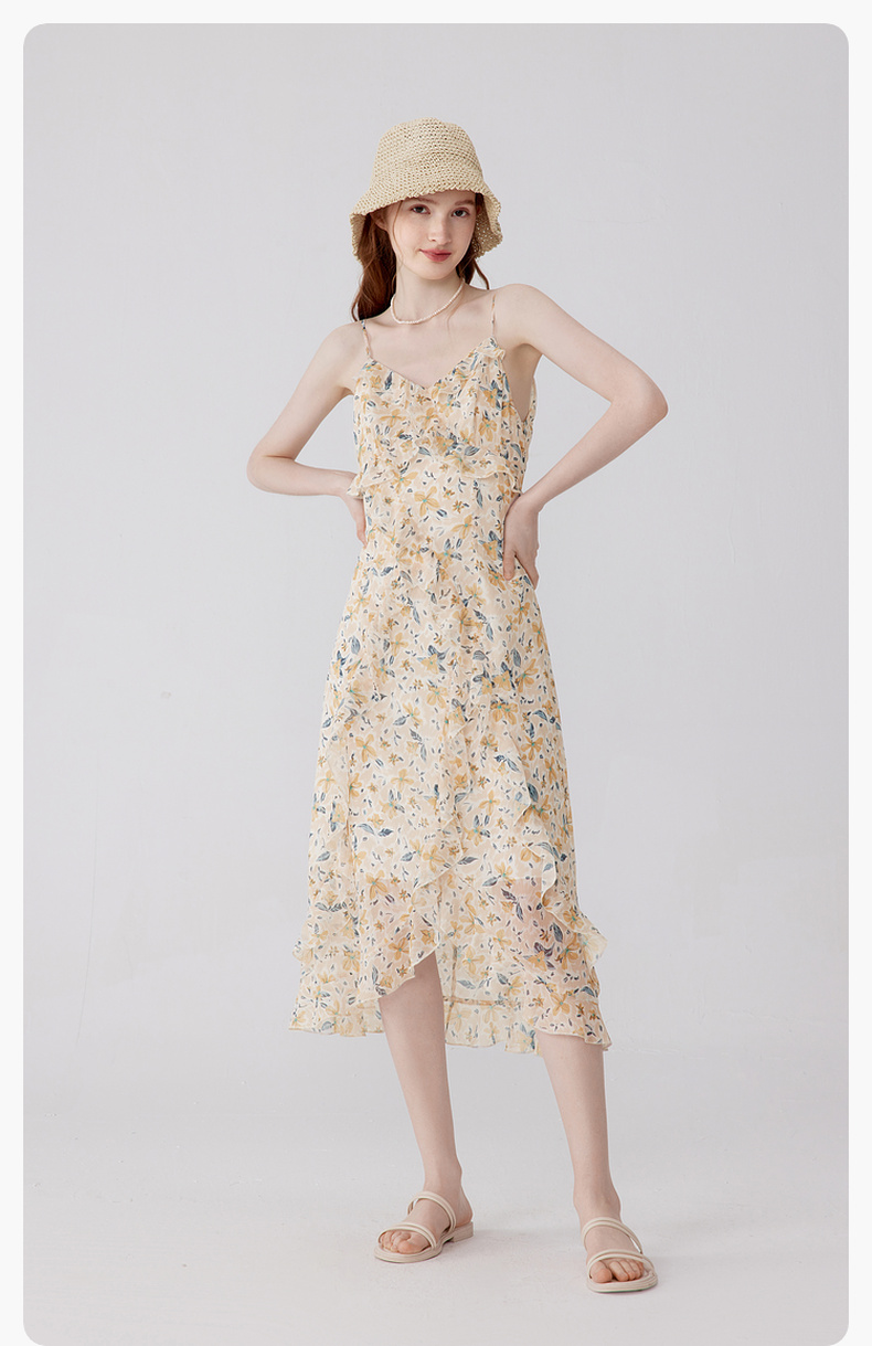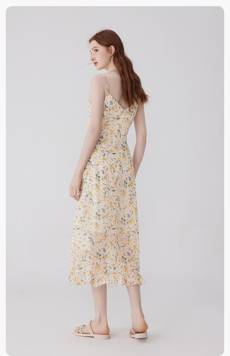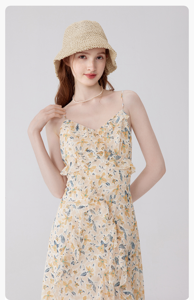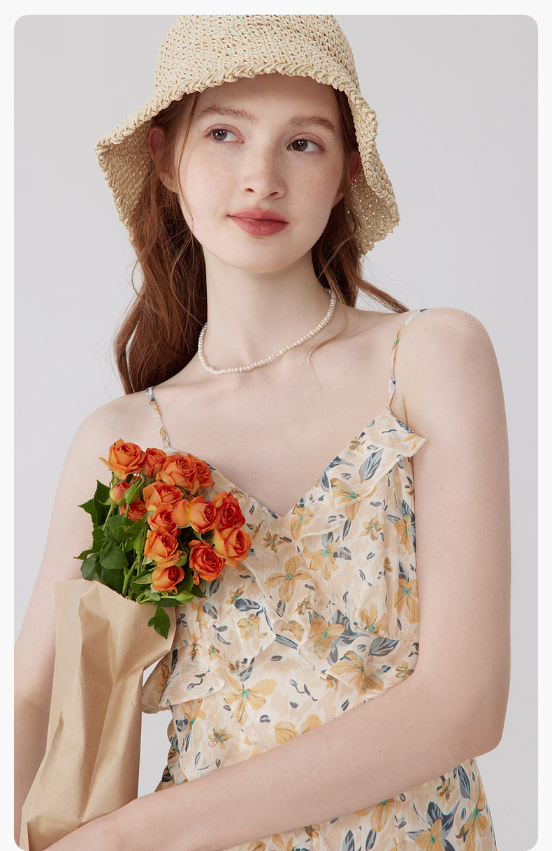 【严选】诗凡黎秋优雅花版荷叶边设计吊带裙7E7292091