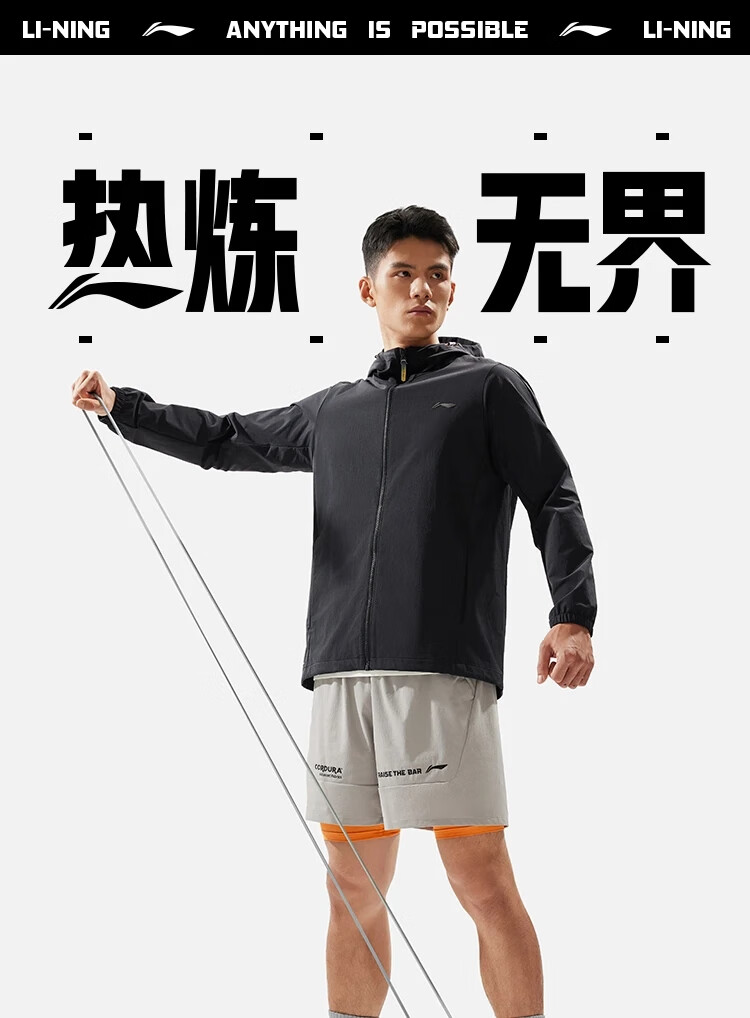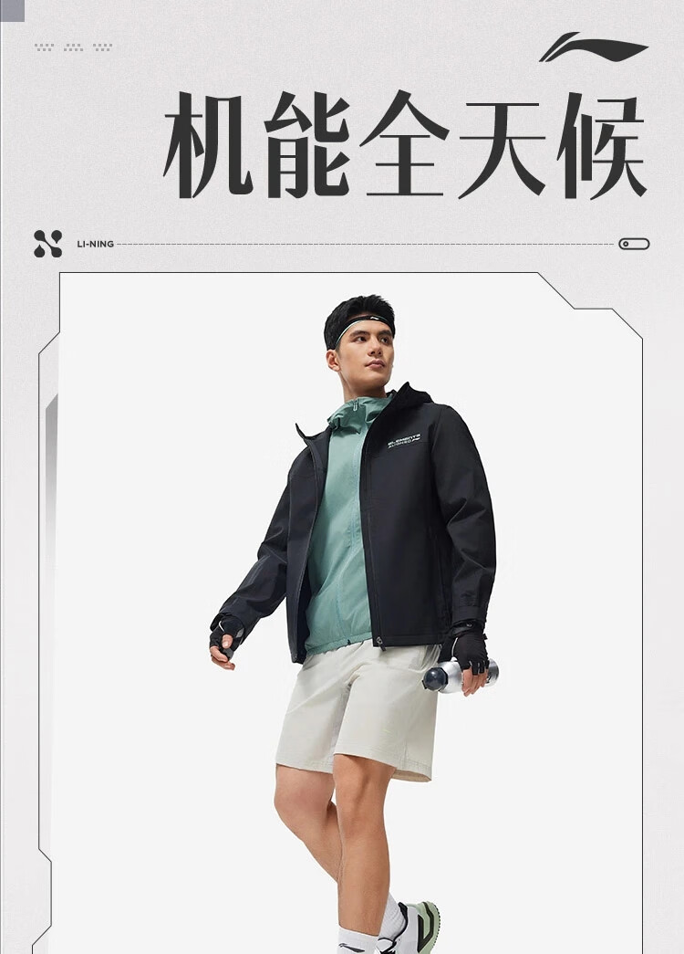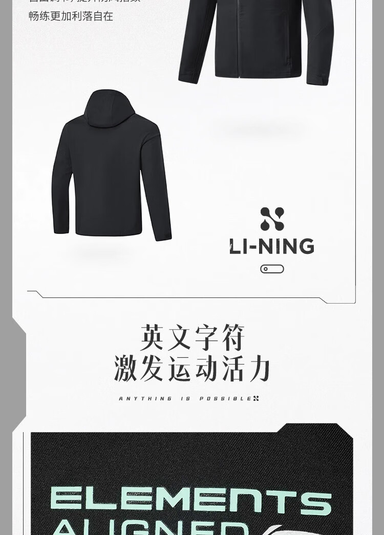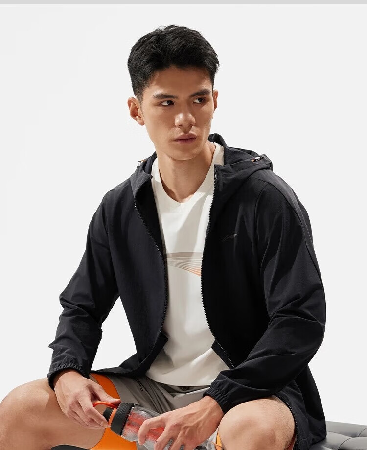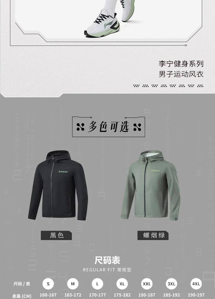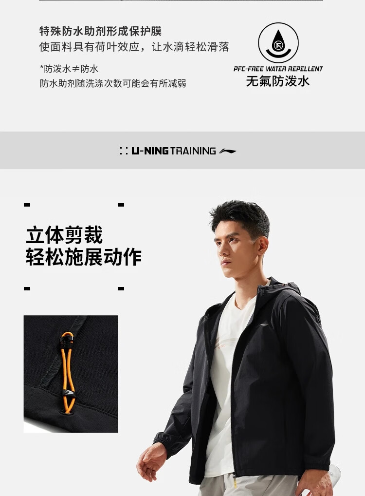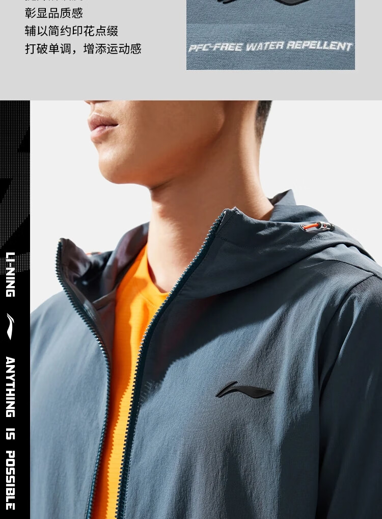 李宁运动风衣男2024新款健身训练跑步防风宽松夹克外套上衣AFDU093