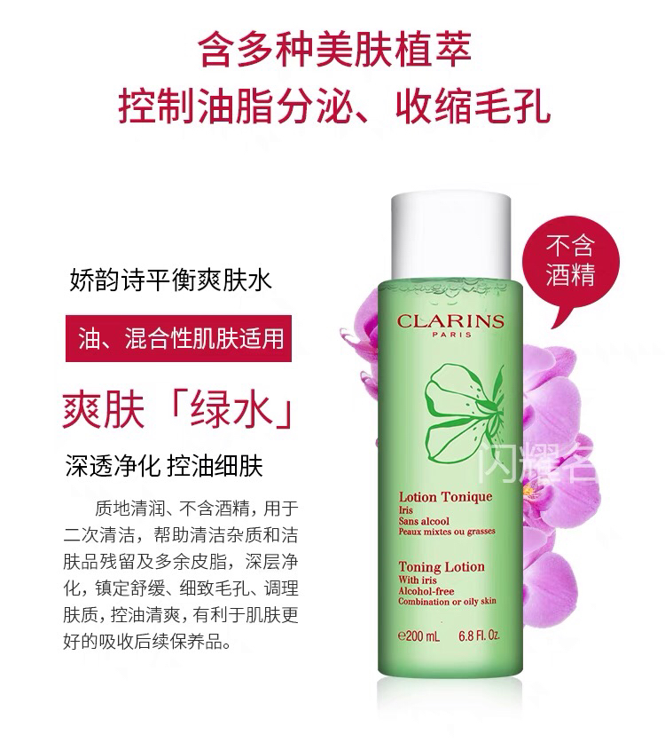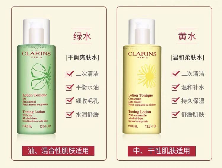 Clarins娇韵诗绿水-黄水-夏季使用-平衡爽肤控油保湿200ml-会员5折