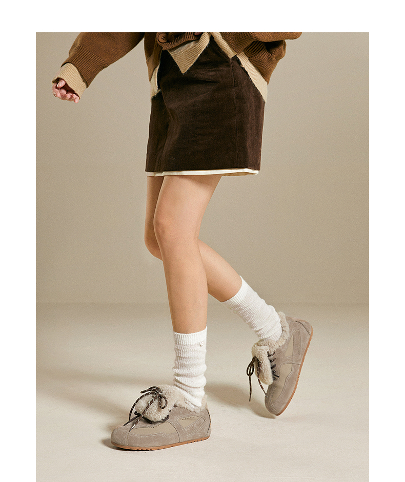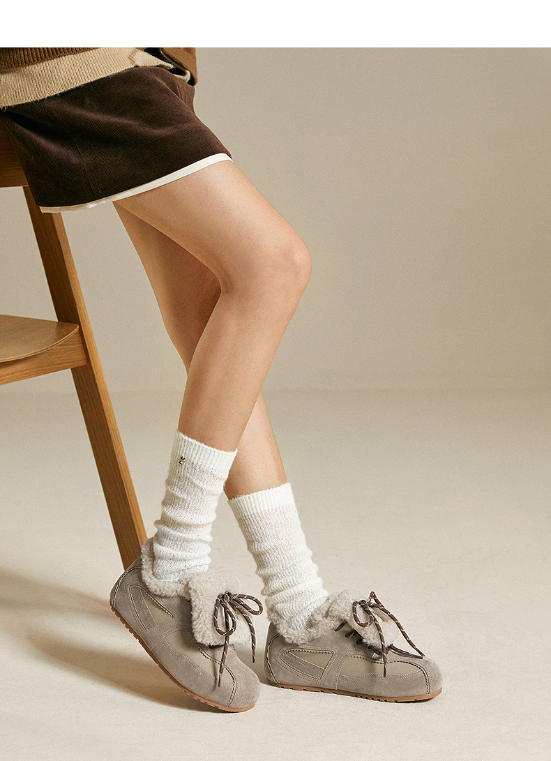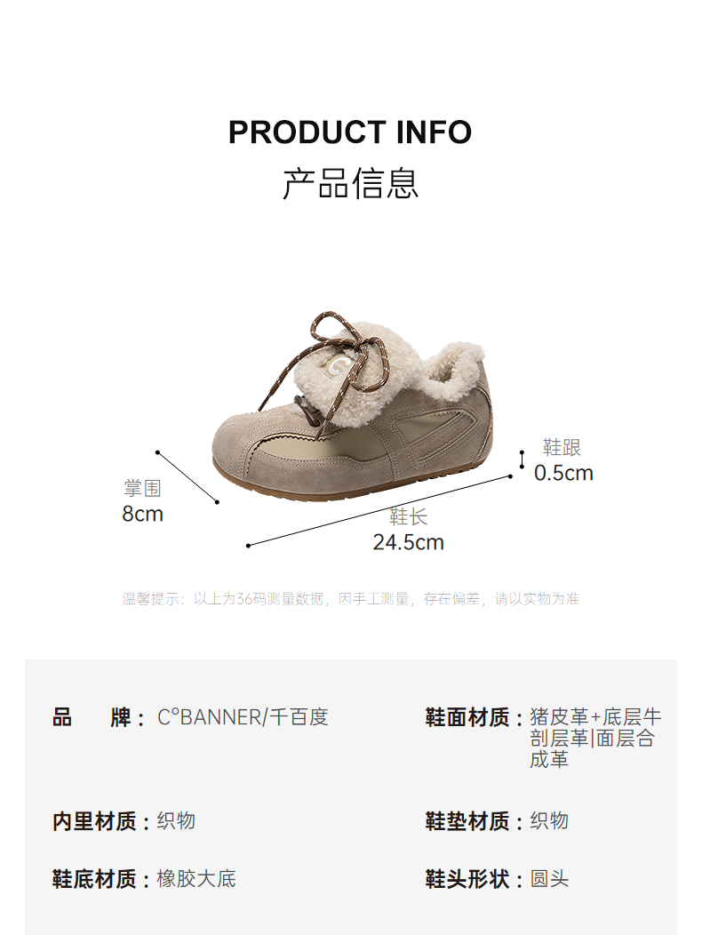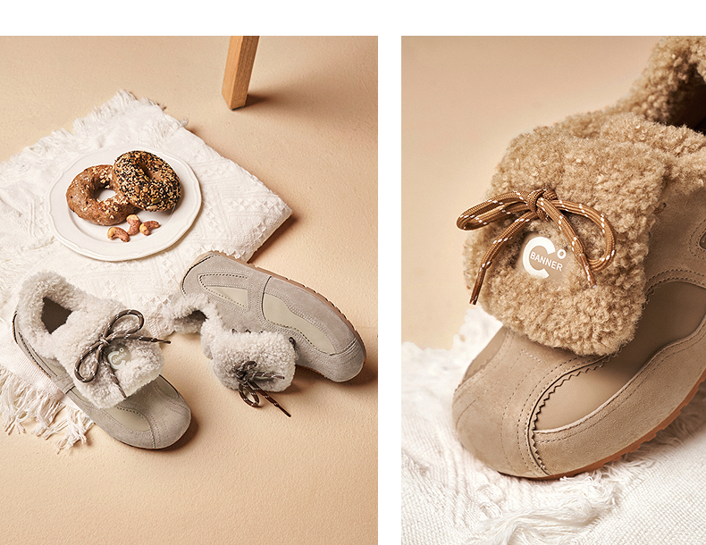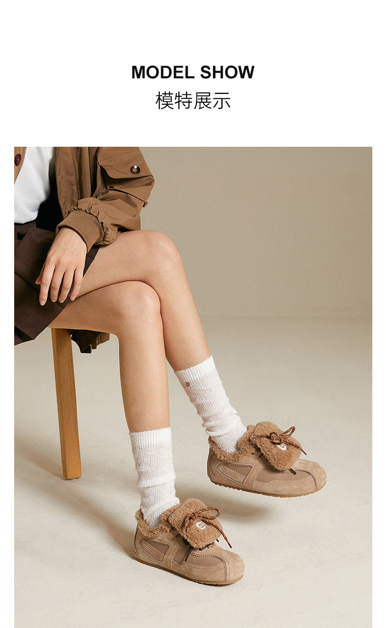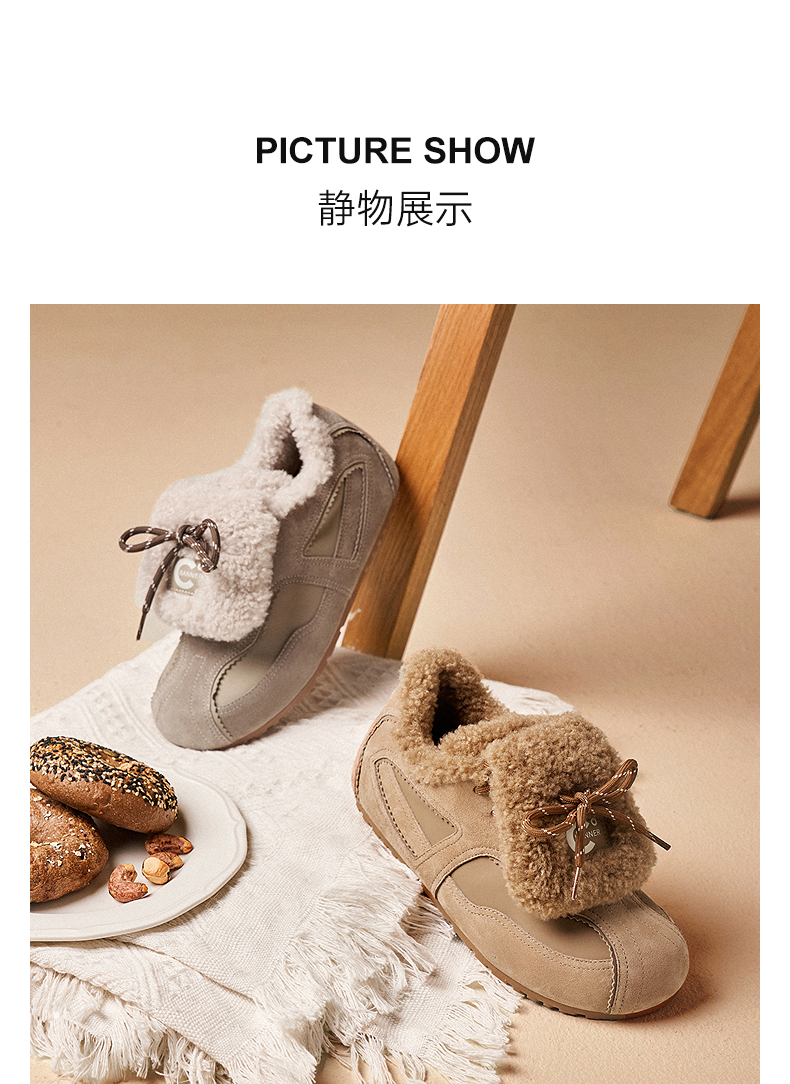 千百度薄底时尚雪地靴女毛毛鞋复古德训鞋勃肯鞋短靴A25663502