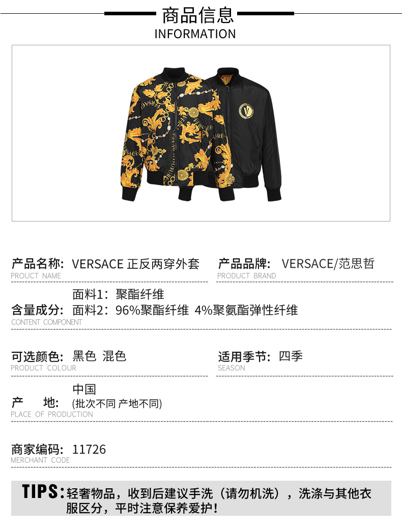 【超惠秒】Versace 范思哲 男士两面穿保暖夹克外套 11726