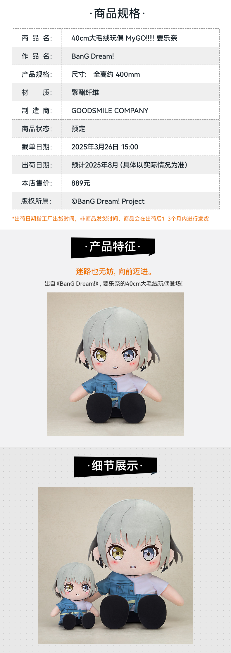 【GSC补款】40cm大毛绒玩偶 MyGO!!!!! 要乐奈 BanG Dream!
