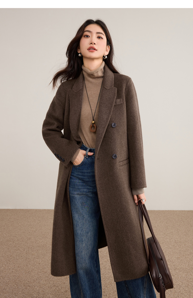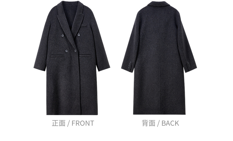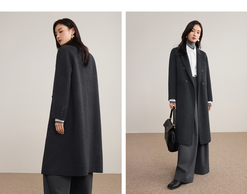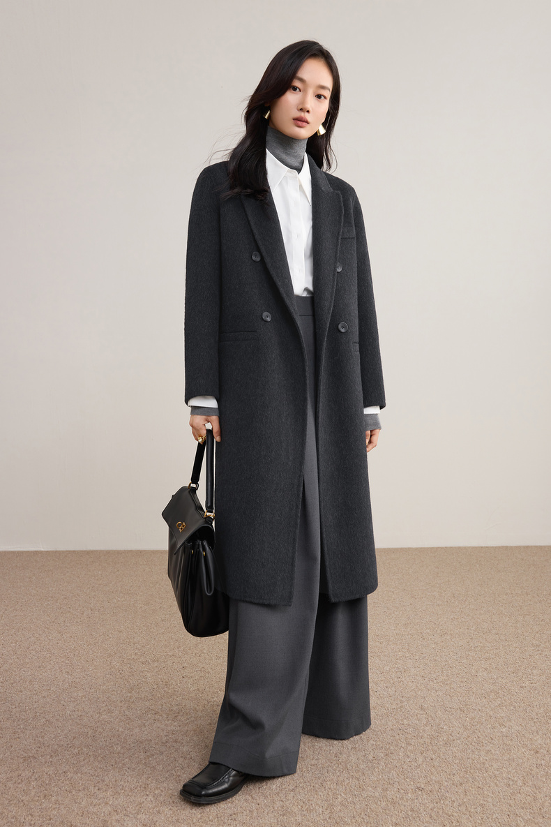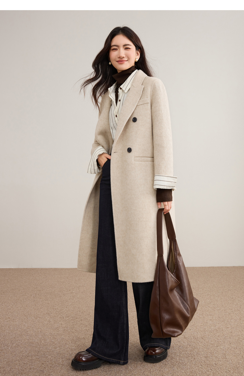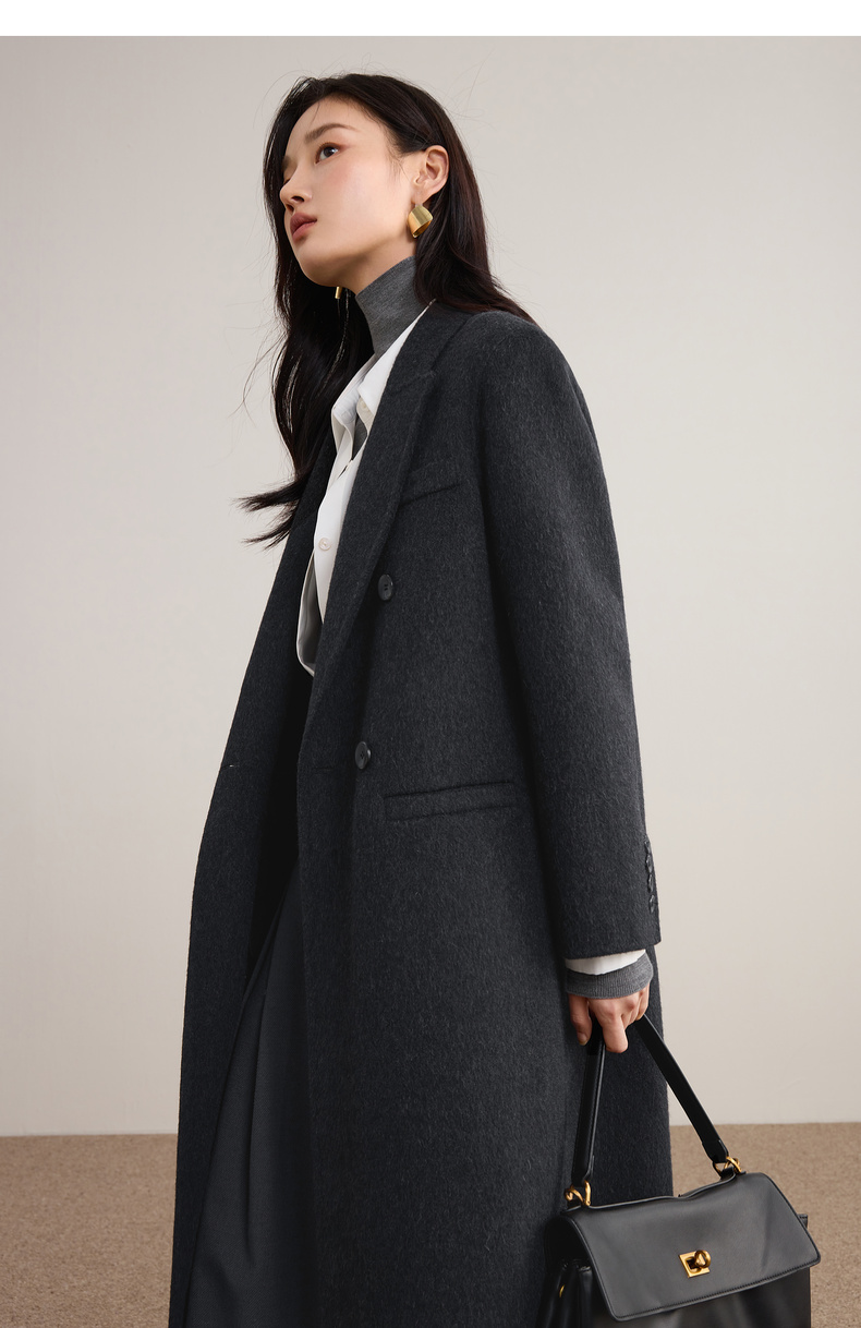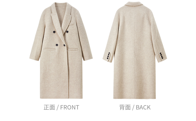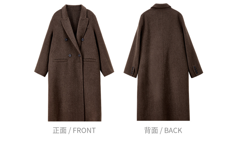 【内购】【绵羊毛】英伦风戗驳领双排扣宽松显瘦厚保暖中长款双面呢大衣-W54OA8769