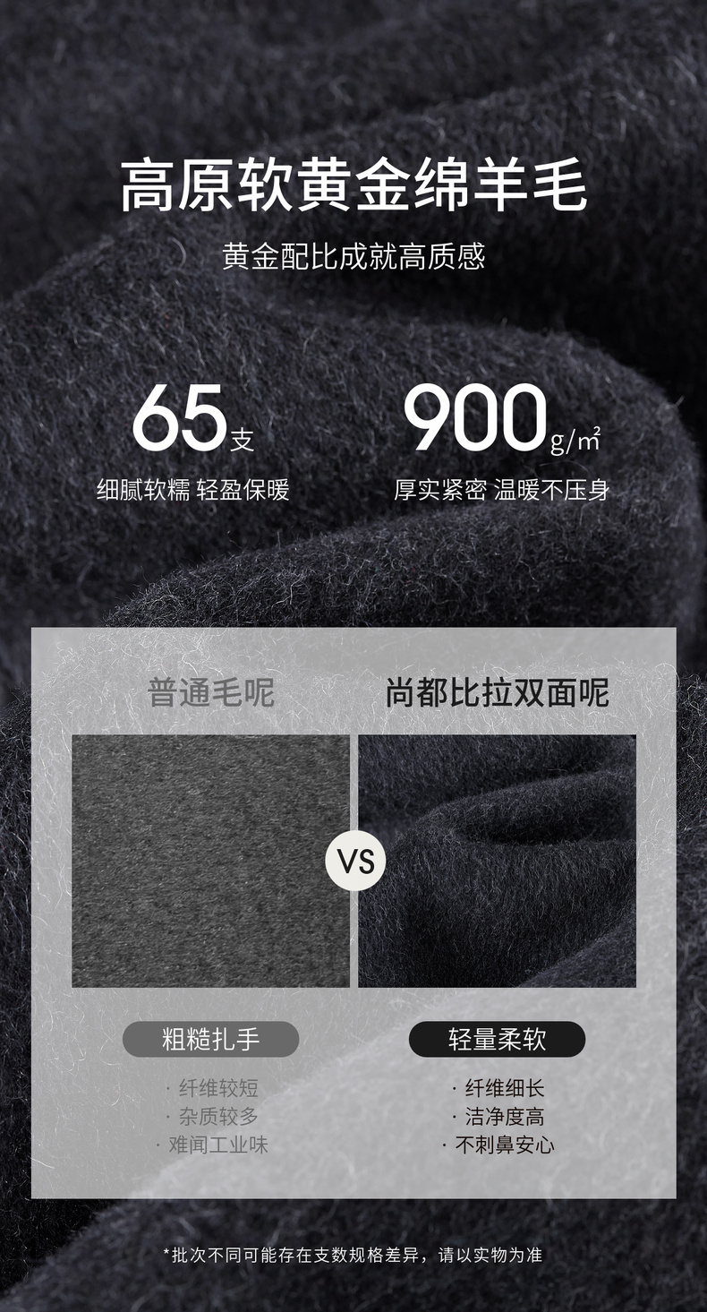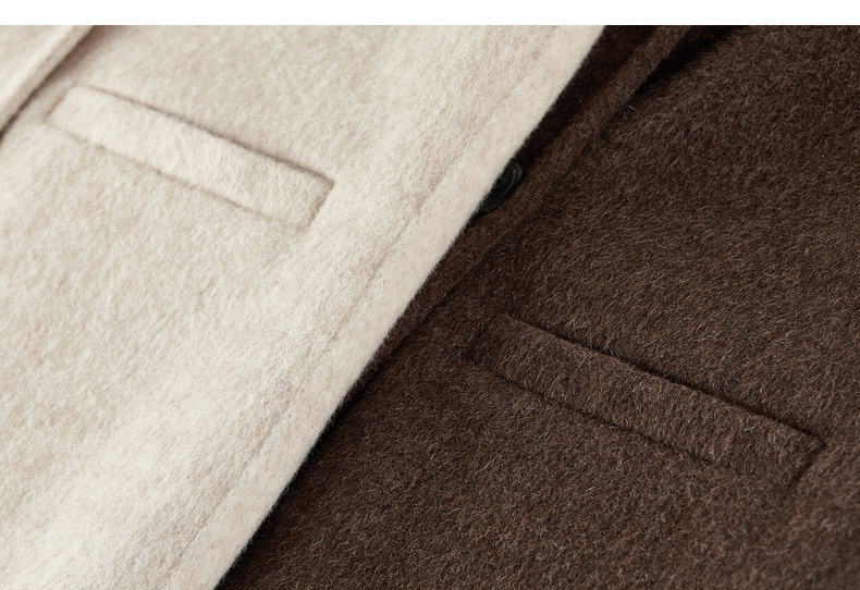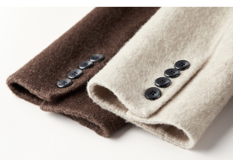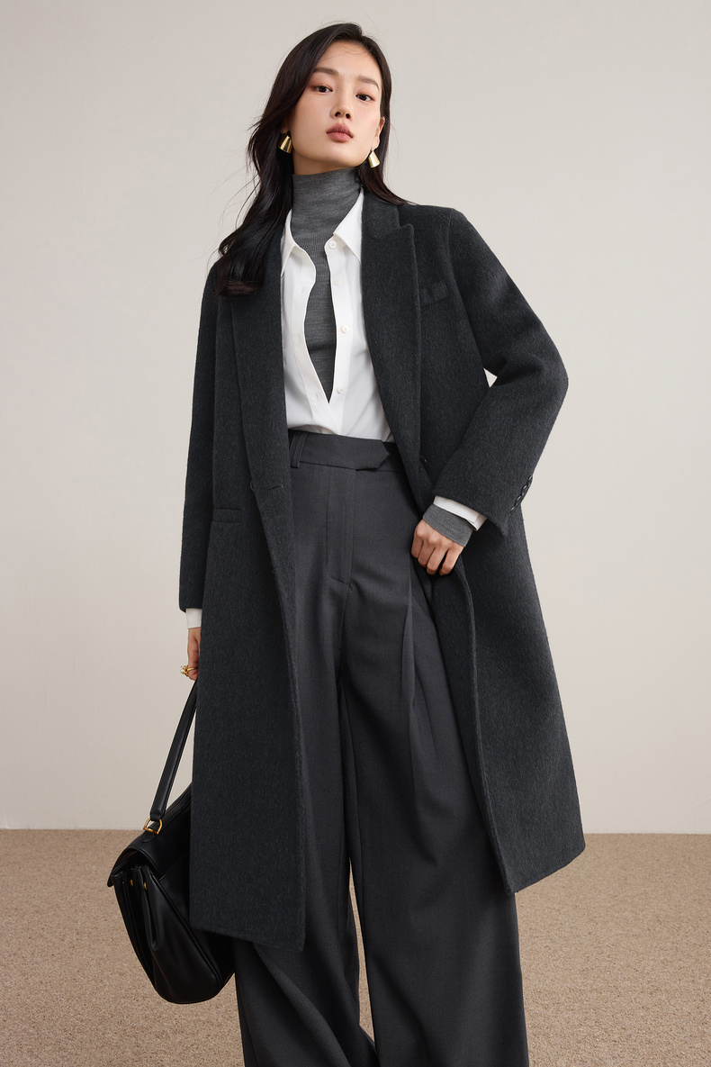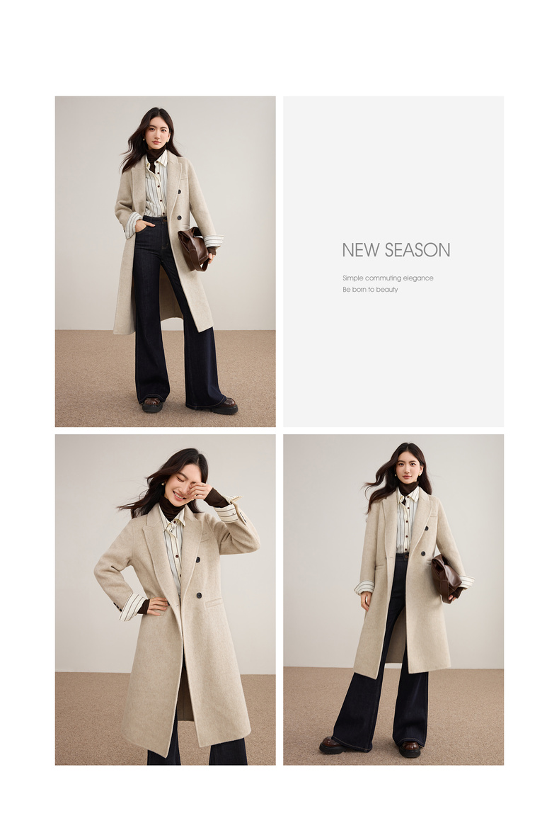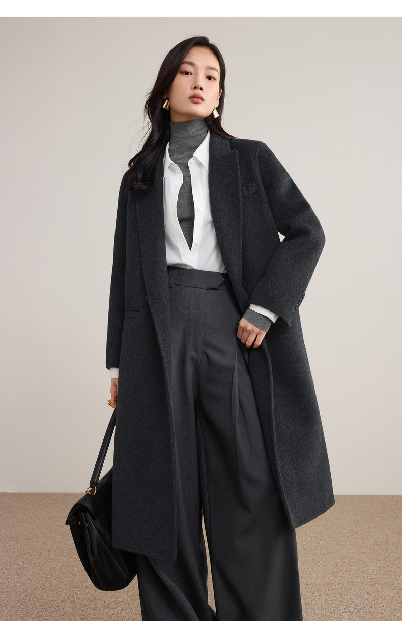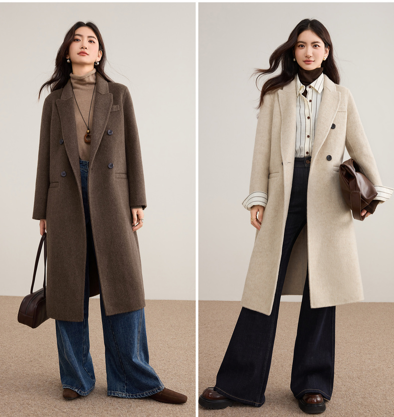 【内购】【绵羊毛】英伦风戗驳领双排扣宽松显瘦厚保暖中长款双面呢大衣-W54OA8769