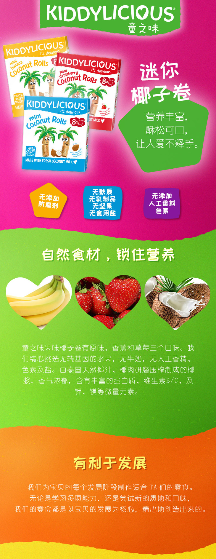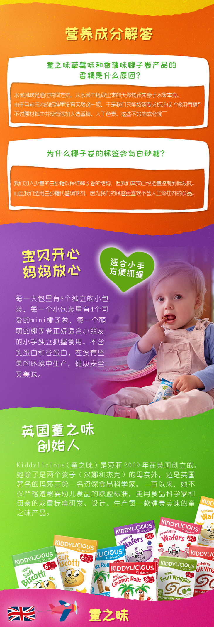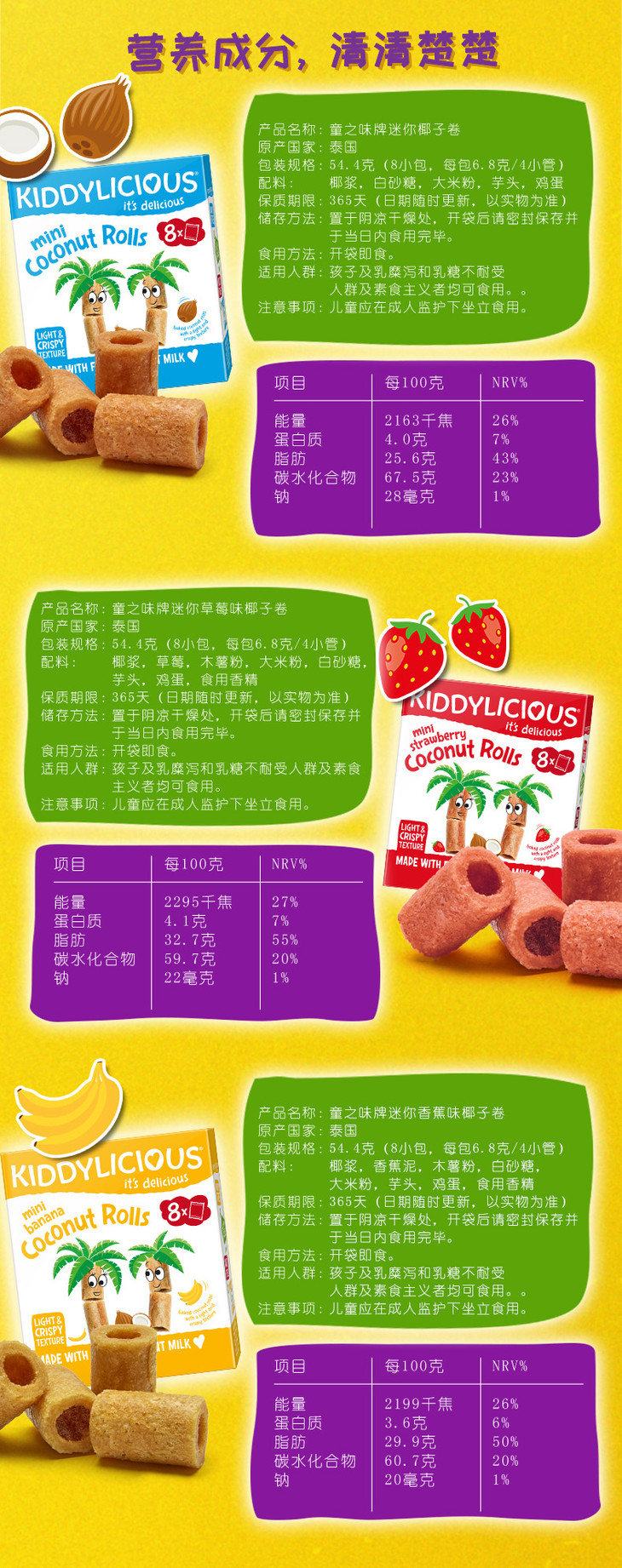 【双十二】童之味kiddylicious原装进口宝宝零食婴儿磨牙棒饼干椰子卷54g