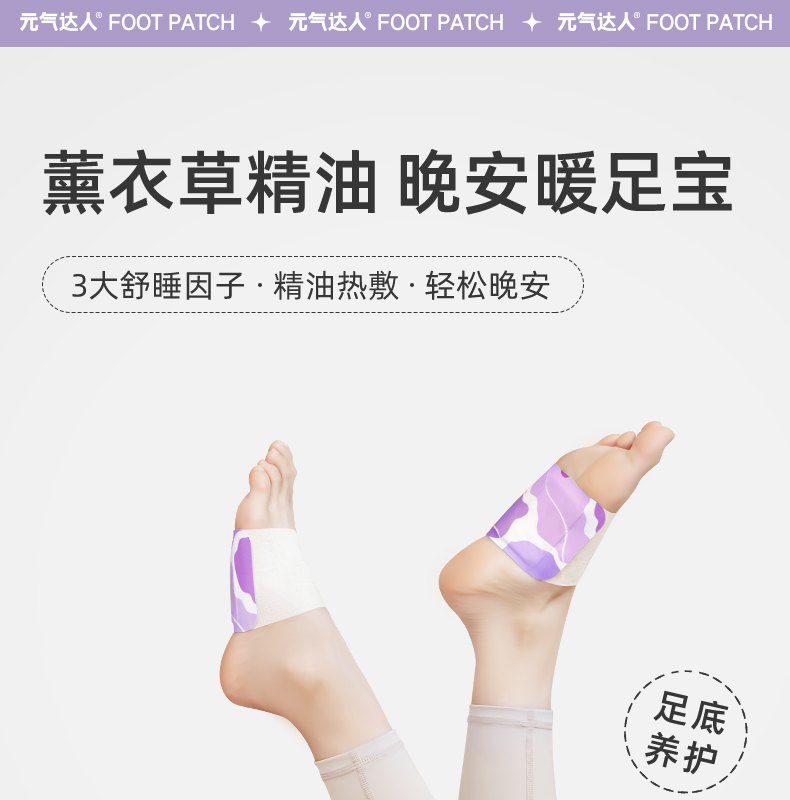【29.9任选4件】元气达人蒸汽薰衣草精油暖足贴脚底暖宝宝持久热敷