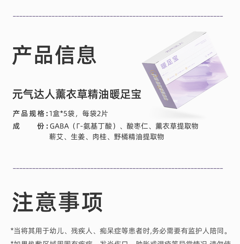 【三九活动中】元气达人蒸汽薰衣草精油暖足贴脚底暖宝宝持久热敷