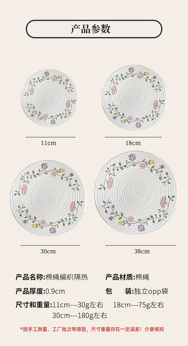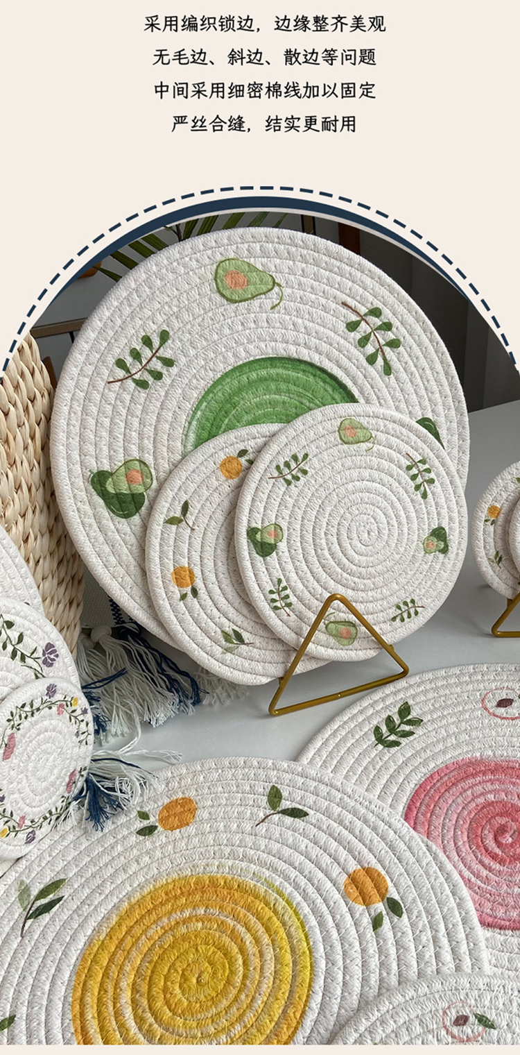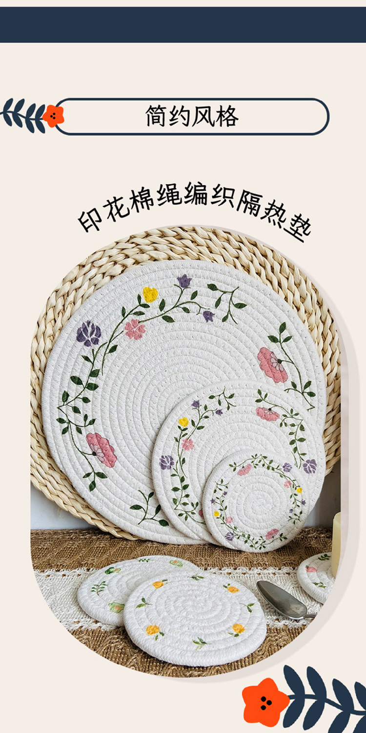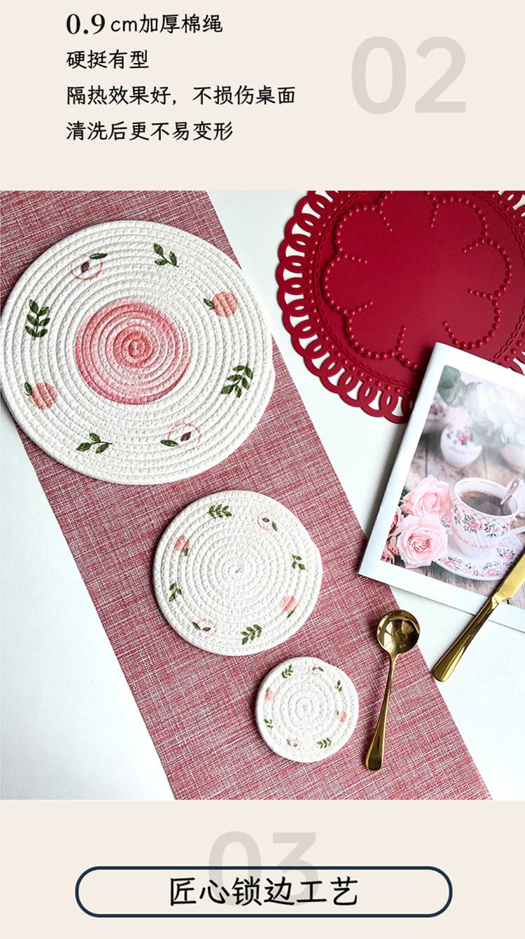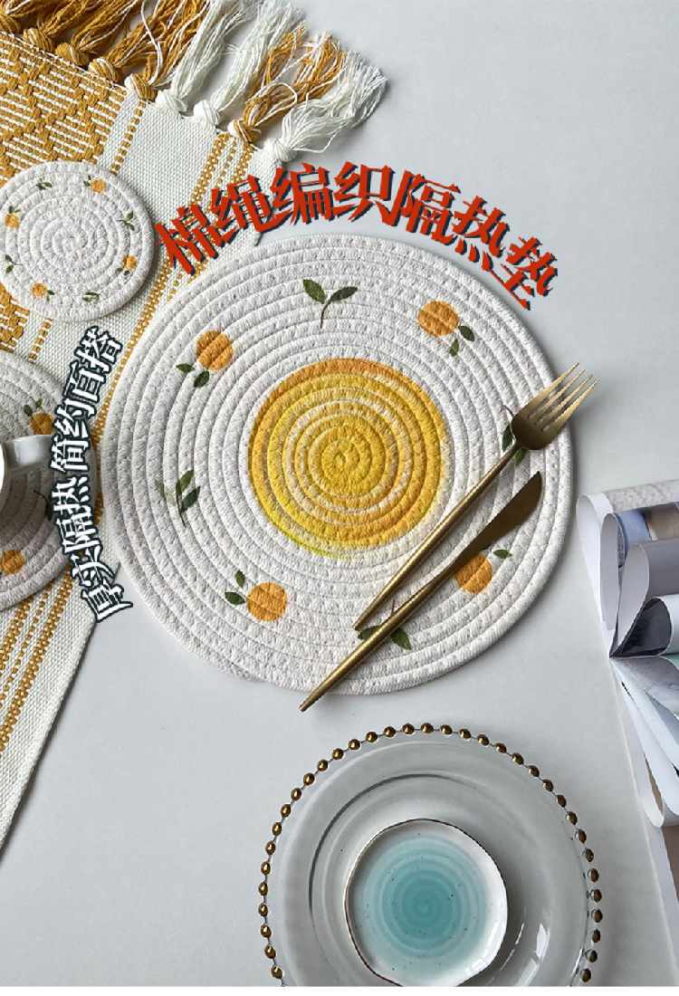 【ins风隔热垫3件套】创意印花杯垫圆形家用碗盘垫 编织棉绳咖啡杯茶壶隔热餐垫