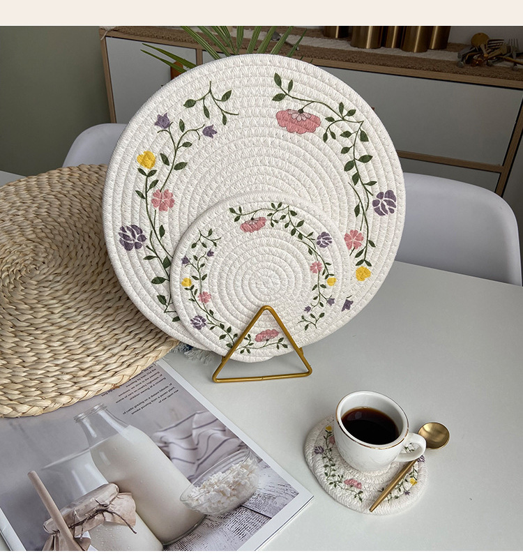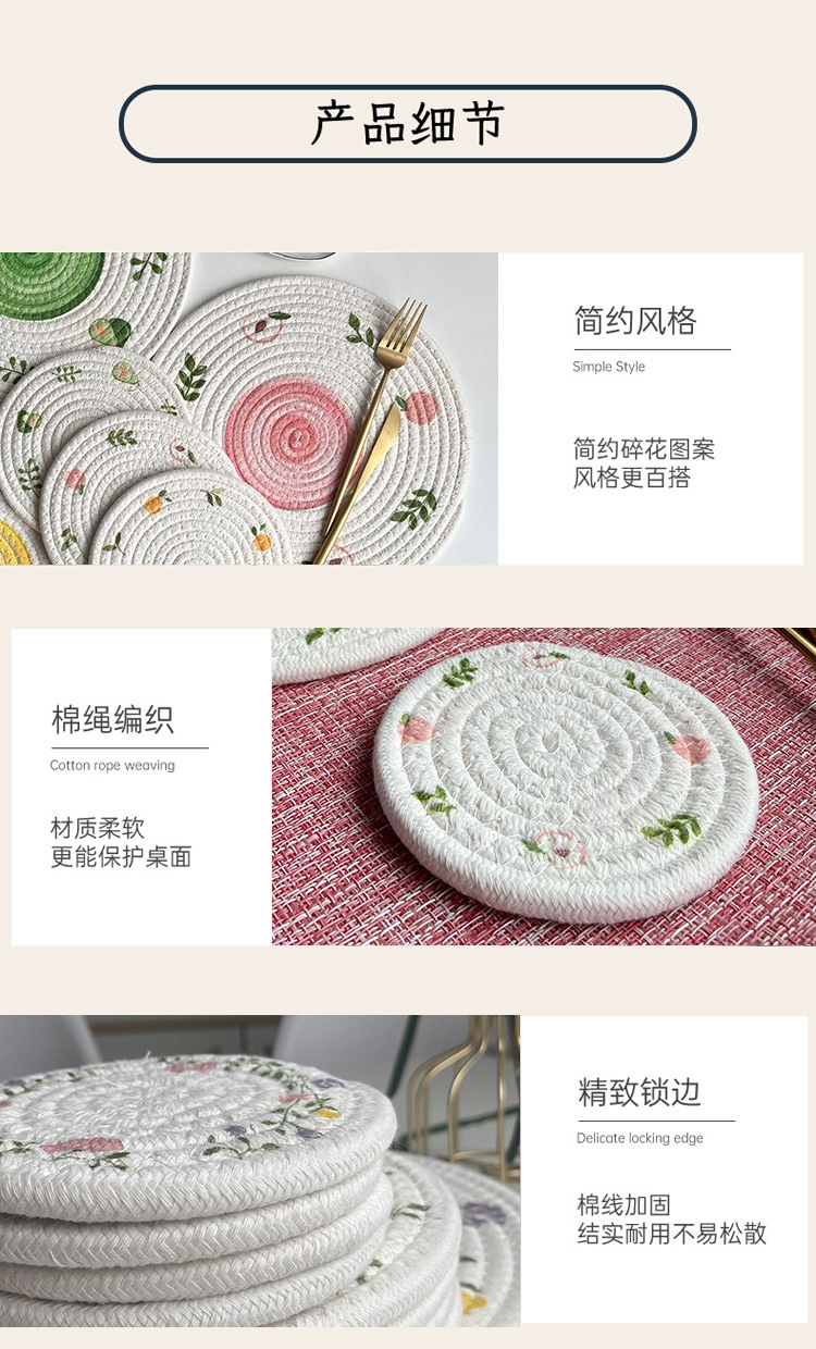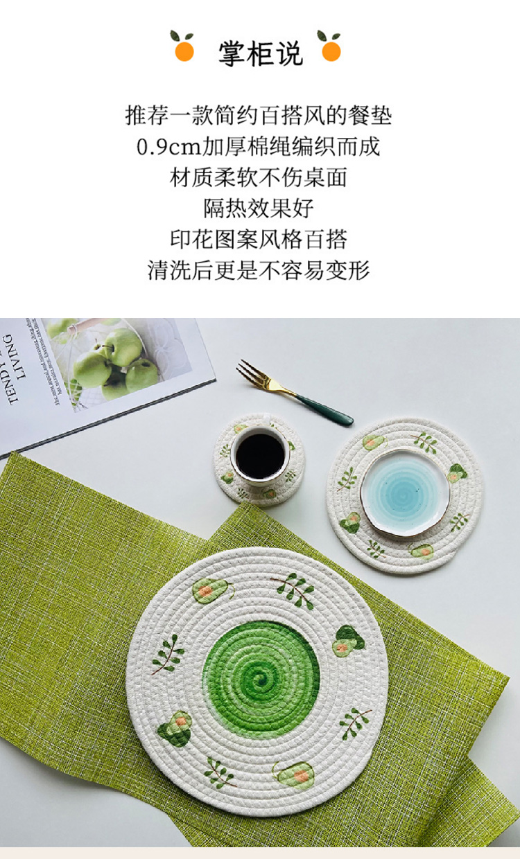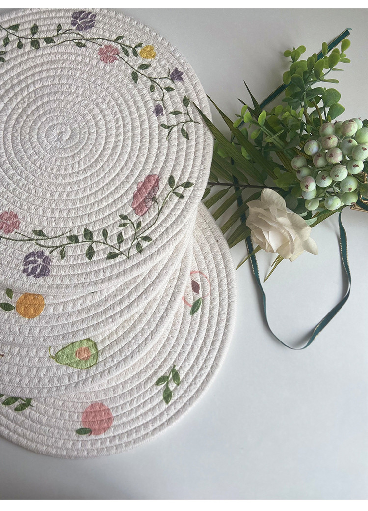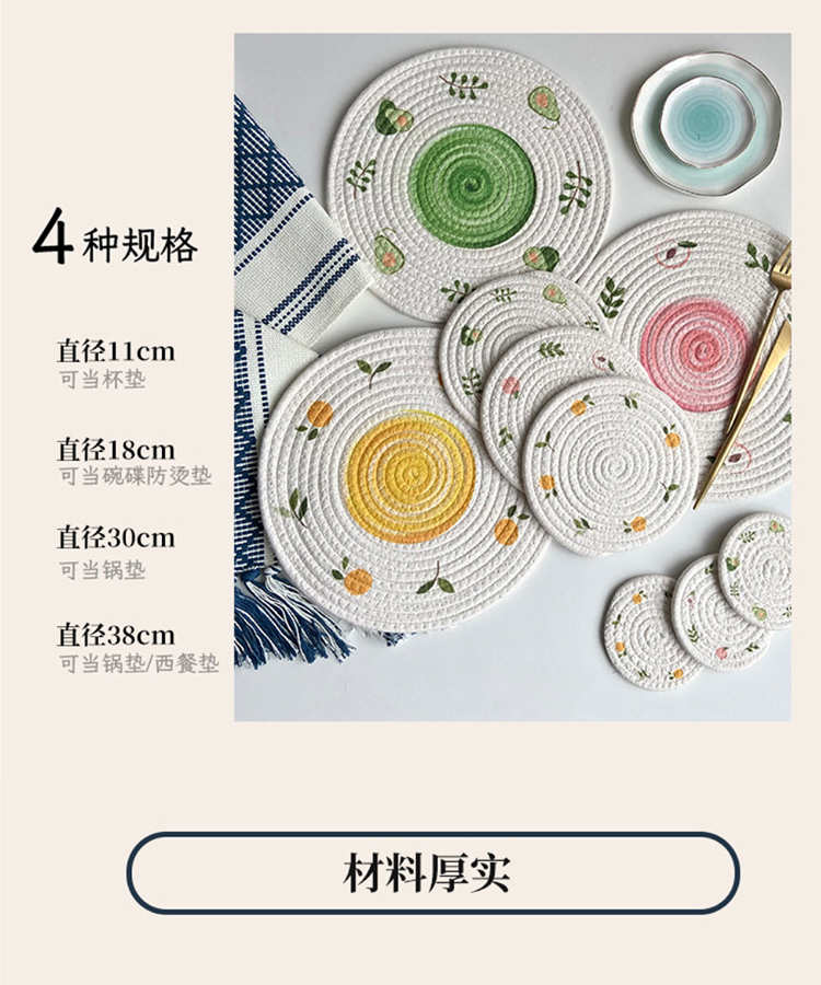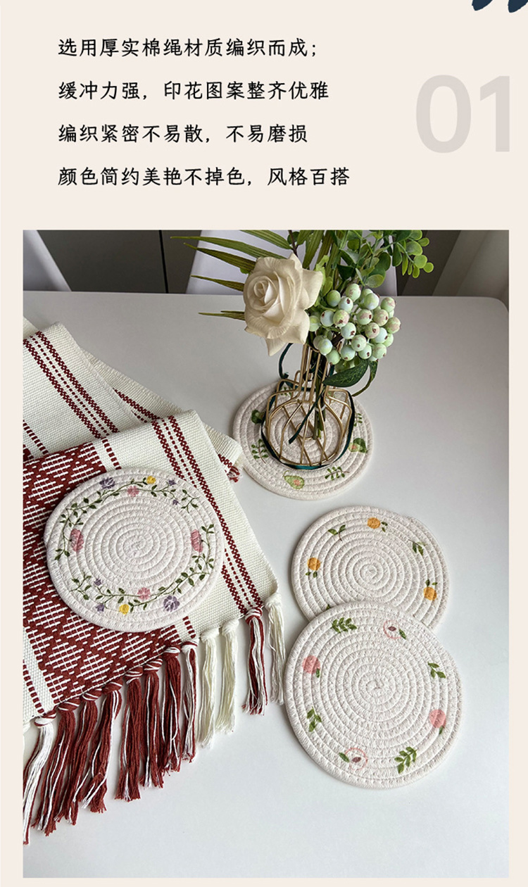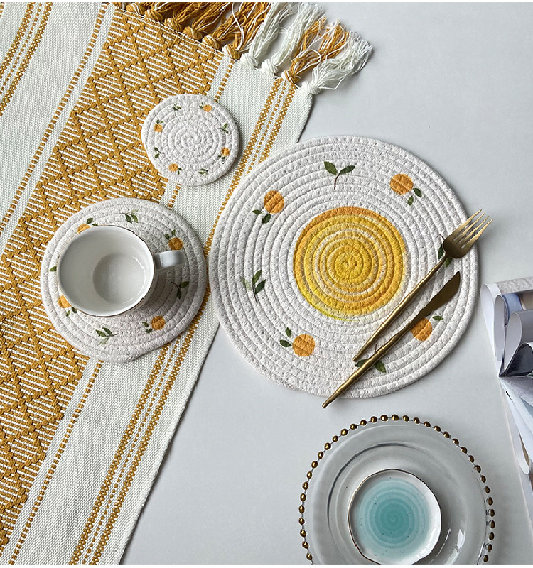 【ins风隔热垫3件套】创意印花杯垫圆形家用碗盘垫 编织棉绳咖啡杯茶壶隔热餐垫
