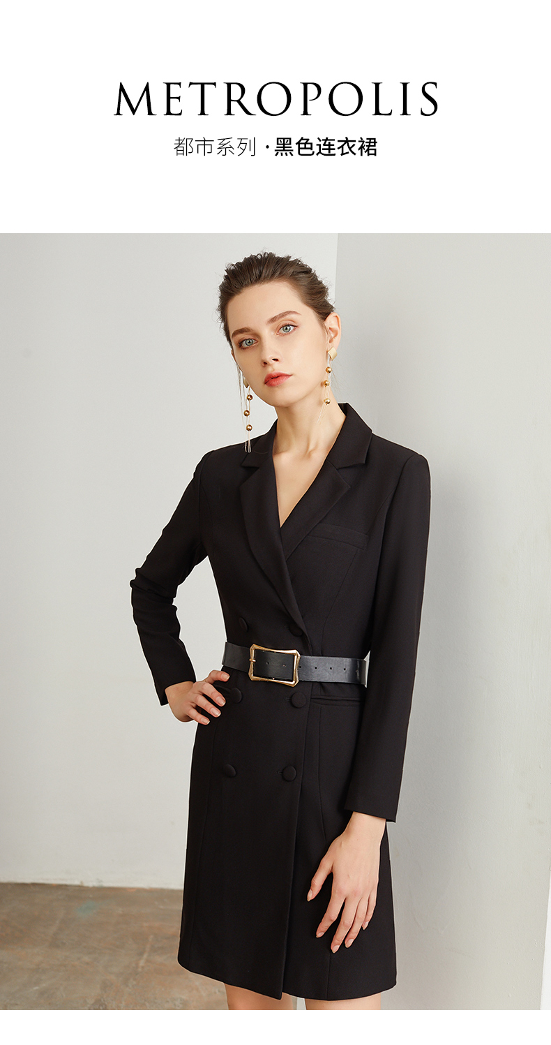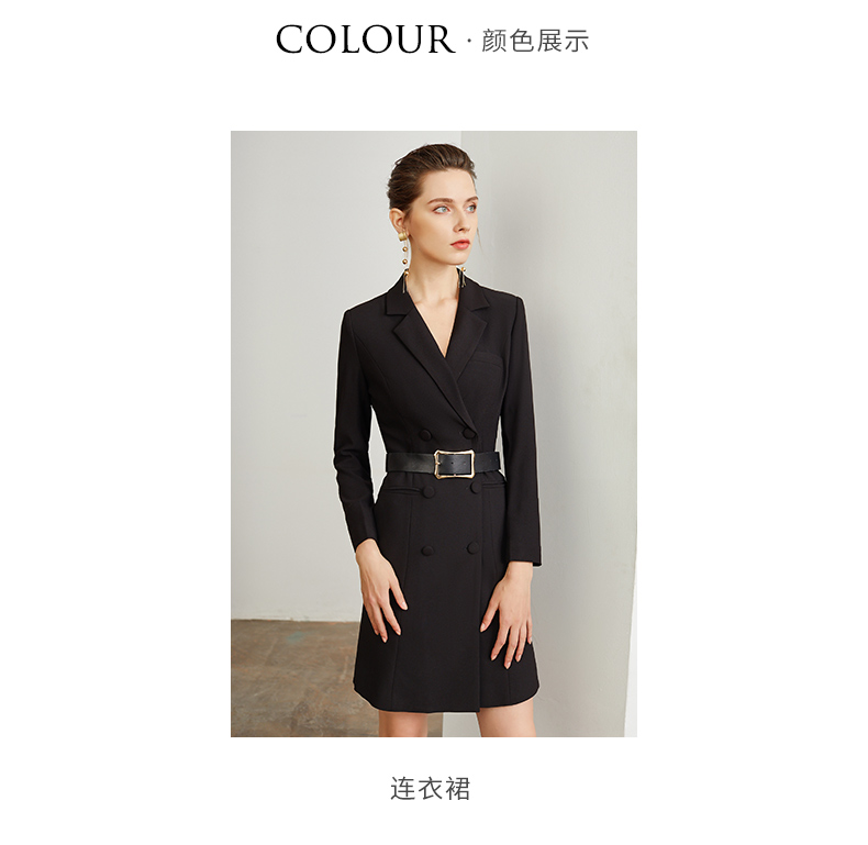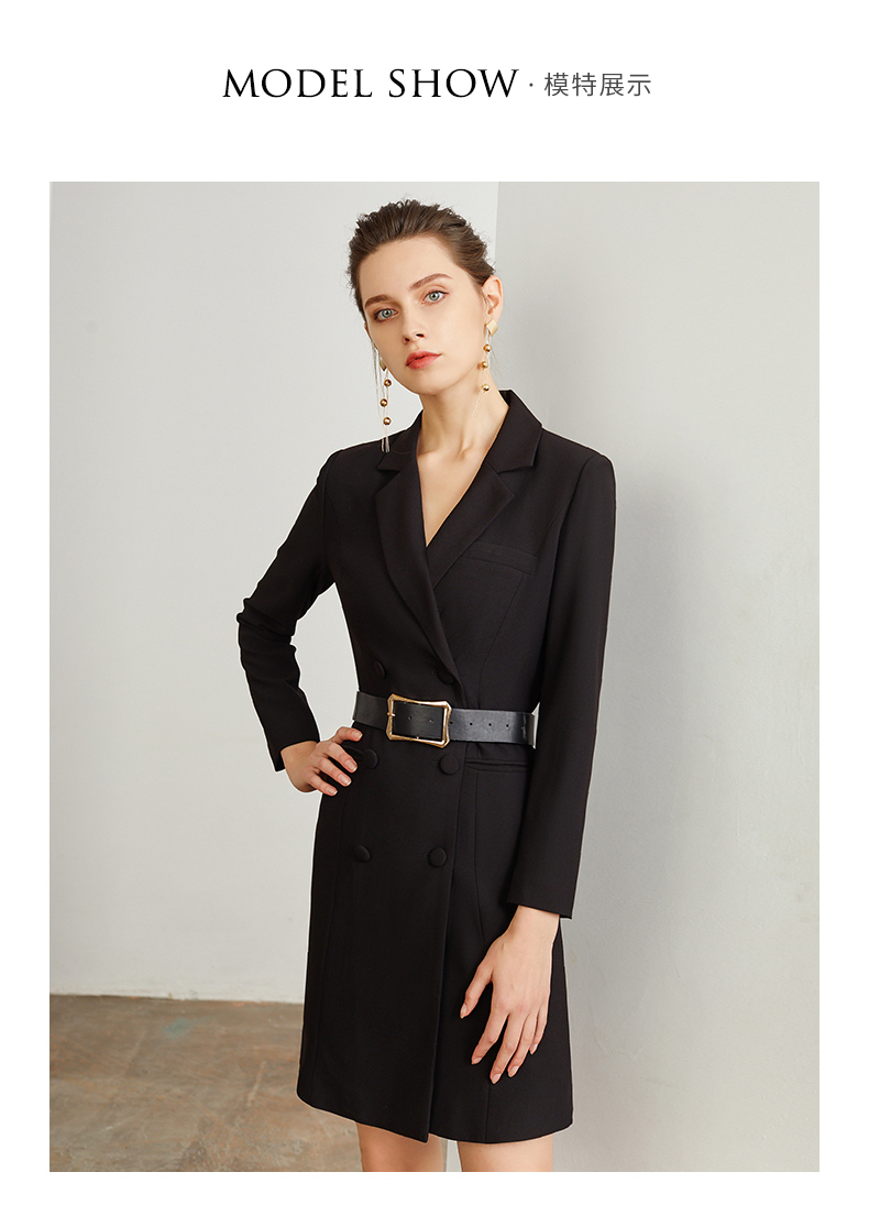 IWY/女总裁范黑色连衣裙女时尚双排扣系带气质女神商务职业通勤工作服Q13096