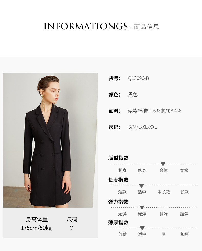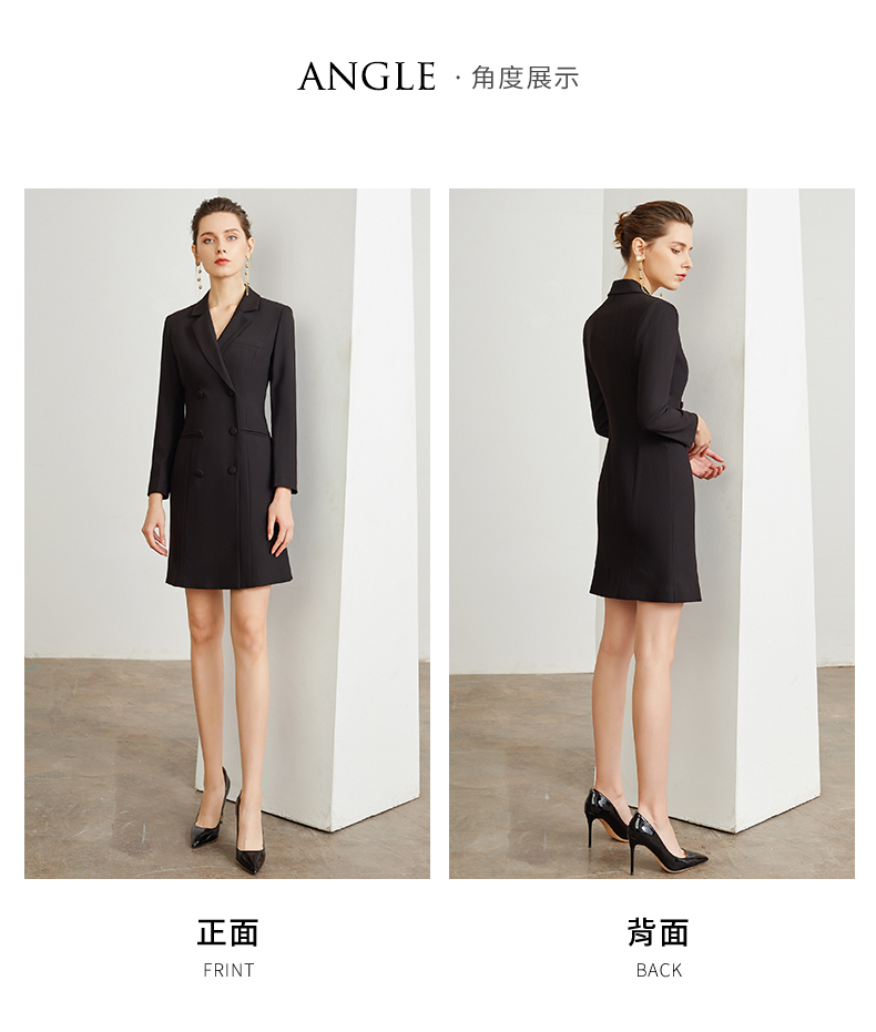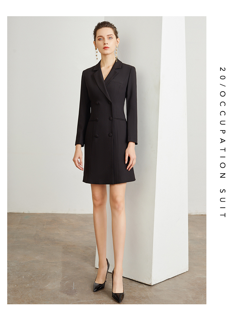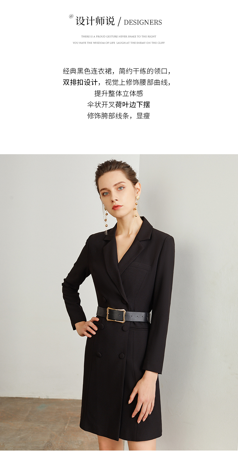 IWY/女总裁范黑色连衣裙女时尚双排扣系带气质女神商务职业通勤工作服Q13096
