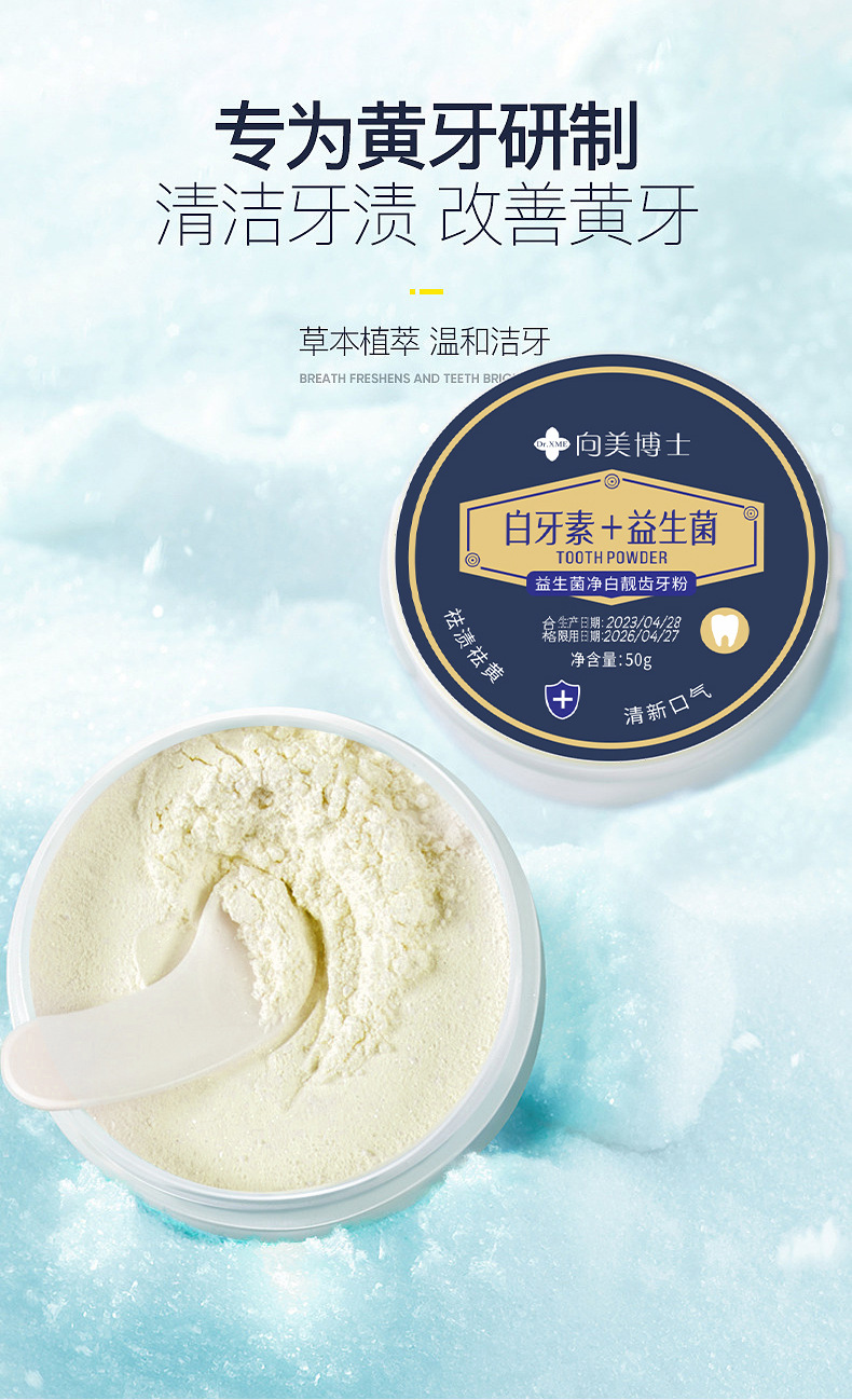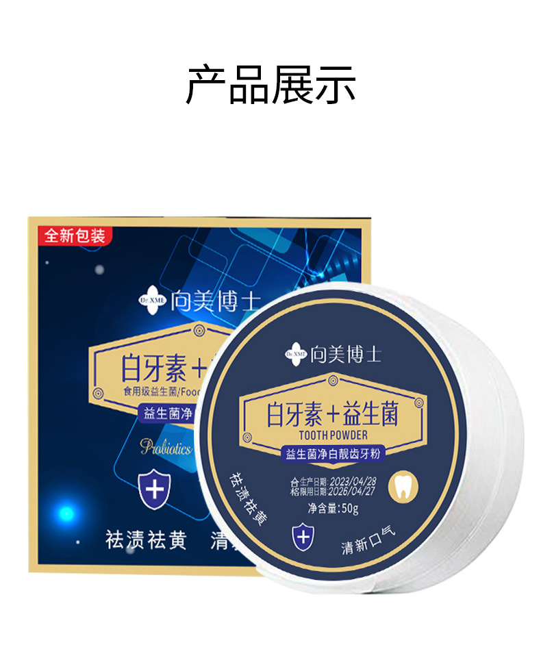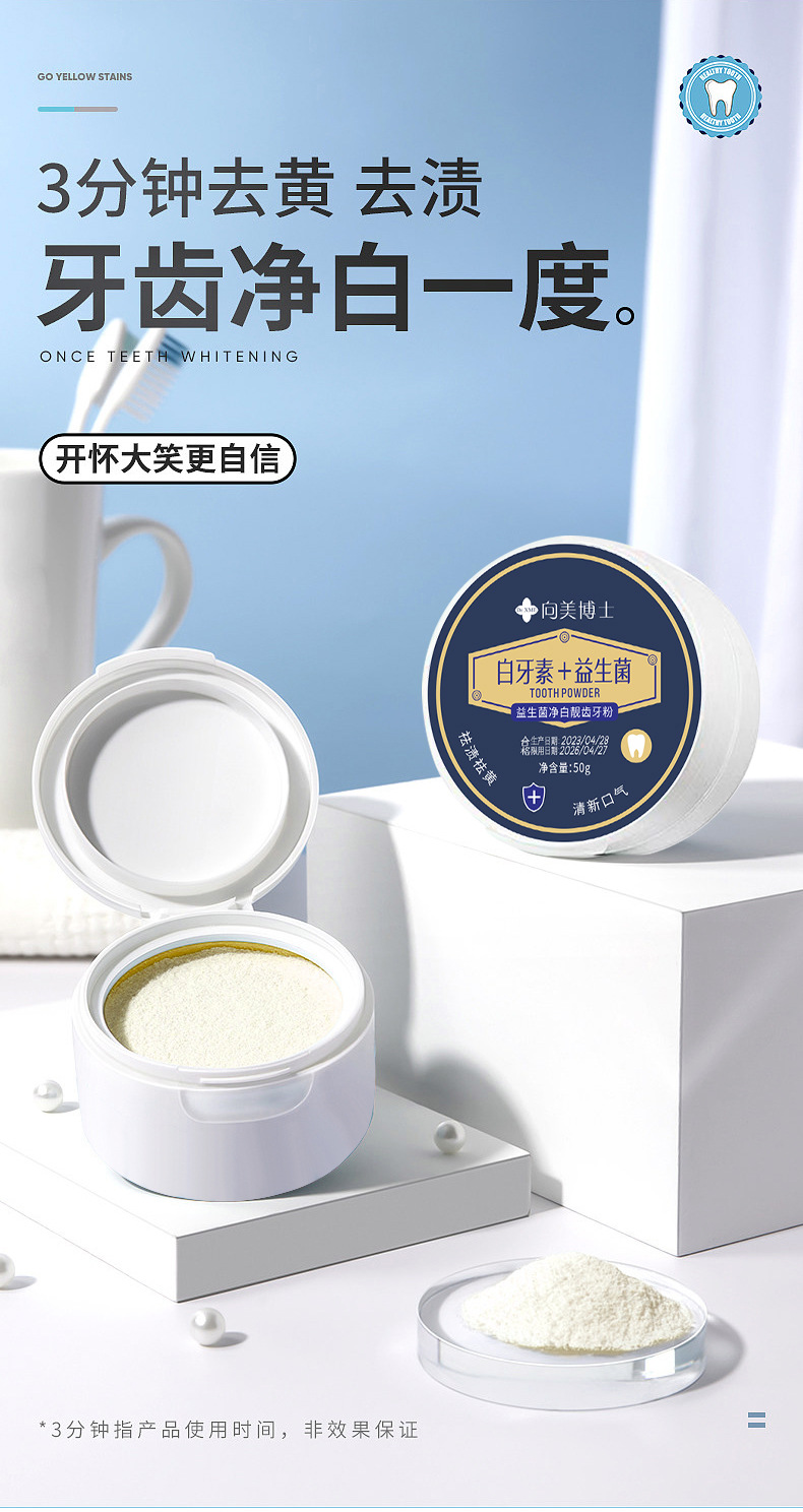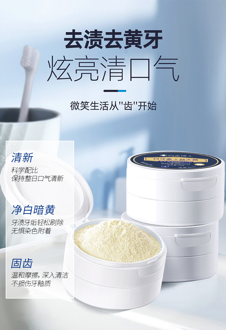 拍1发3【益生菌净白牙粉,让你拥有亮白牙齿!】去除顽固牙渍。持久清新口气,防蛀固齿,让你拥有健康口腔。