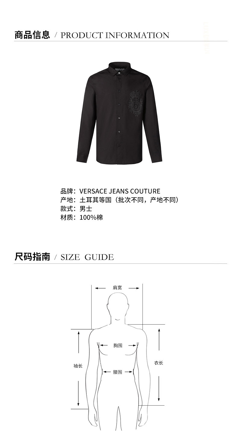 VERSACE JEANS COUTURE/VERSACE JEANS COUTURE范思哲 男士棉质长袖衬衫V字徽章图案 71GAL2RC CN002
