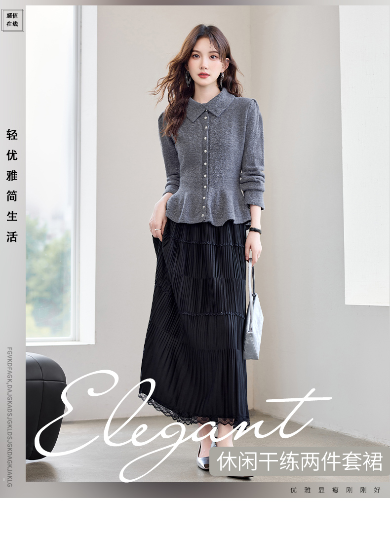法式软糯针织毛衣半身裙两件套,复古日系设计感两件套HR-618