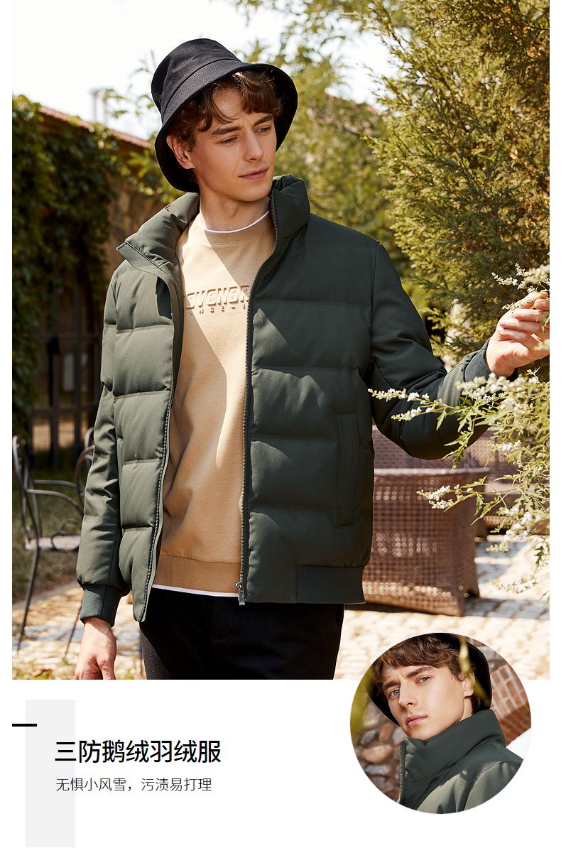 【三防】柒牌立领羽绒服男秋冬新款休闲百搭鹅绒保暖防风外套 125E70590
