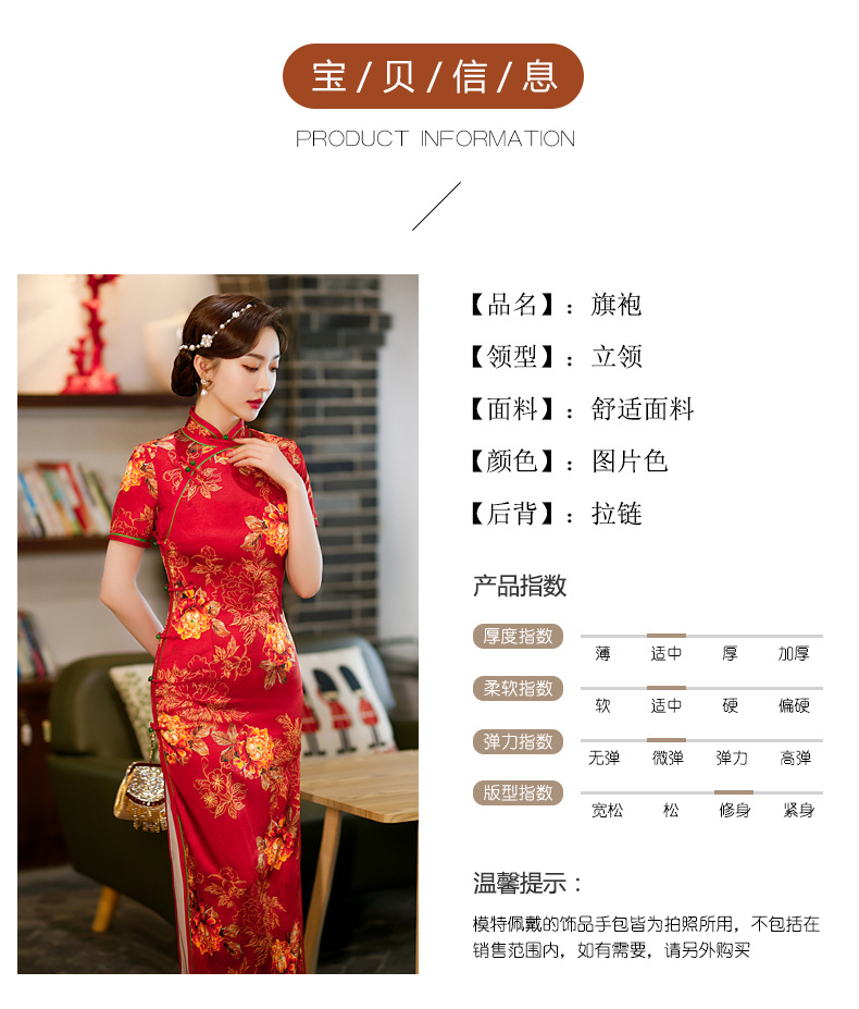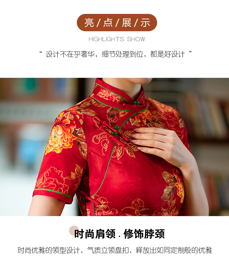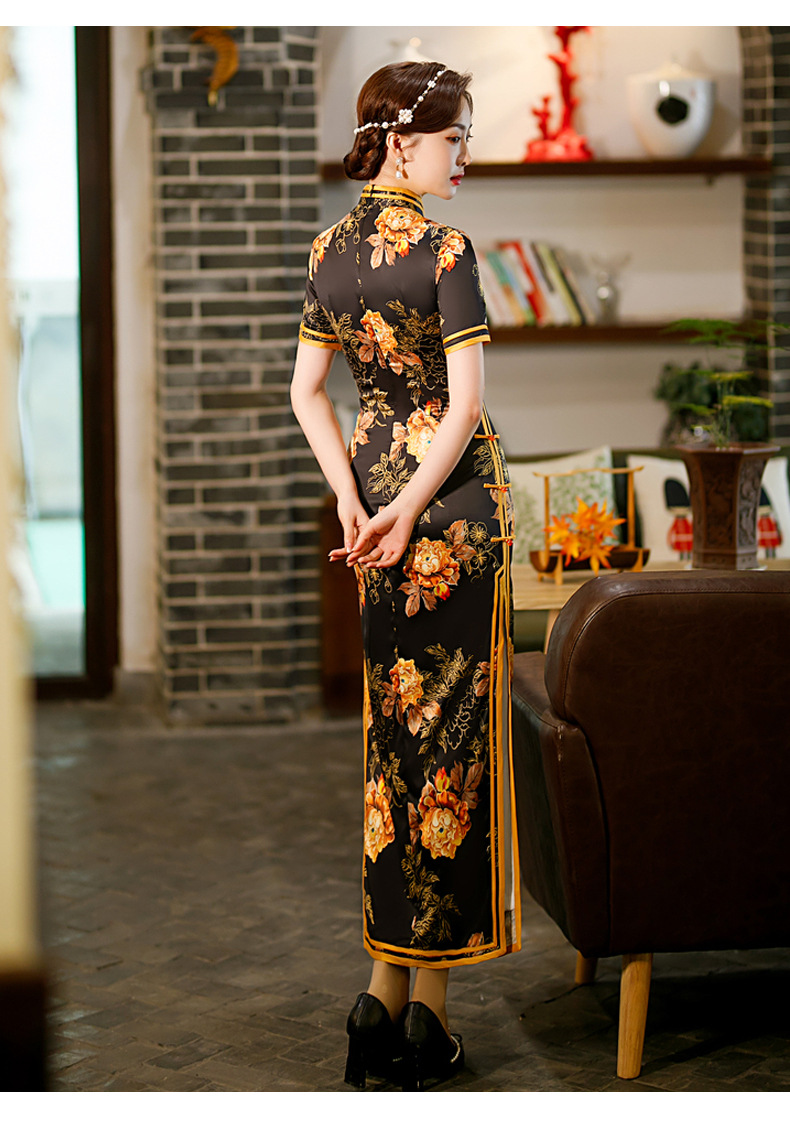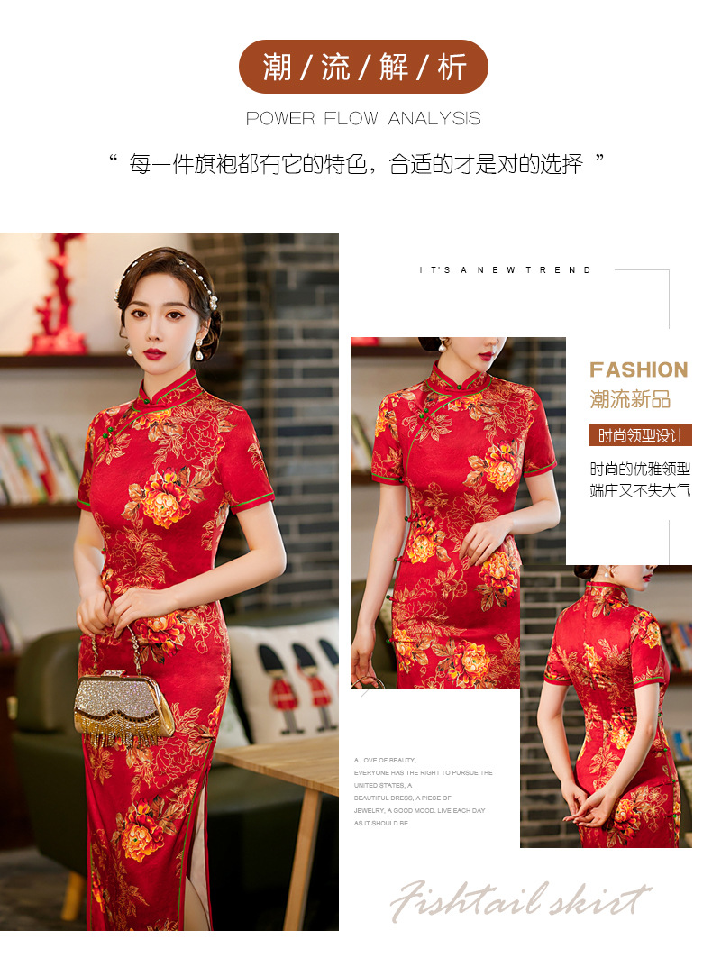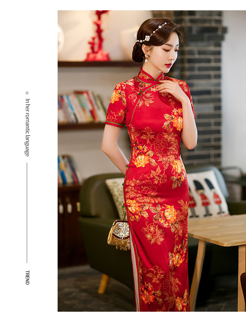 高开衩双层旗袍裙24春夏季新款修身印花国风旗袍CX-0650