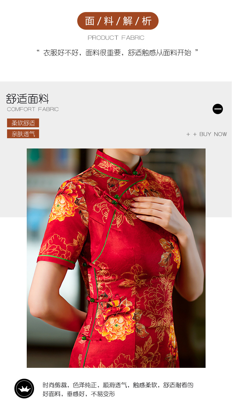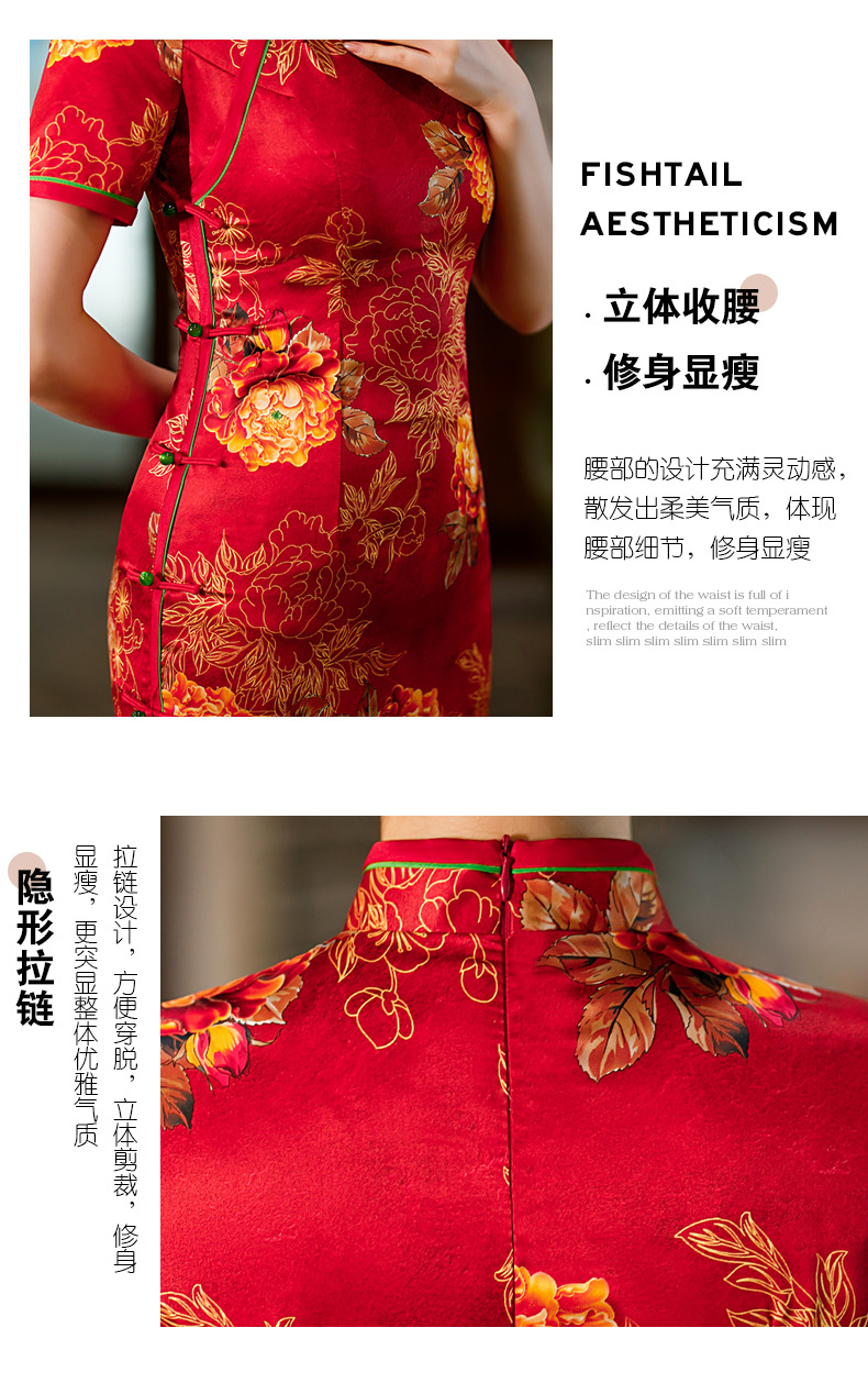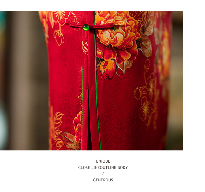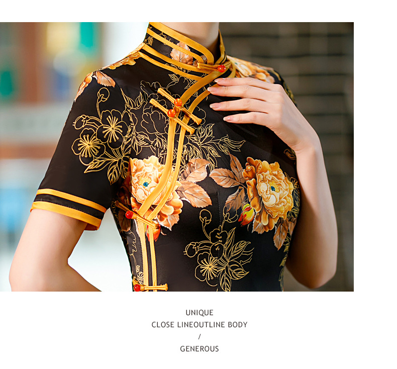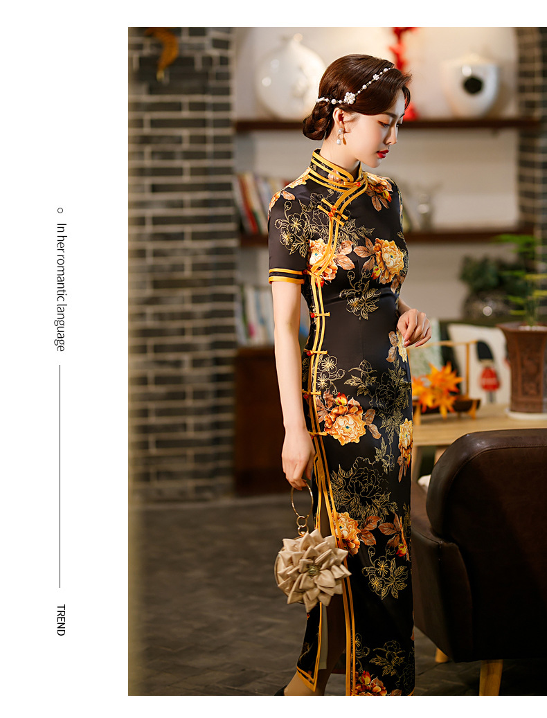 高开衩双层旗袍裙24春夏季新款修身印花国风旗袍CX-0650