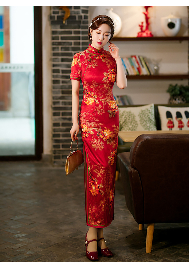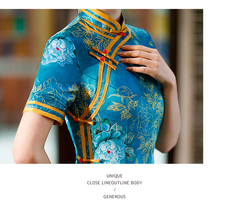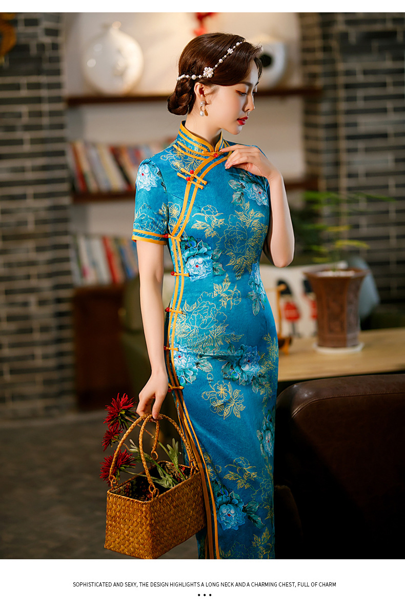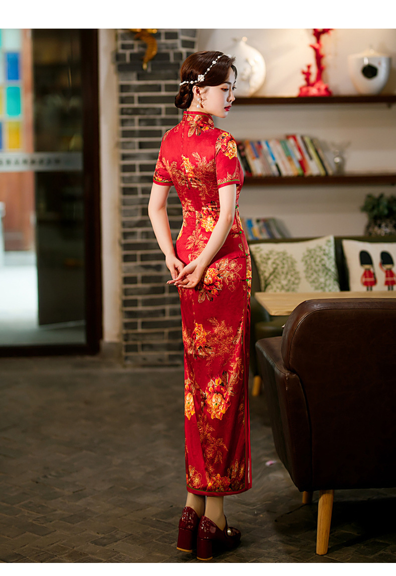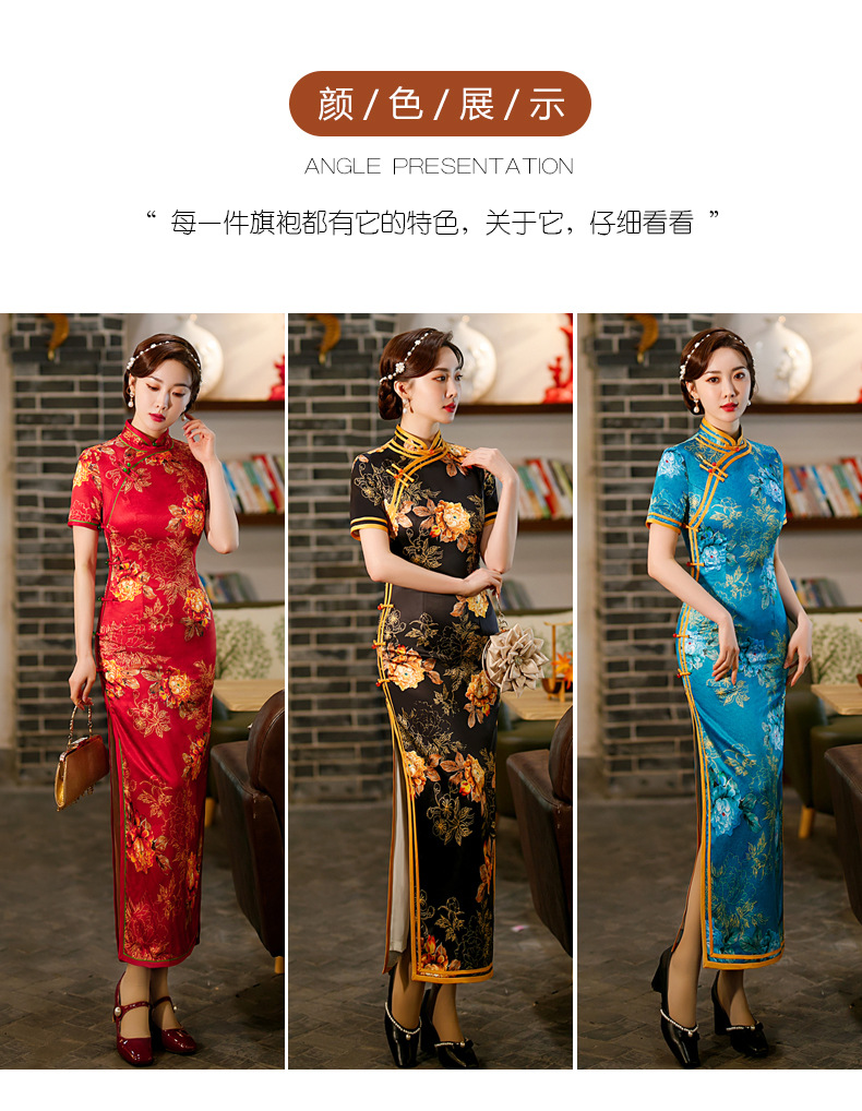 老上海复古国风丝绒旗袍,大摆裙秋冬新款改良新中式中老年旗袍GX-22218