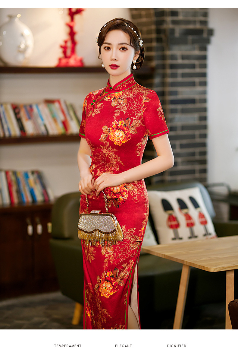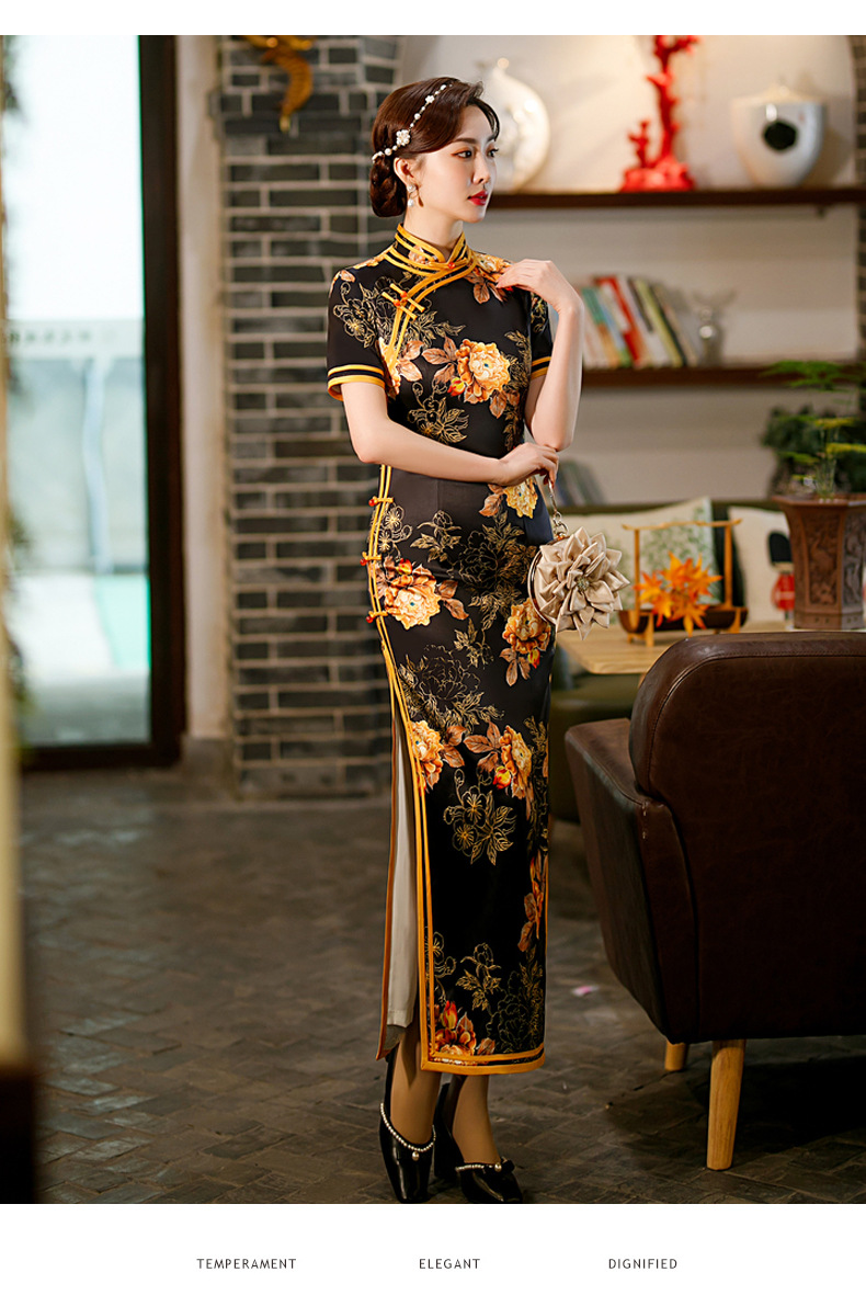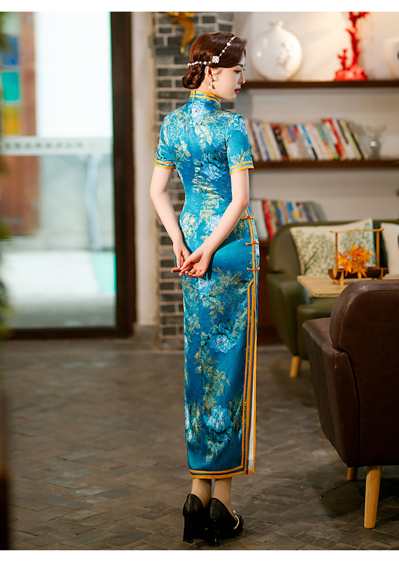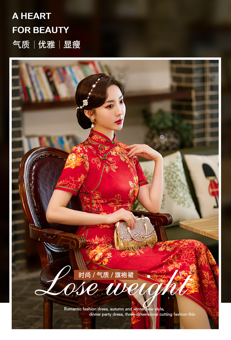老上海复古国风丝绒旗袍,大摆裙秋冬新款改良新中式中老年旗袍GX-22218