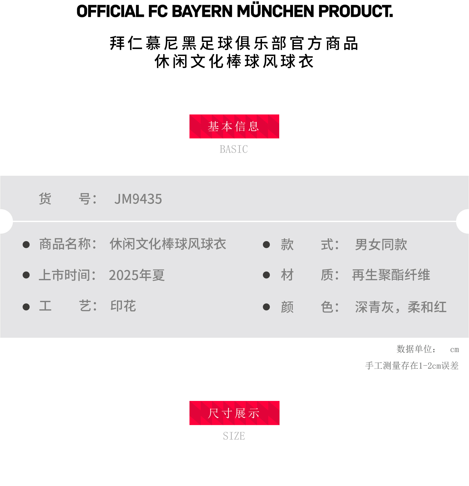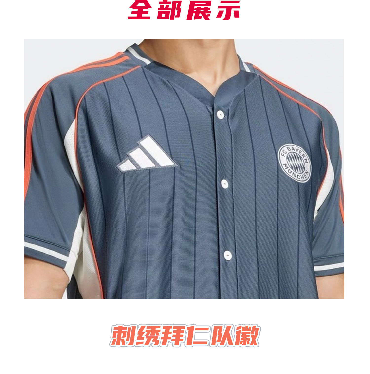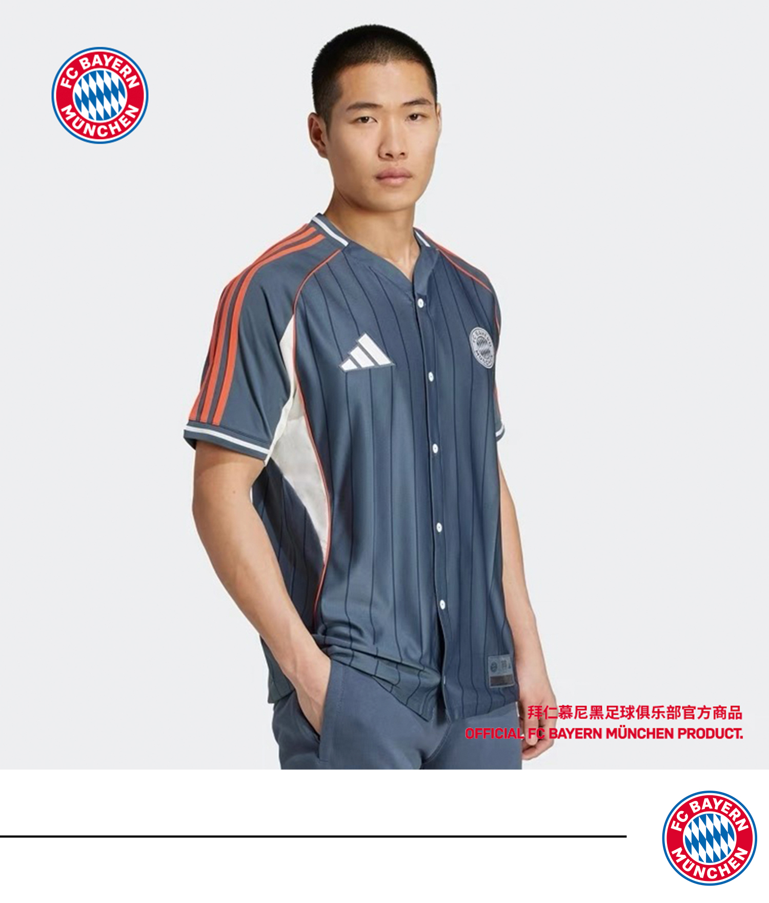 【官网同款】拜仁慕尼黑足球俱乐部丨深青灰拜仁文化棒球风球衣背后字母短袖