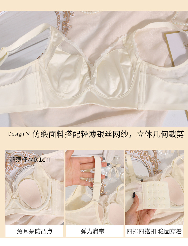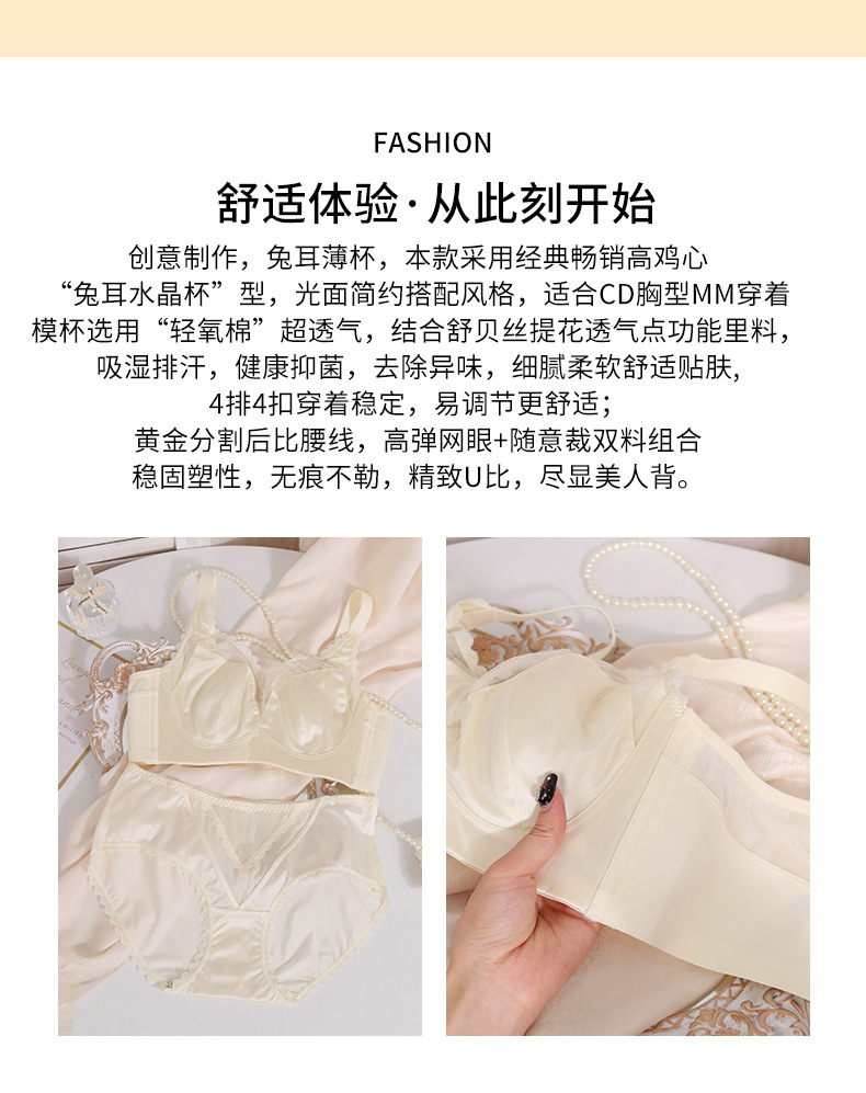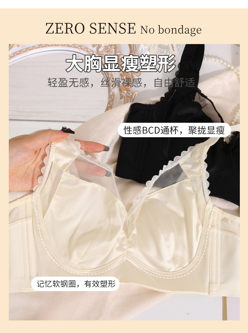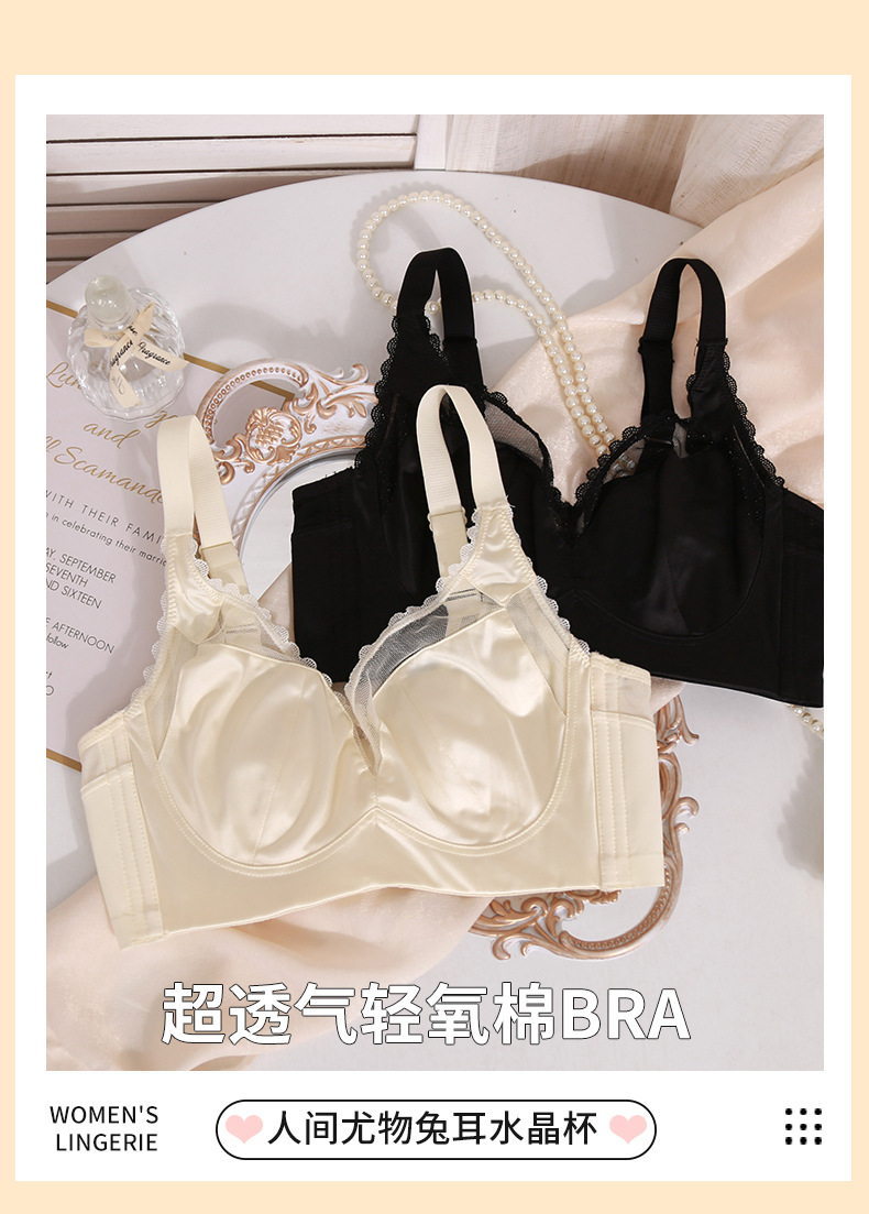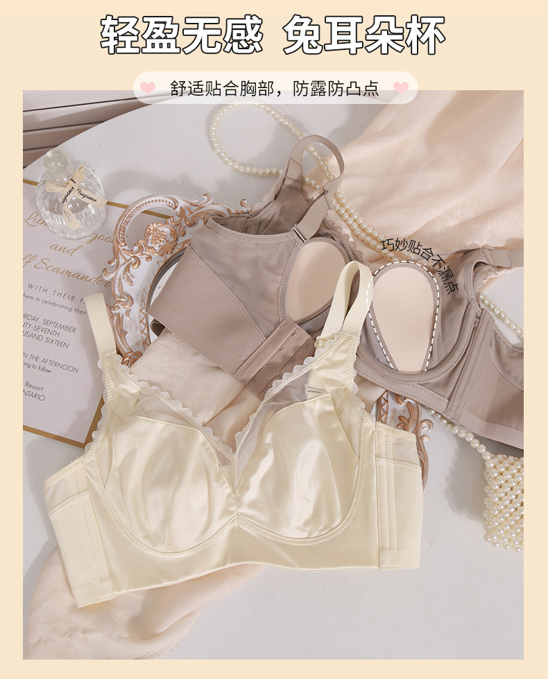 轻奢内衣女大胸显小超薄款收副乳防下垂兔耳朵防凸点大码文胸罩