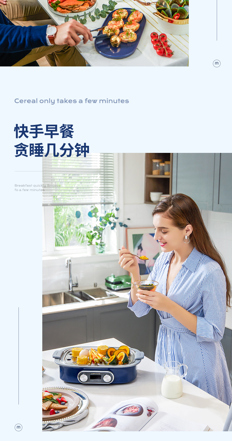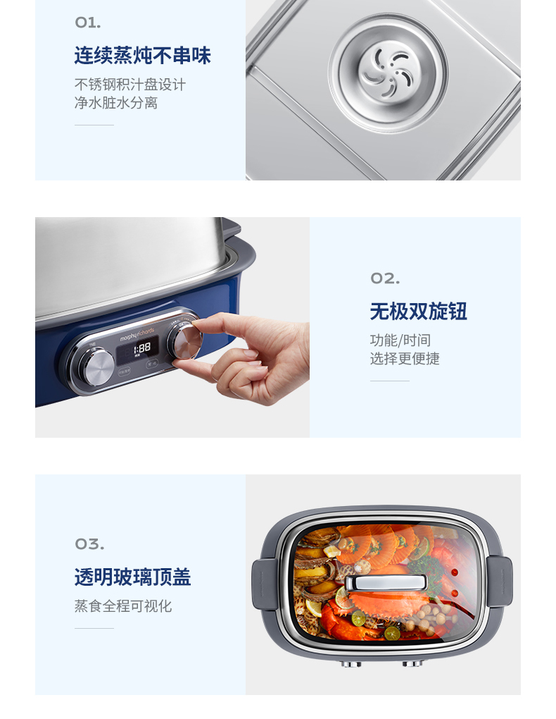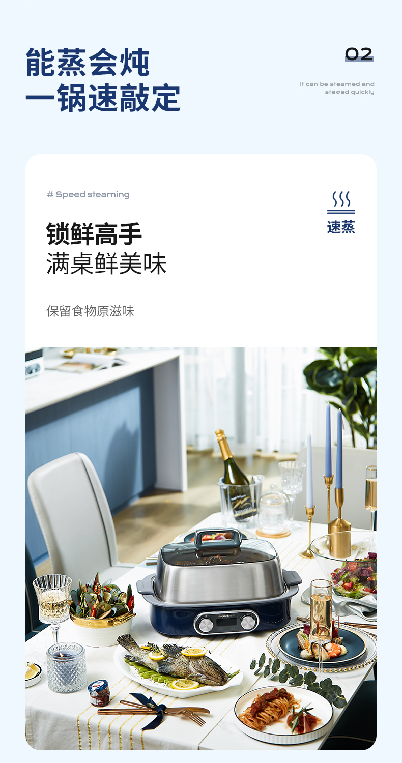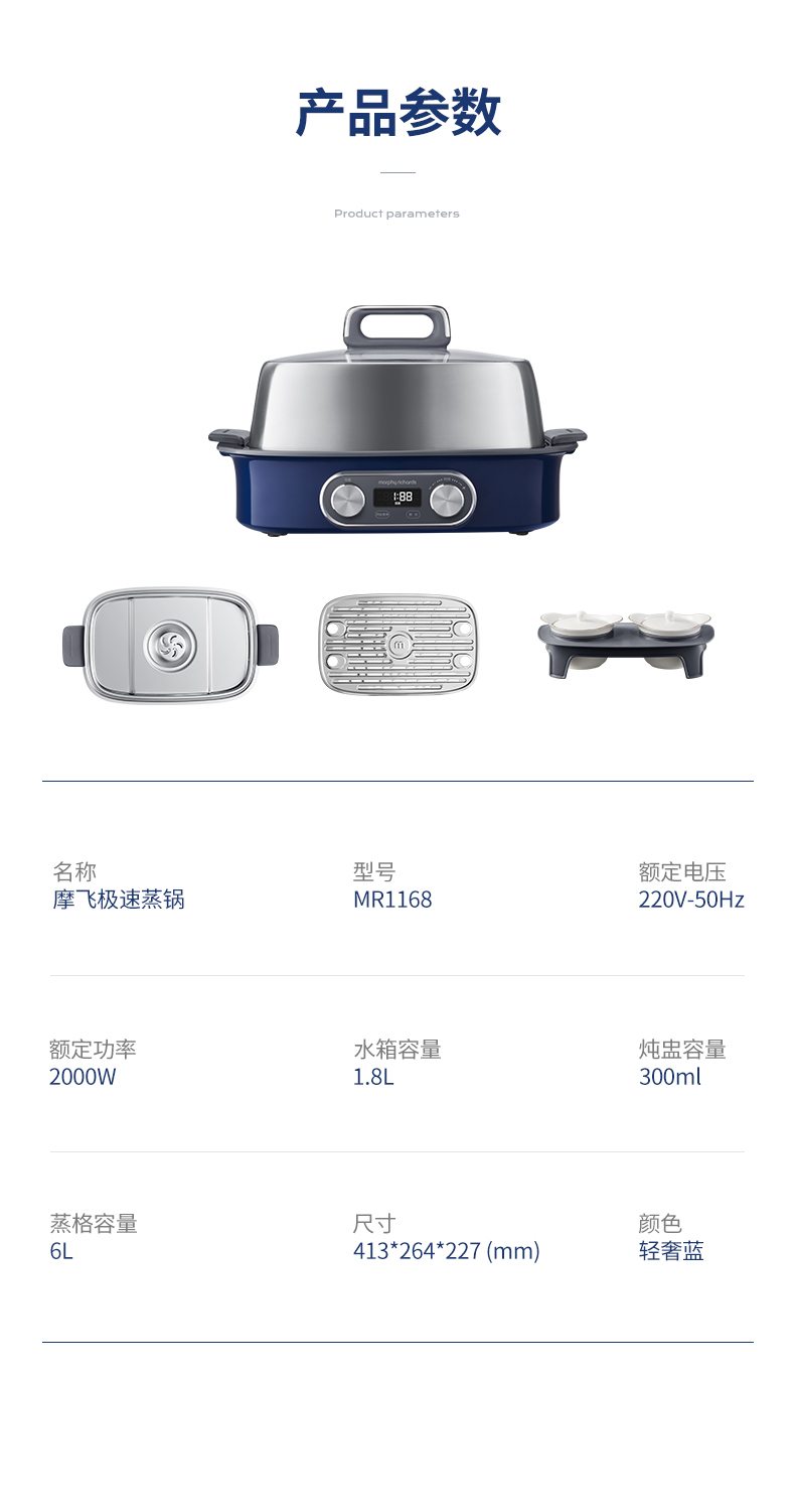 【授权商品】摩飞 电蒸锅蒸汽锅多功能锅家用小型隔水蒸炖锅全自动预约蒸煮锅 MR1168 极速蒸锅 轻奢蓝