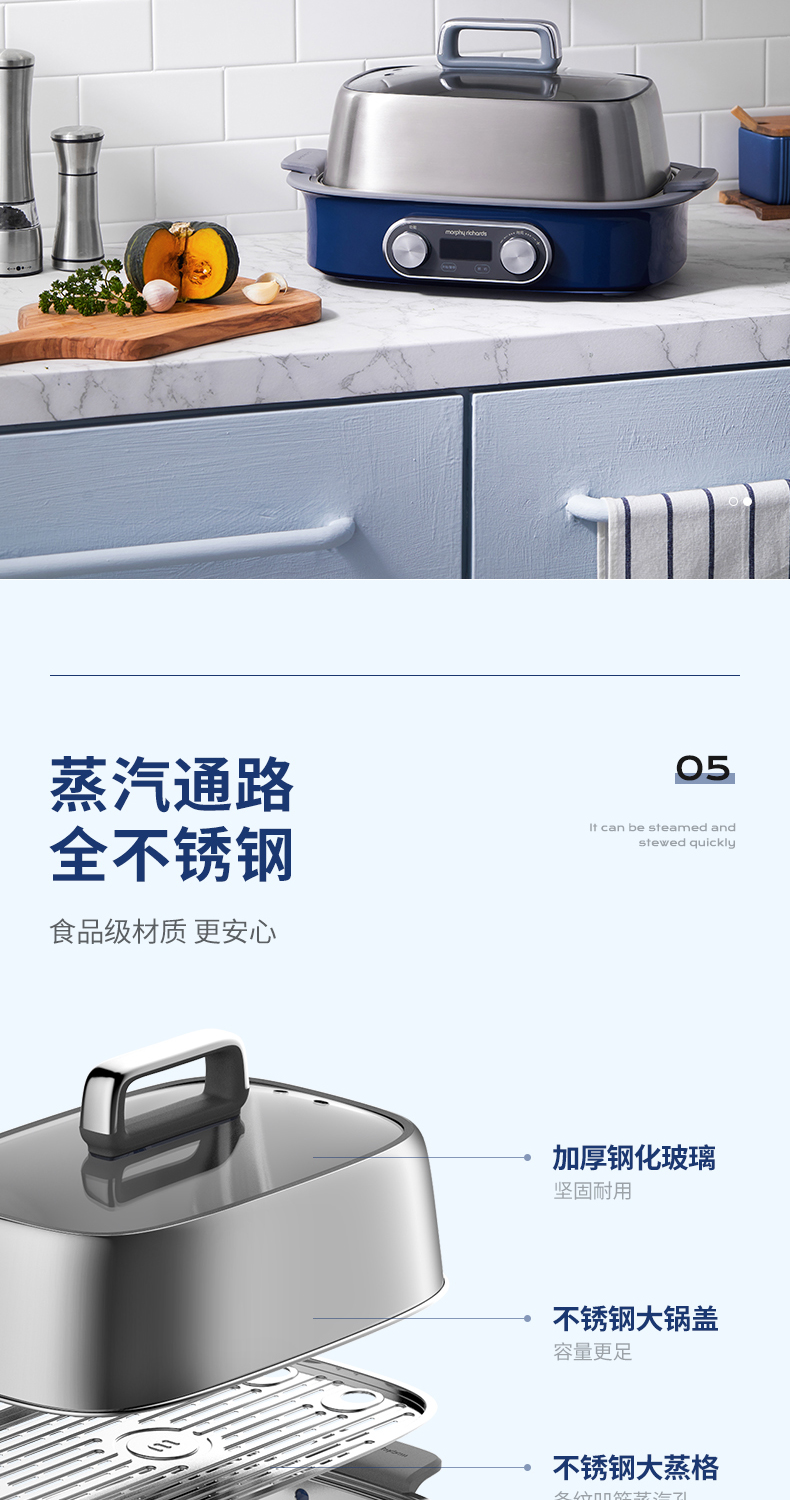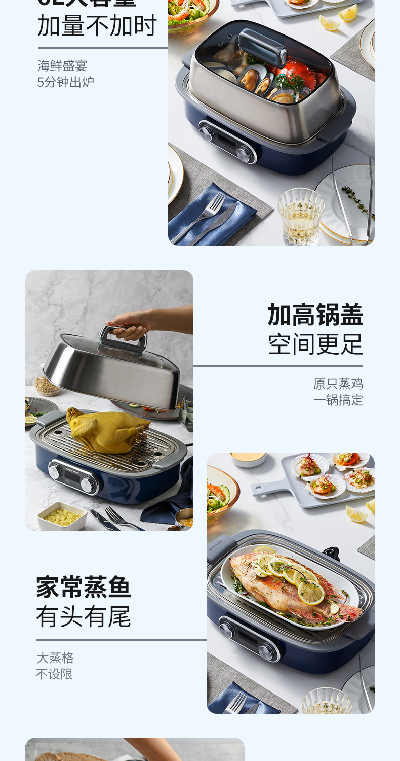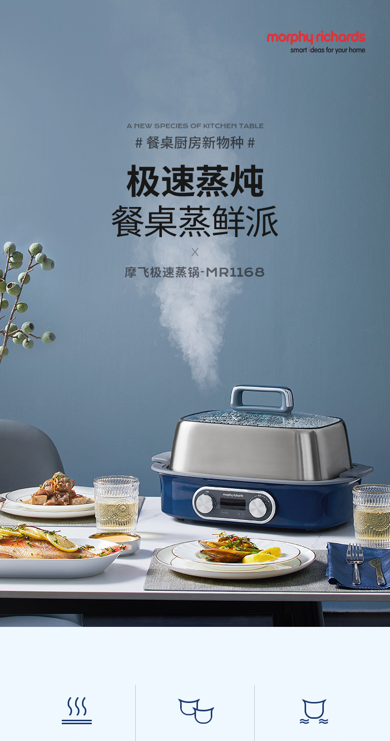 【授权商品】摩飞 电蒸锅蒸汽锅多功能锅家用小型隔水蒸炖锅全自动预约蒸煮锅 MR1168 极速蒸锅 轻奢蓝