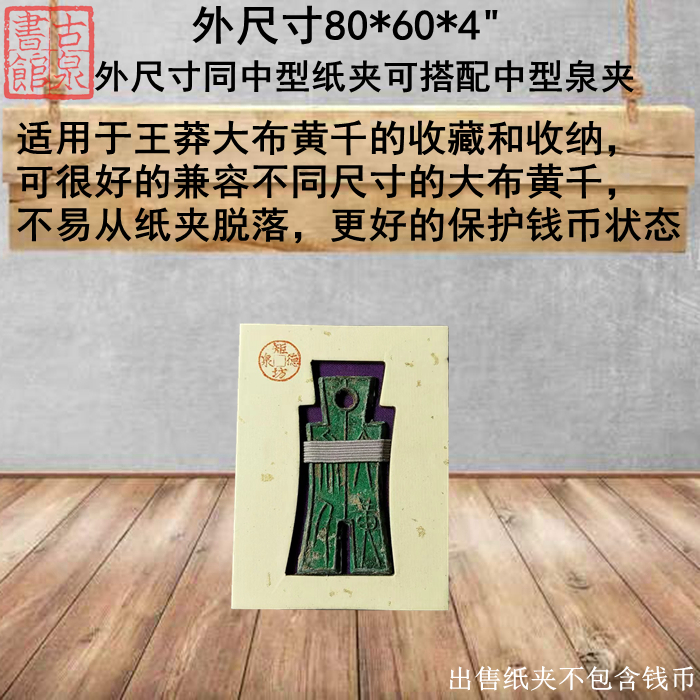 适用于王莽大布黄千的收藏和收纳,可很好的兼容不同尺寸的大布黄千,不易从纸夹脱落,更好的保护钱币状态