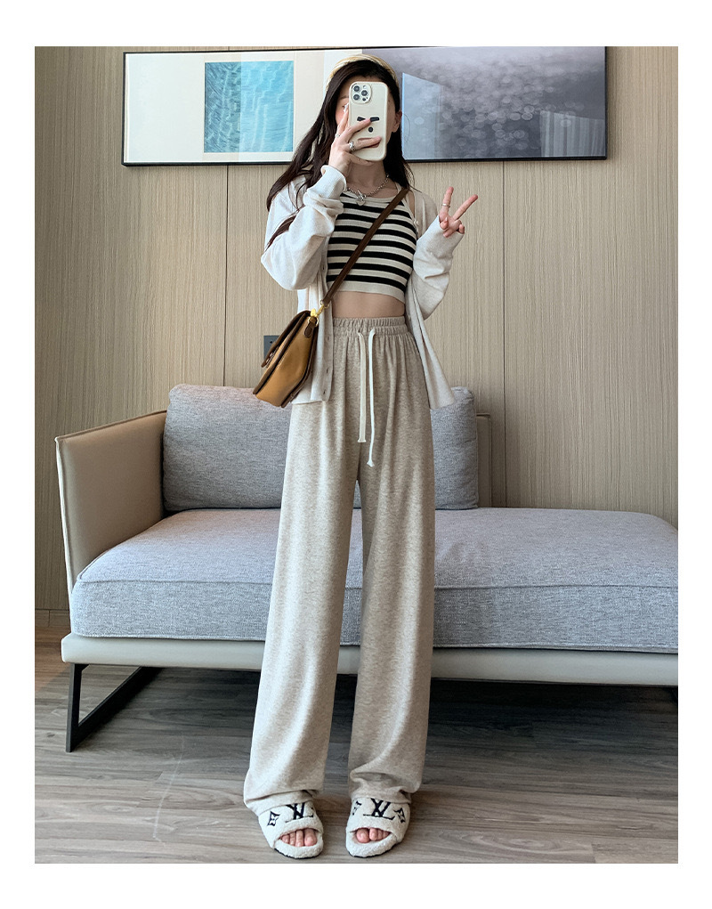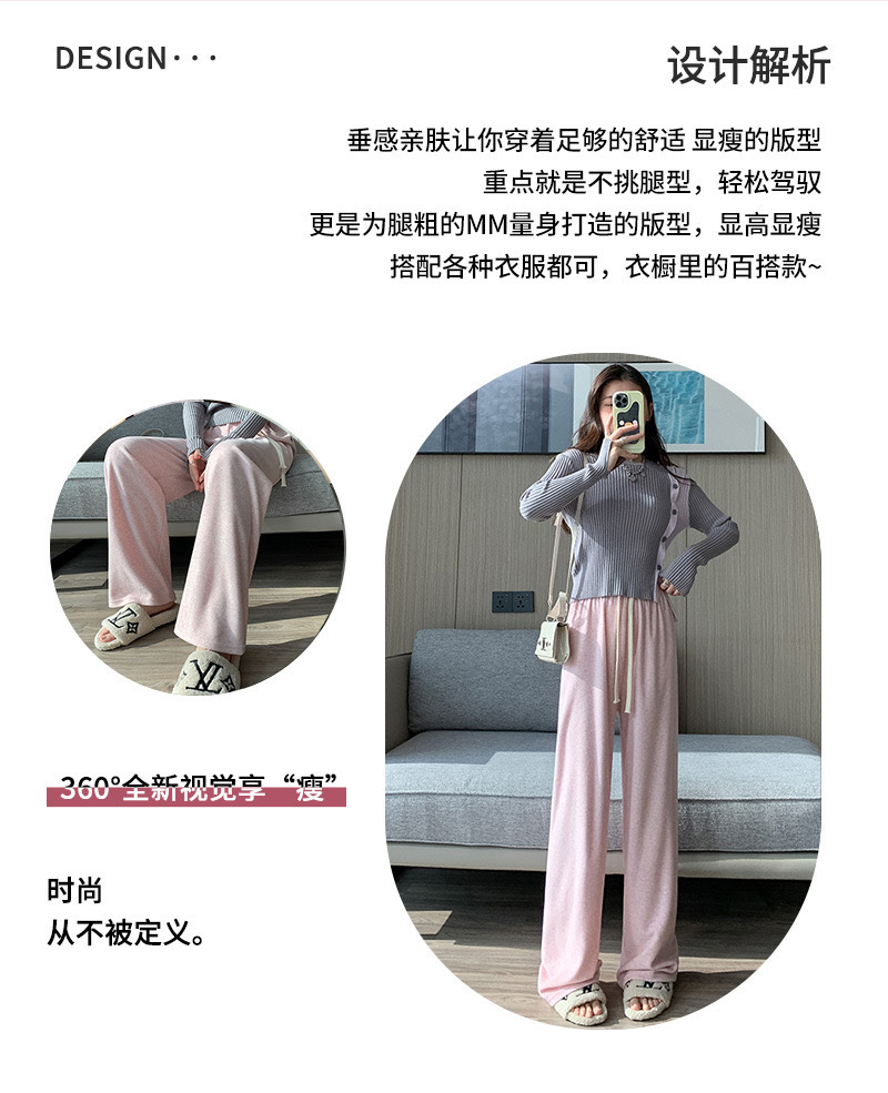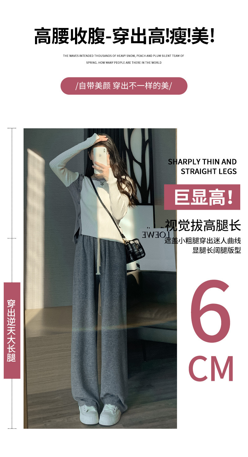 【秋冬新款!穿出高!瘦!美!】仿羊绒高腰阔腿裤,加绒垂感糯米绒面料,舒适保暖。直筒设计,显瘦拖地。秋冬新款,休闲百搭。li