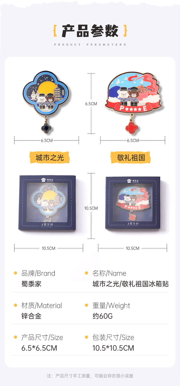 【实付满199送钥匙扣】【城市之光&敬礼祖国冰箱贴】蜀黍元素亚克力冰箱贴创意日用磁吸贴