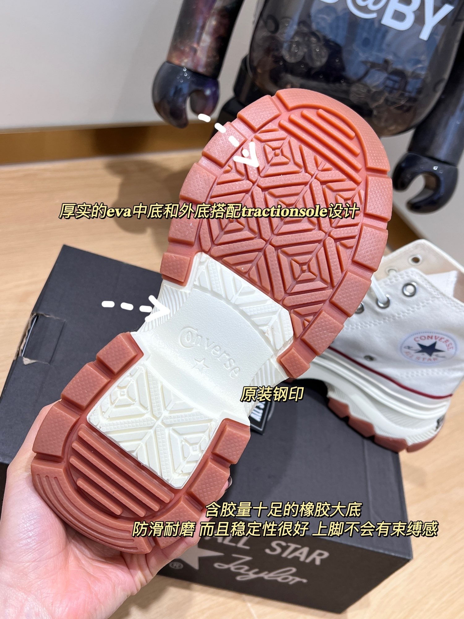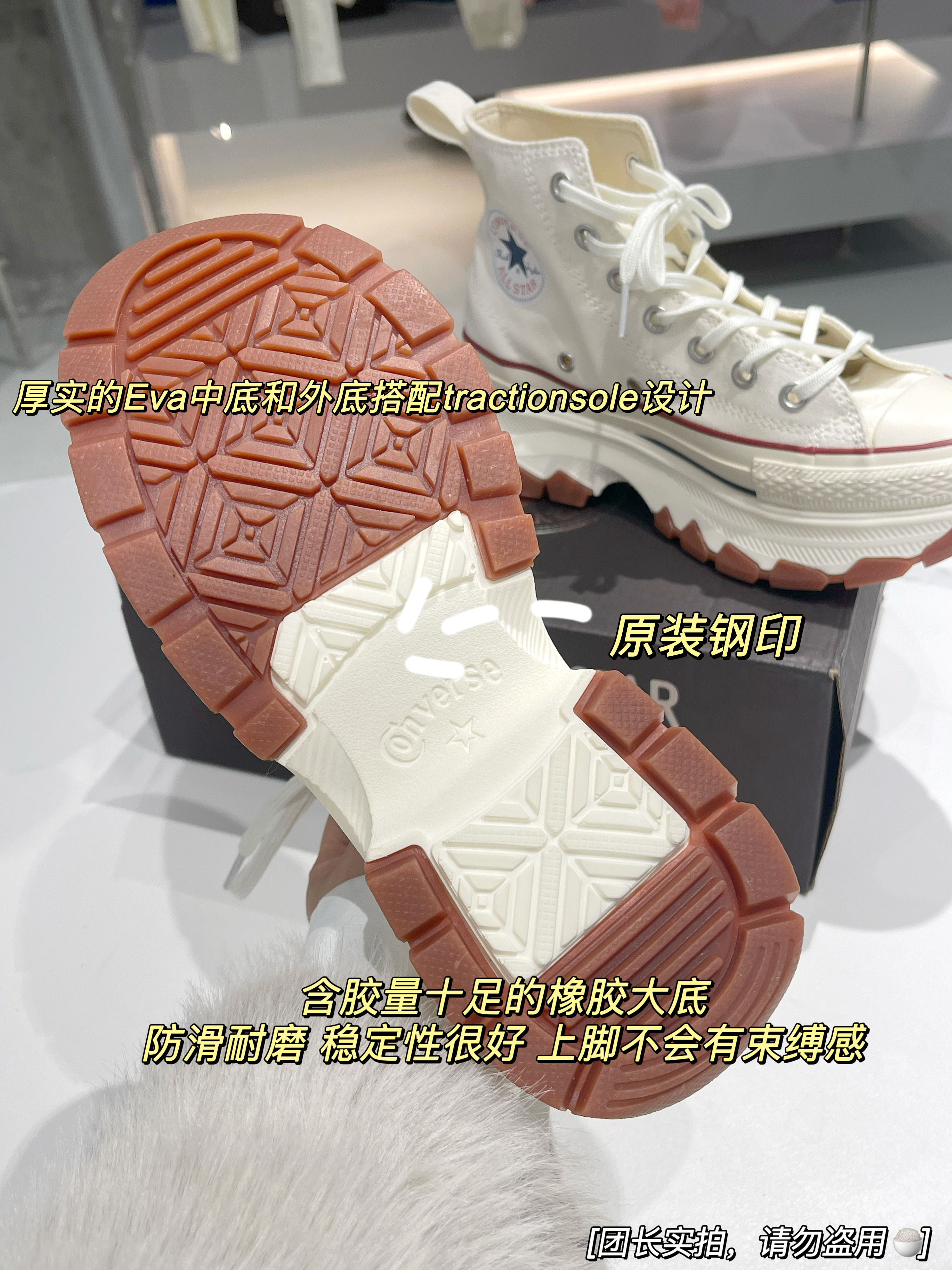 厚实的𝐞𝐯𝐚中底和外底搭配𝐓𝐫𝐚𝐜𝐭𝐢𝐨𝐧𝐒𝐨𝐥𝐞设计,没有半点笨重感,反而撞色搭配给人一种很秀气的感觉