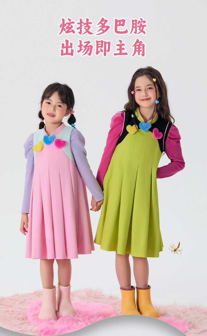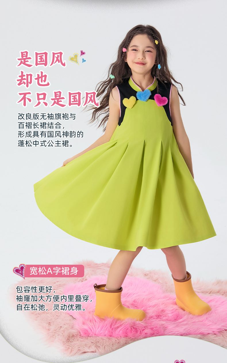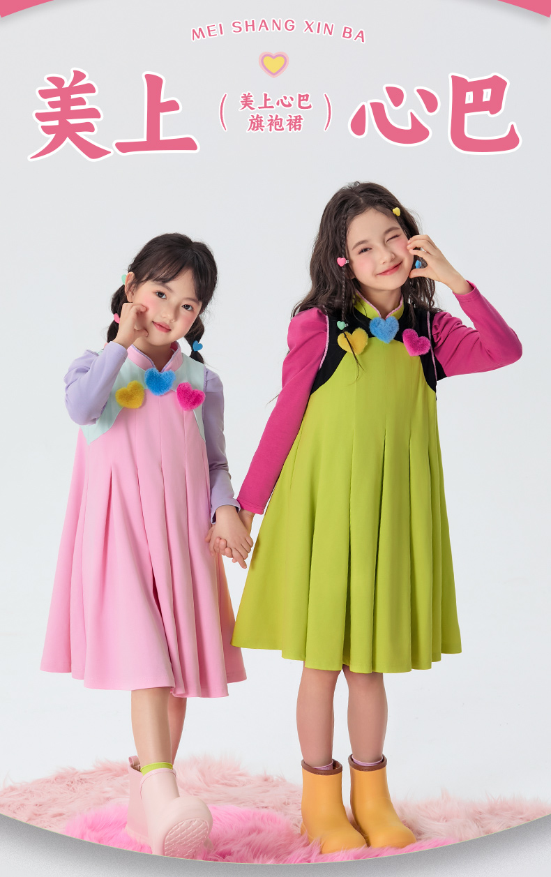 年衣童装女童连衣裙2025年春季新款女宝裙子甜美儿童美上心巴旗袍裙