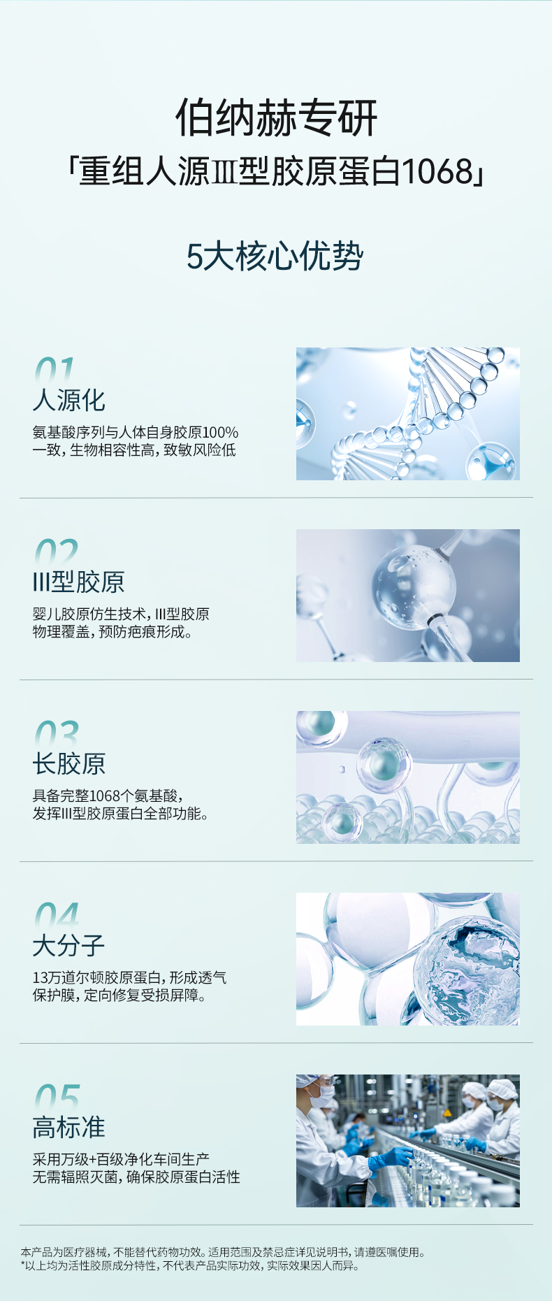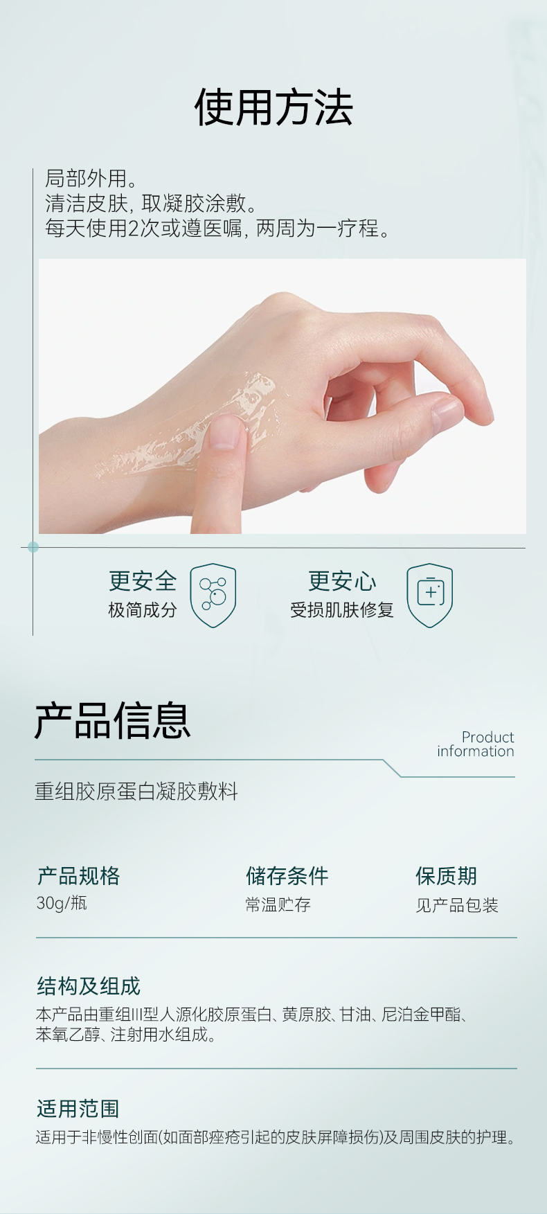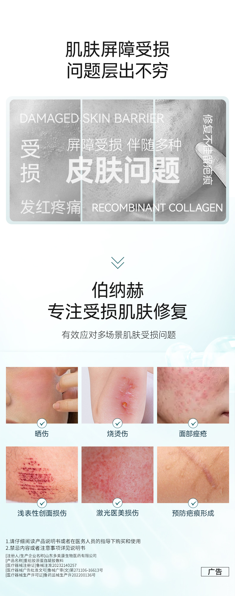 【伯纳赫重组胶原蛋白凝胶敷料30g】肤感清爽,成分安全无刺激,有修护肌肤屏障的功能!非慢性创面如面部痤疮引起的皮肤屏障损伤及周围皮肤的护理,中通快递