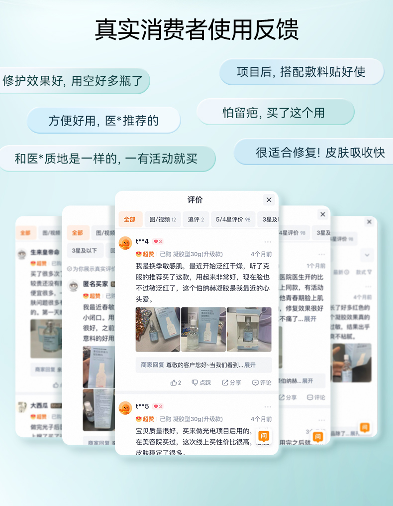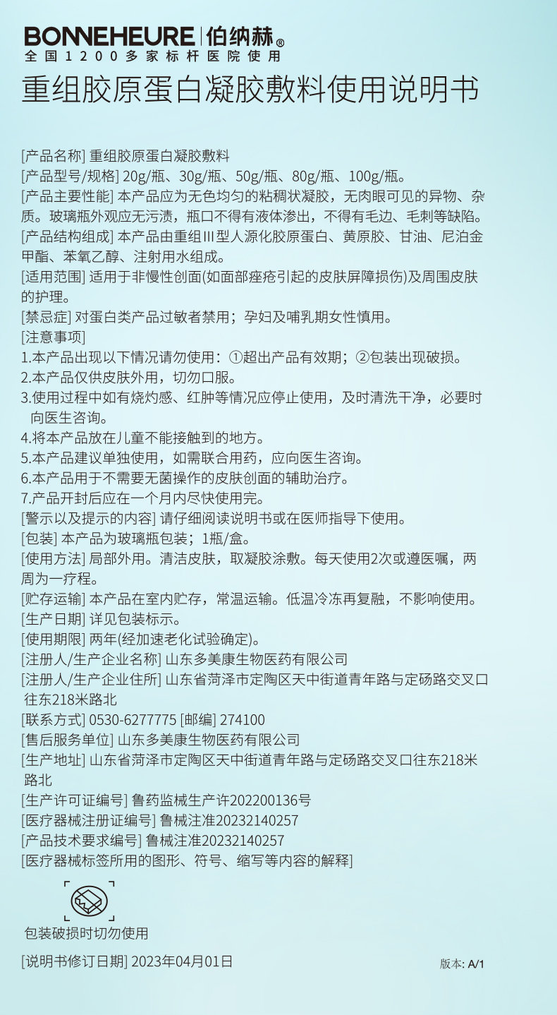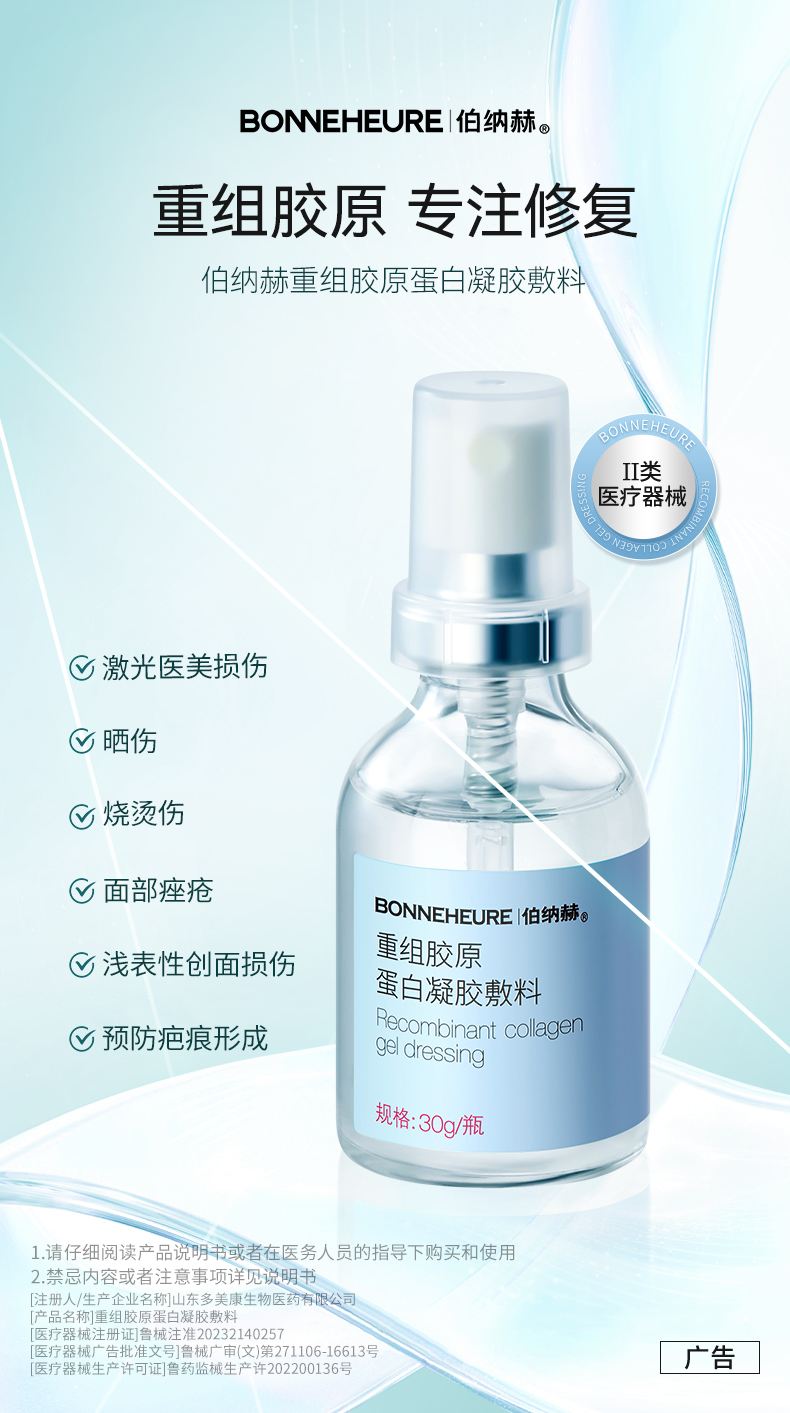 【伯纳赫重组胶原蛋白凝胶敷料30g】肤感清爽,成分安全无刺激,有修护肌肤屏障的功能!非慢性创面如面部痤疮引起的皮肤屏障损伤及周围皮肤的护理,中通快递