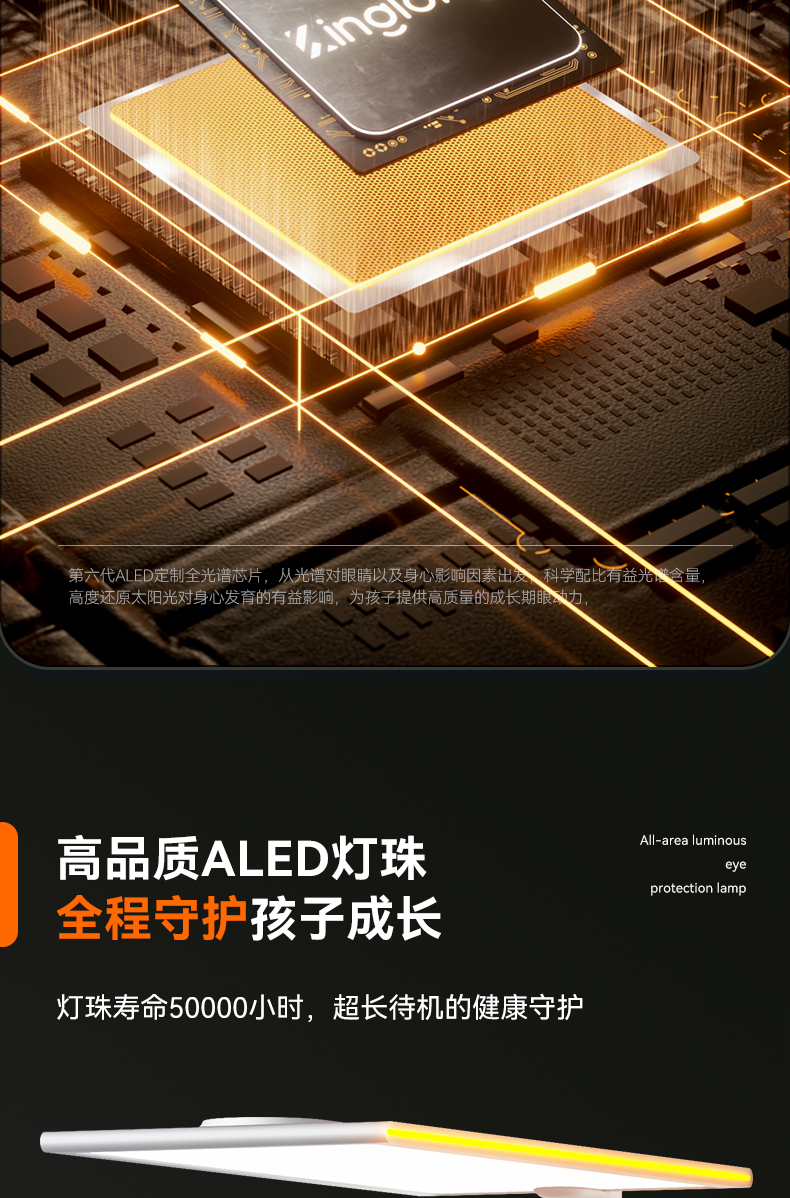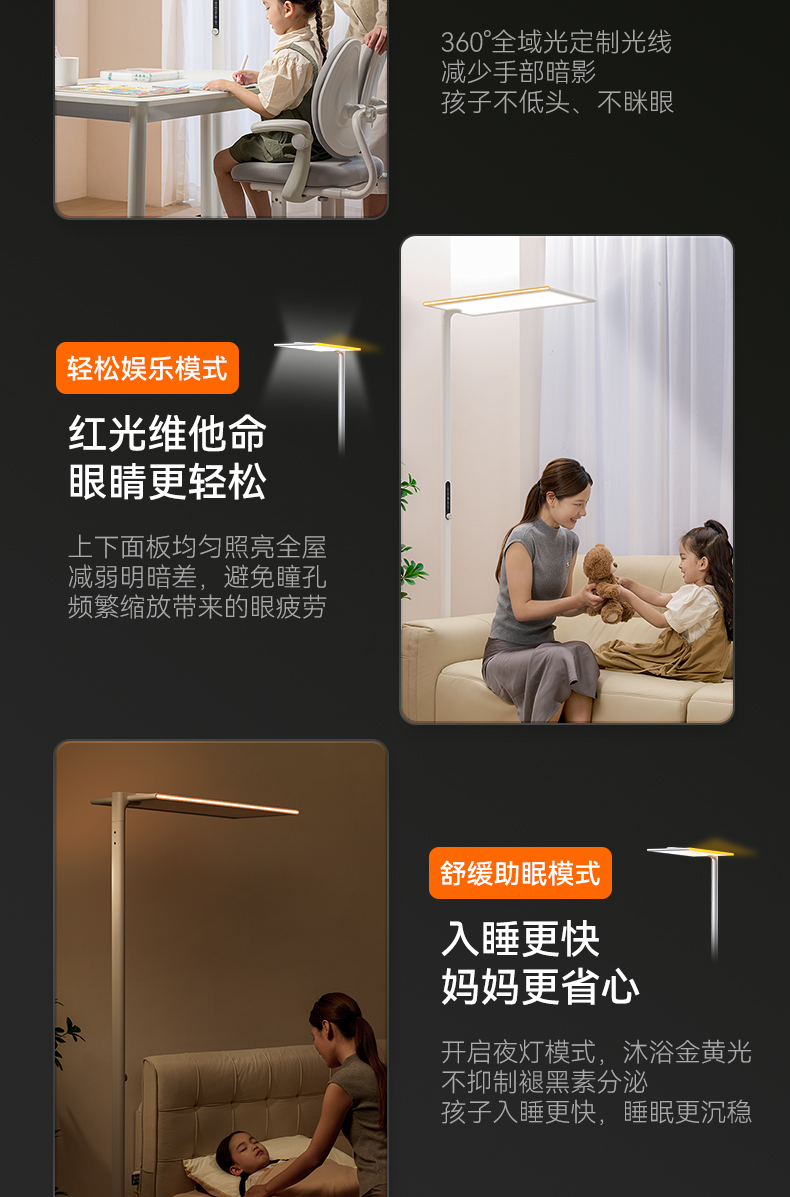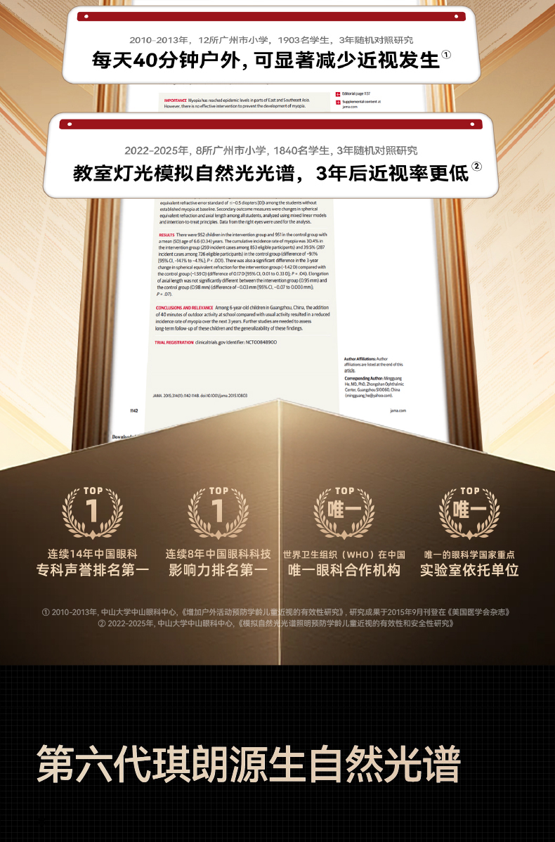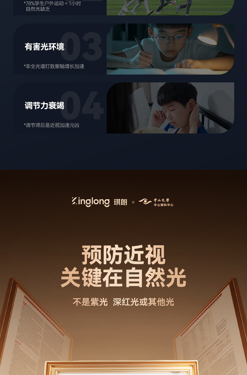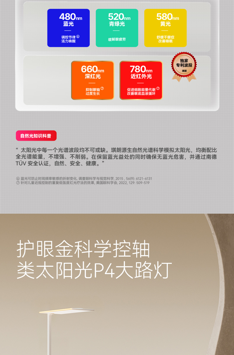 如果选择全光谱的大路灯,还有深红光,可以给孩子预防近视,提供眼部发育的营养,抑制眼轴生长