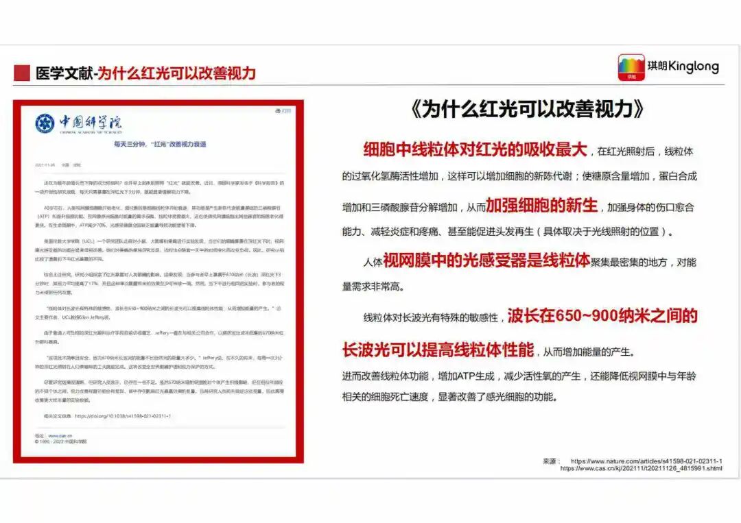 这个是有专业研究证明,也被市场验证的,在波长650-900纳米之间的红光,可以为眼部提供营养,可以抑制孩子的眼轴增长。