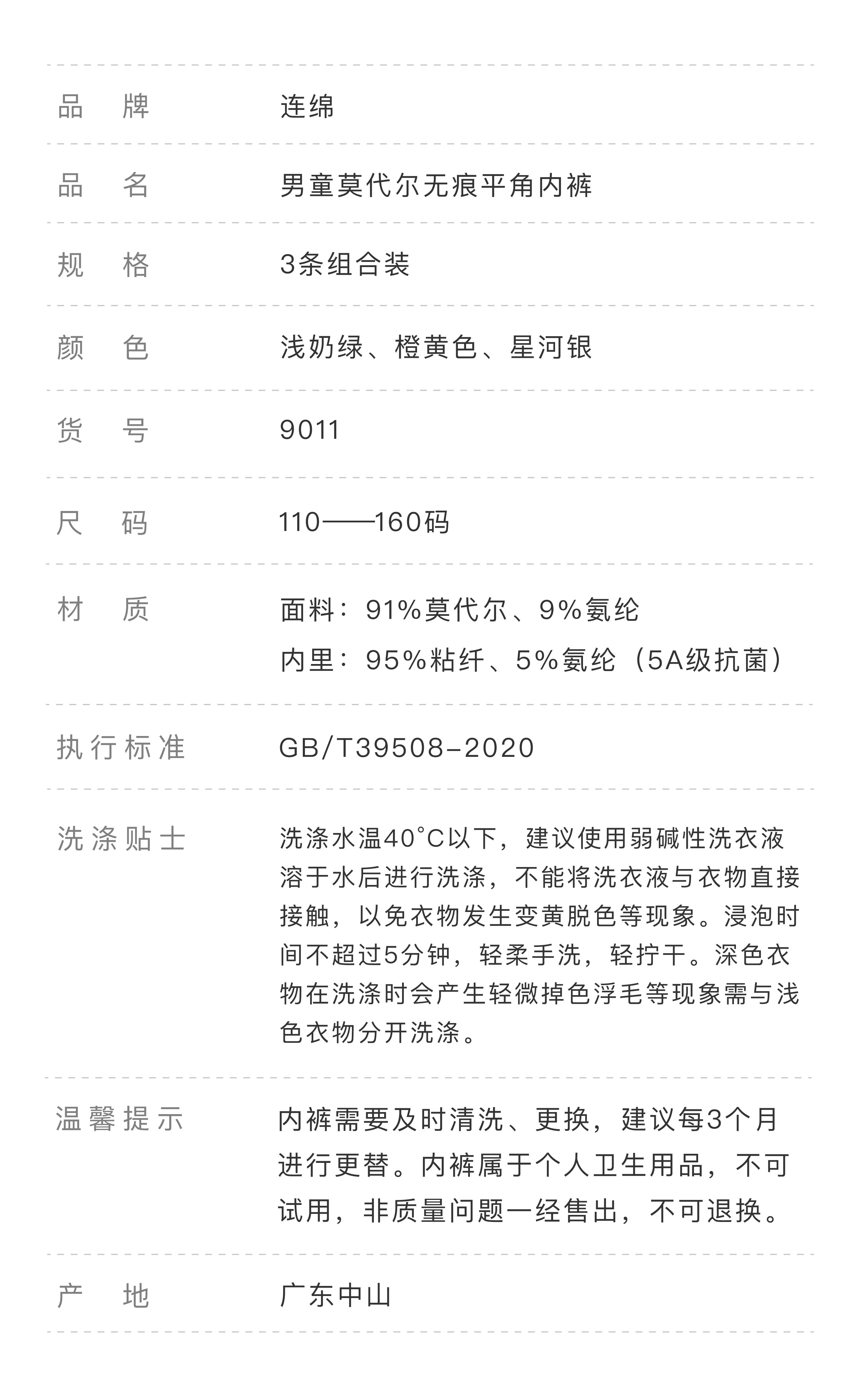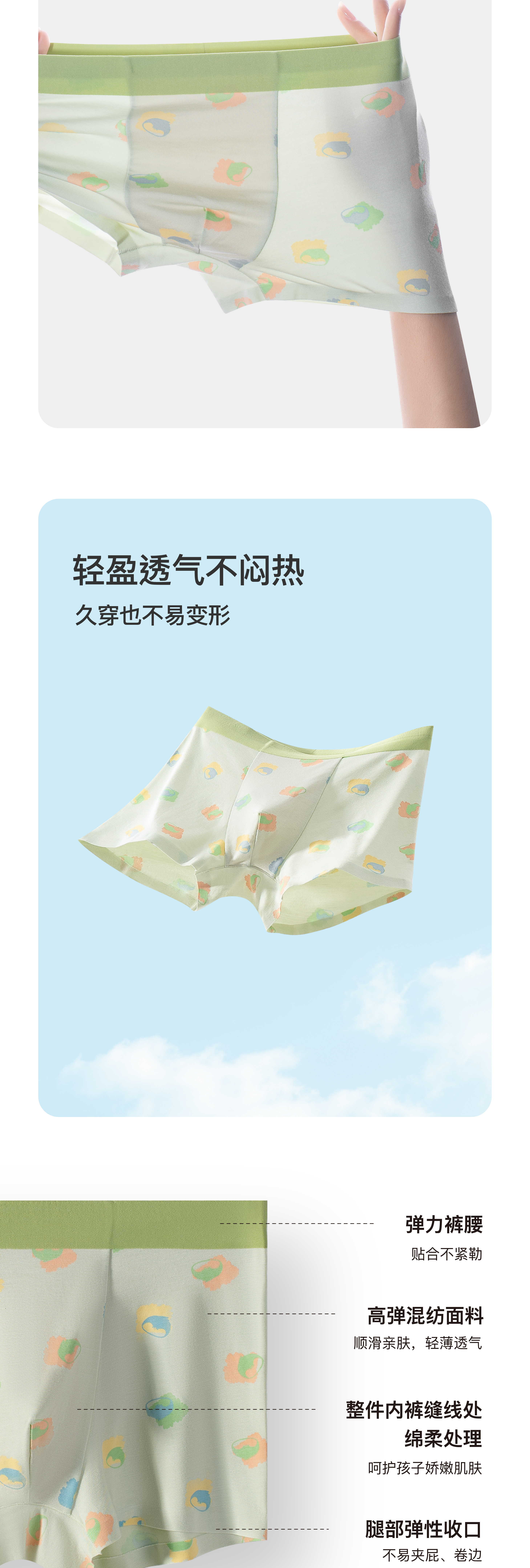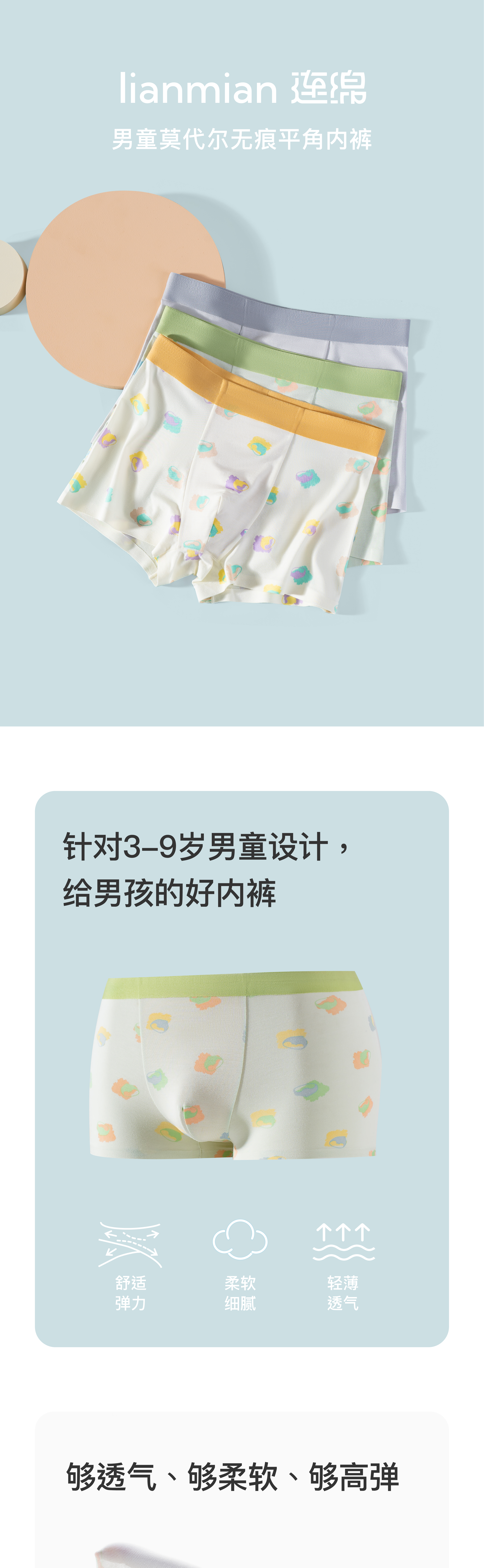 连绵·男童莫代尔无痕平角内裤 3条装(3-9岁)